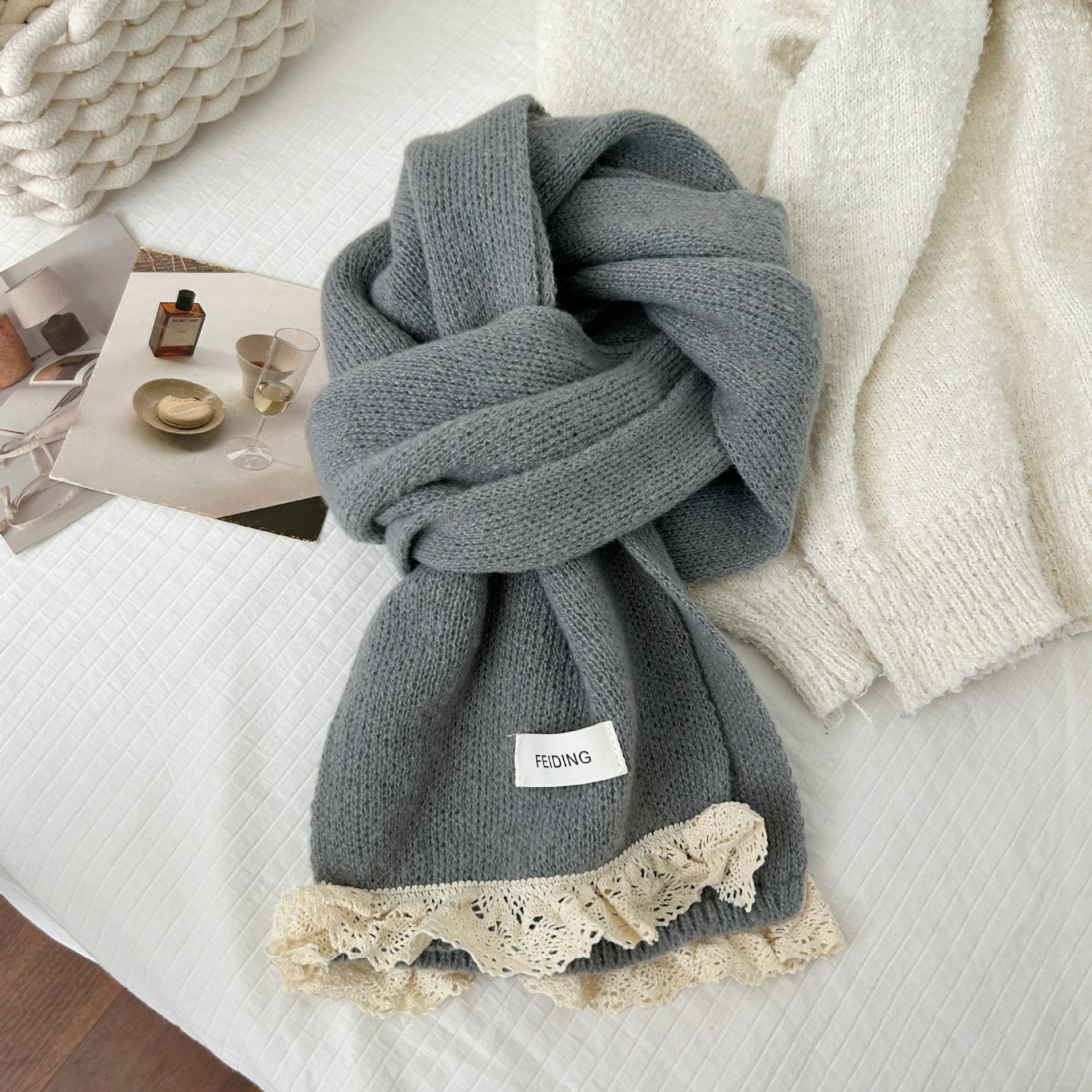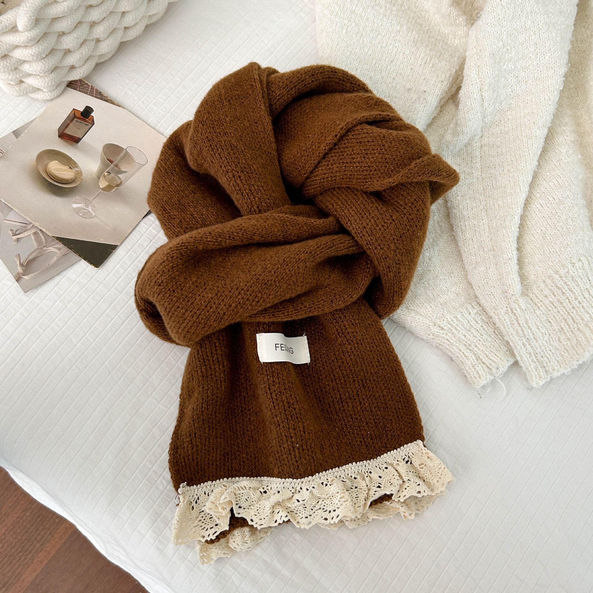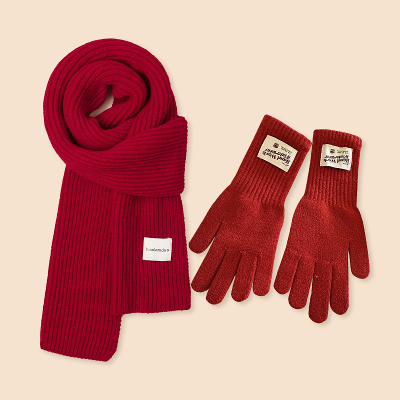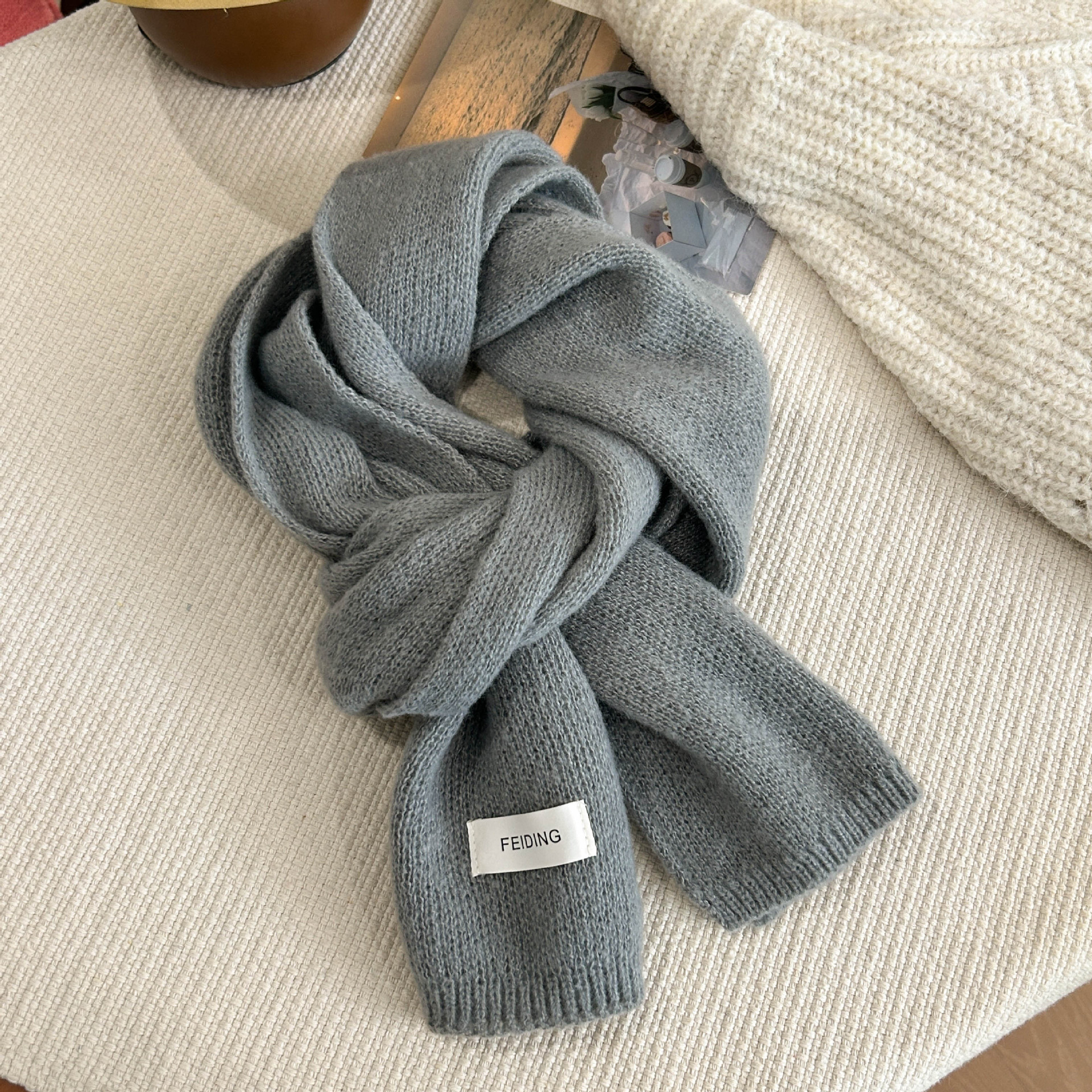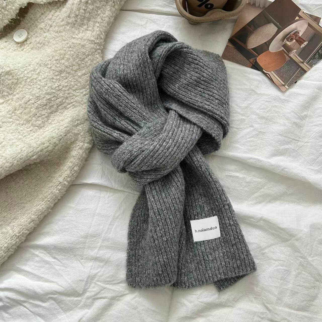 여성용 앙코라 레드 울 스카프 2025 새로운 겨울 다목적 한국 스타일 스카프 솔리드 컬러 따뜻한 니트 대학 스타일스토어 가기