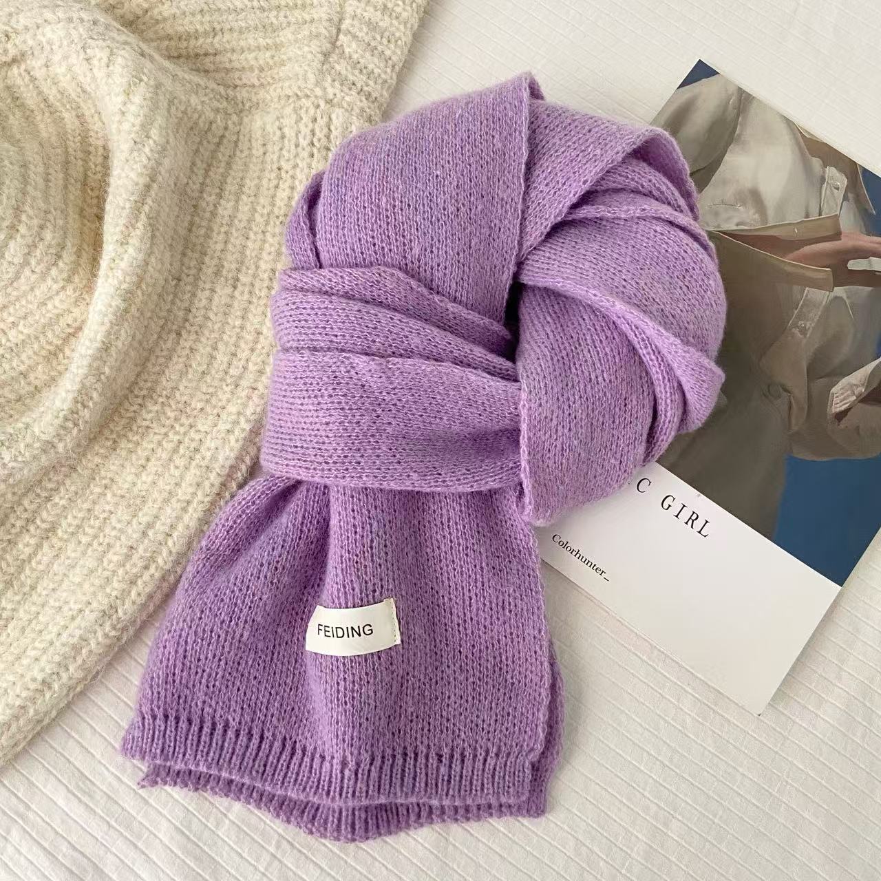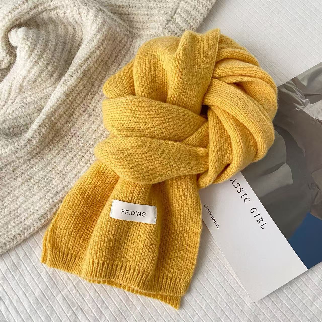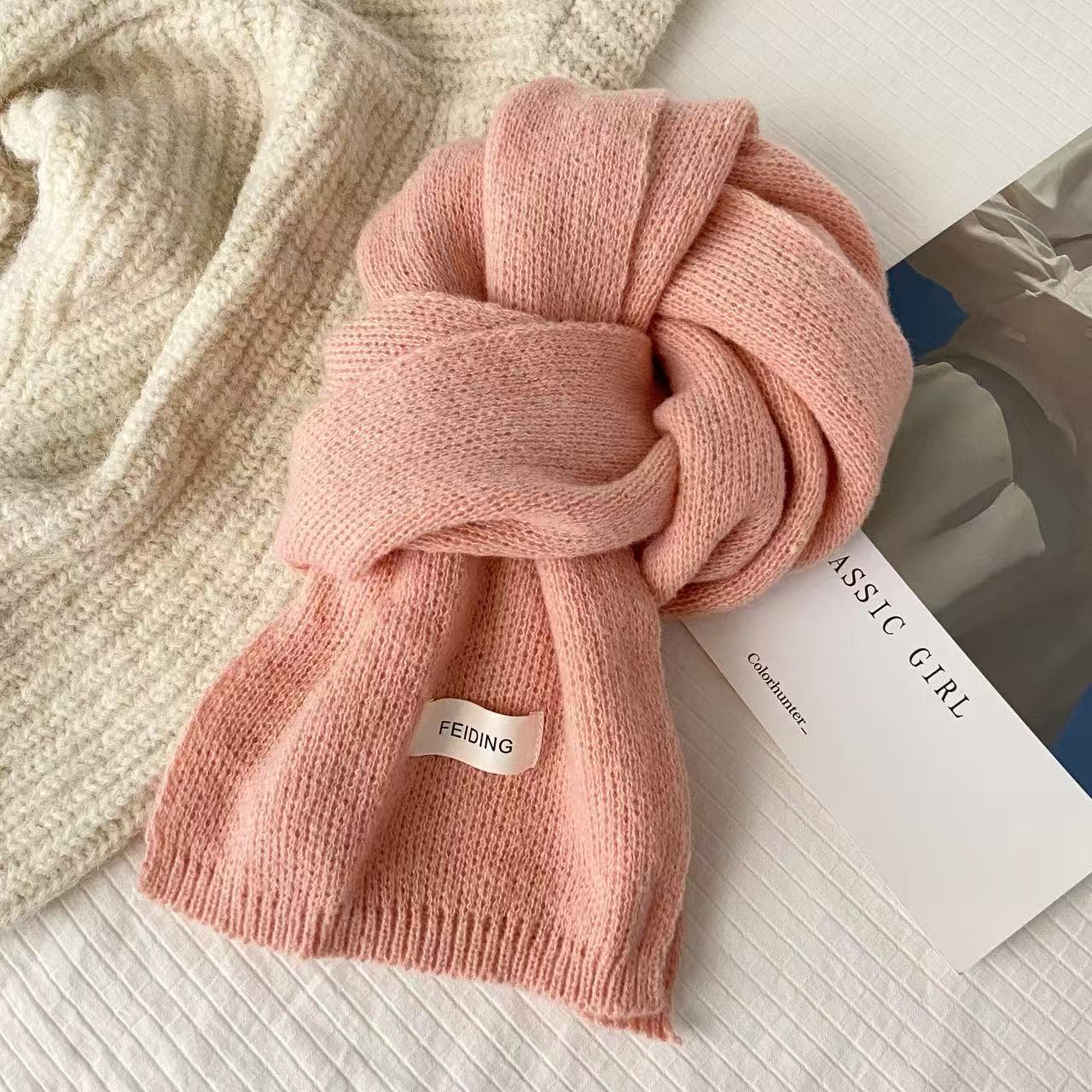 여성용 앙코라 레드 울 스카프 2025 새로운 겨울 다목적 한국 스타일 스카프 솔리드 컬러 따뜻한 니트 대학 스타일