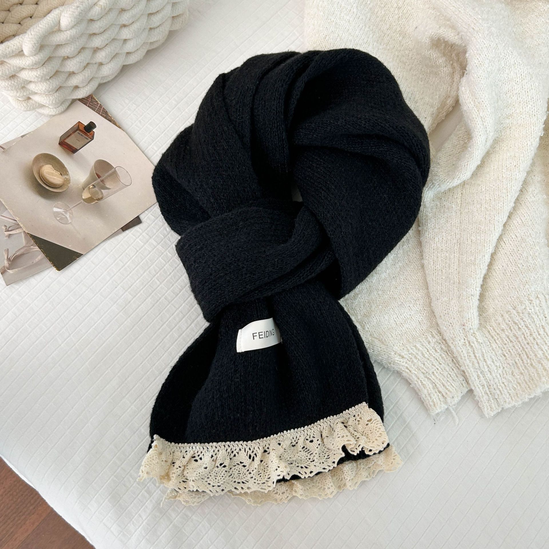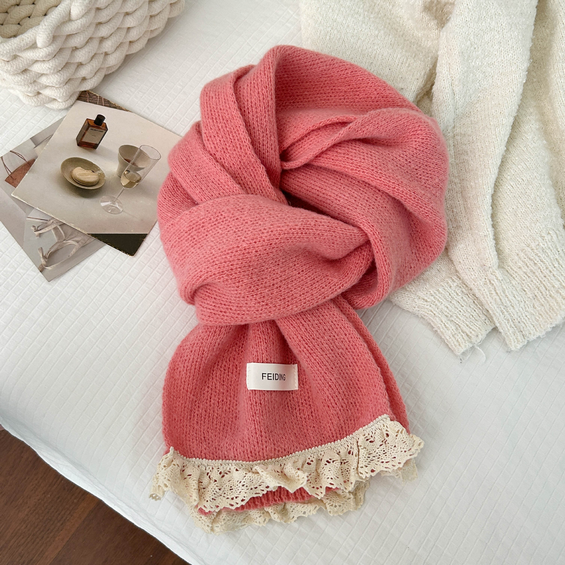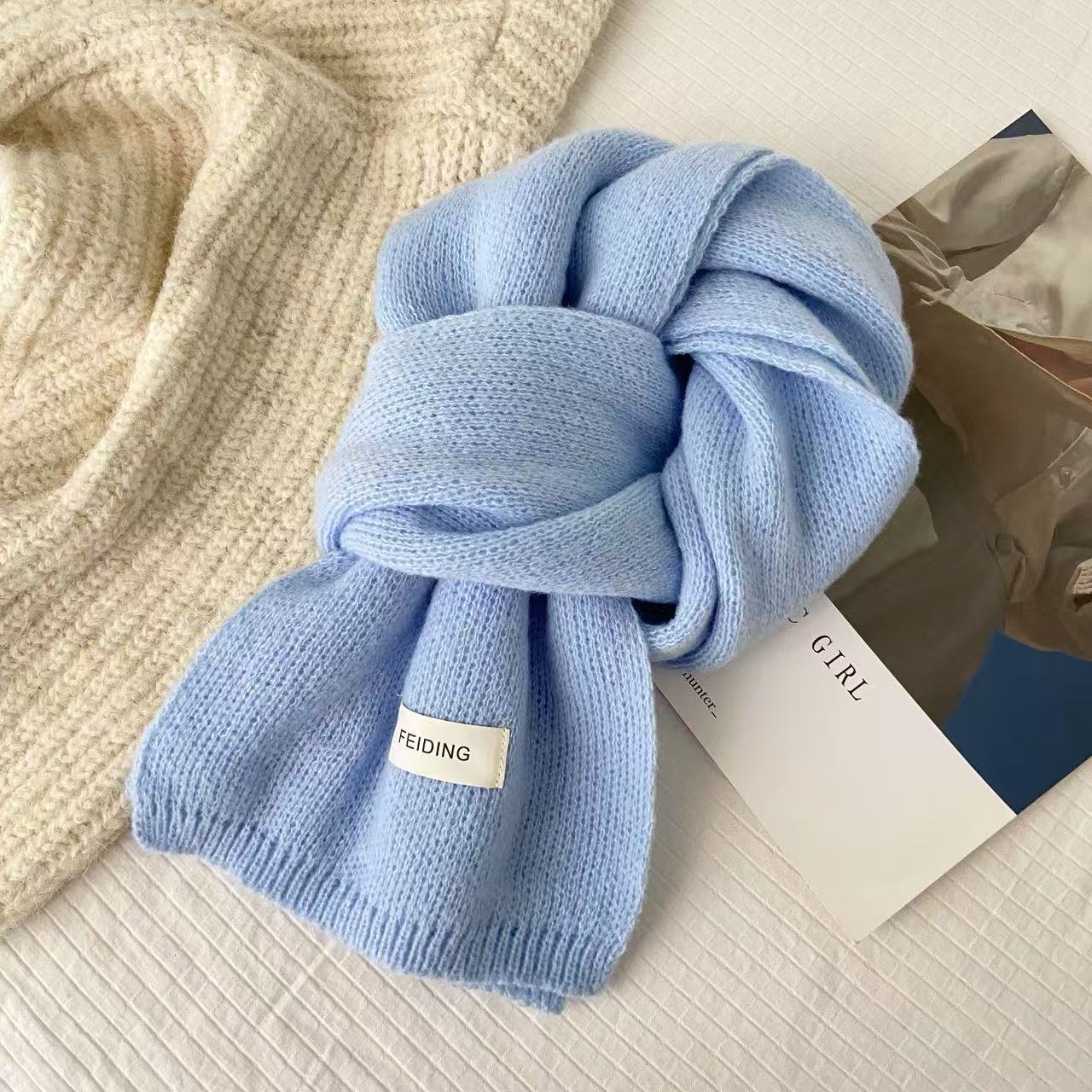 여성용 앙코라 레드 울 스카프 2025 새로운 겨울 다목적 한국 스타일 스카프 솔리드 컬러 따뜻한 니트 대학 스타일