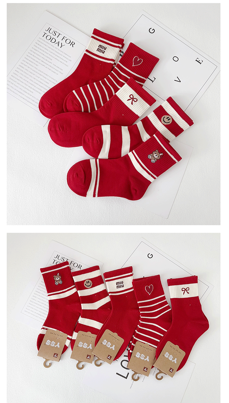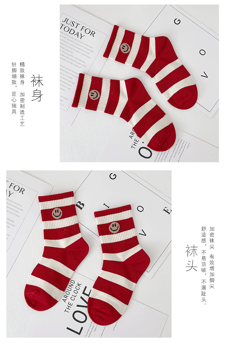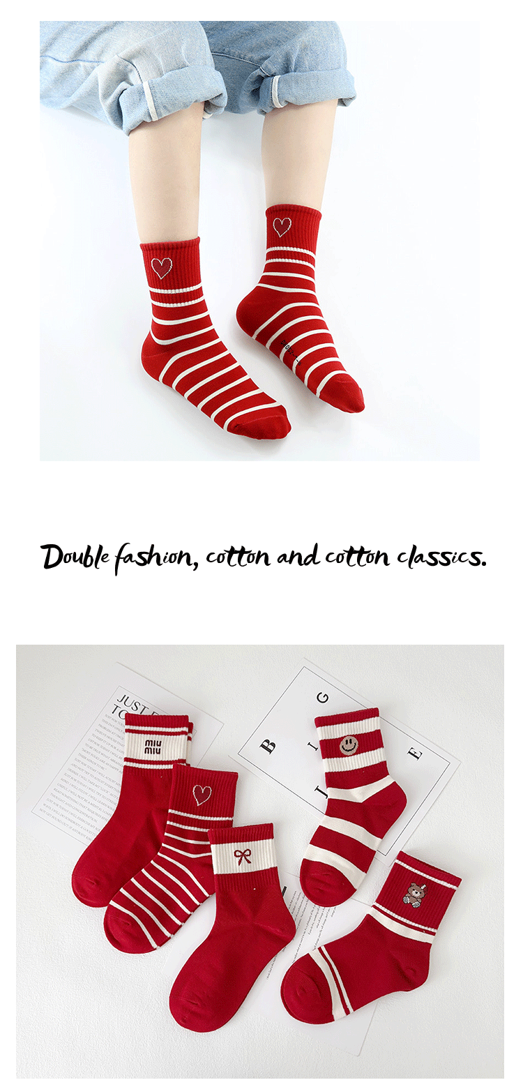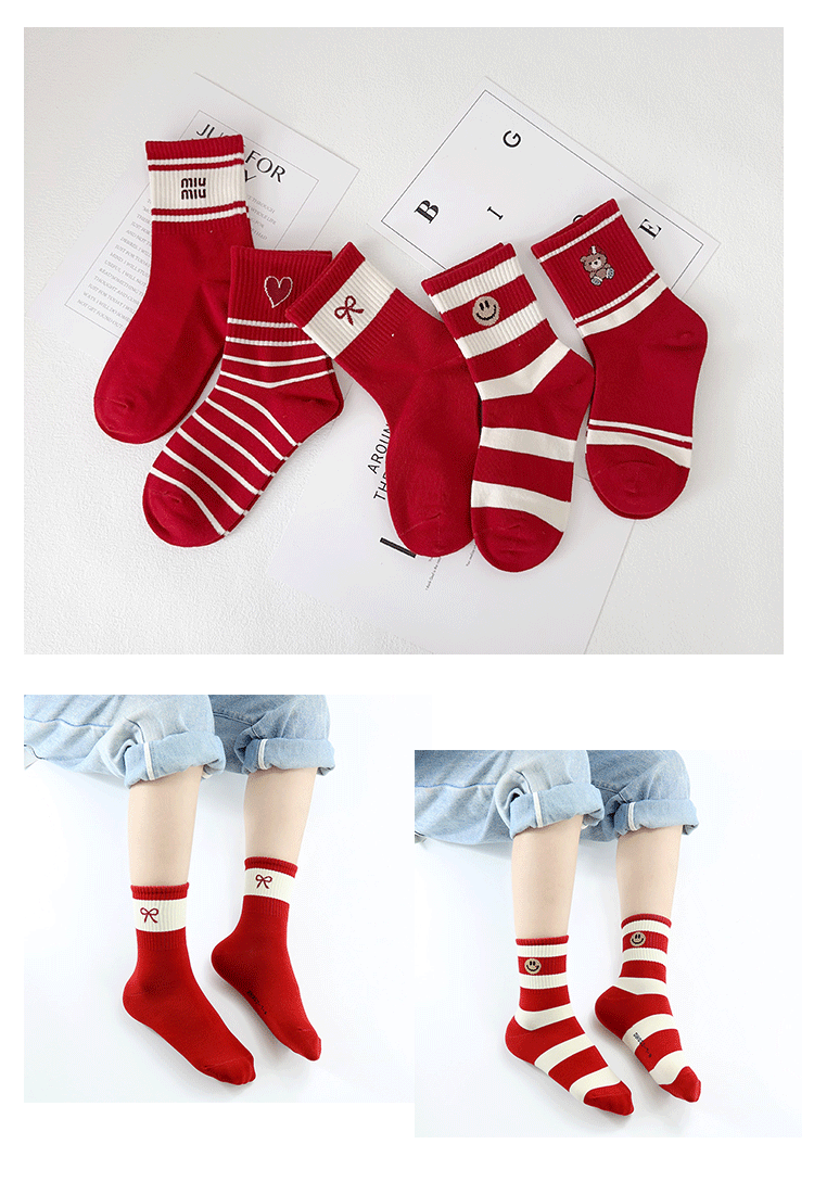 이쌍 어린이 양말 가을과 겨울 새 한국식 편지 중간 튜브 양말 빗 코튼 빅 레드 년 양말 뼈없는 면 양말