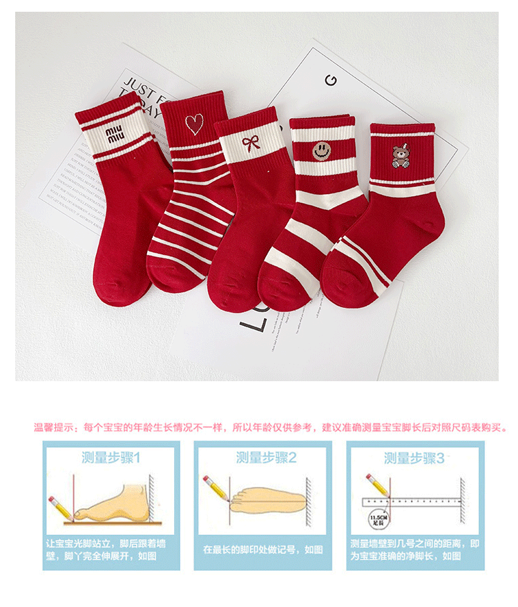 이쌍 어린이 양말 가을과 겨울 새 한국식 편지 중간 튜브 양말 빗 코튼 빅 레드 년 양말 뼈없는 면 양말스토어 가기