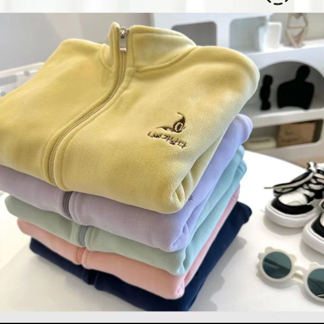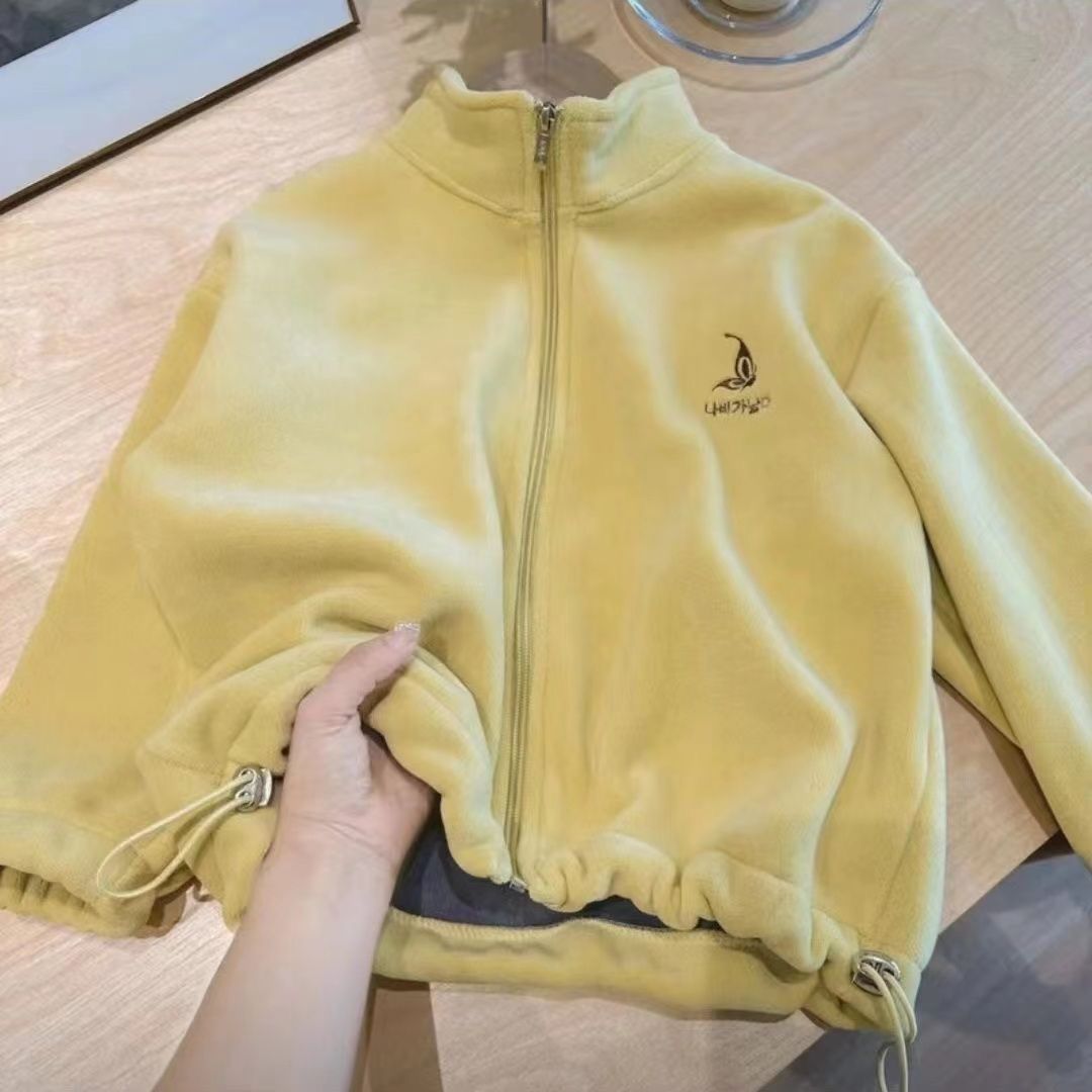 소녀 한국식 양면 양털 긴팔 지퍼 재킷 2024 새로운 귀여운 자수 칼라 두꺼운 카디건스토어 가기