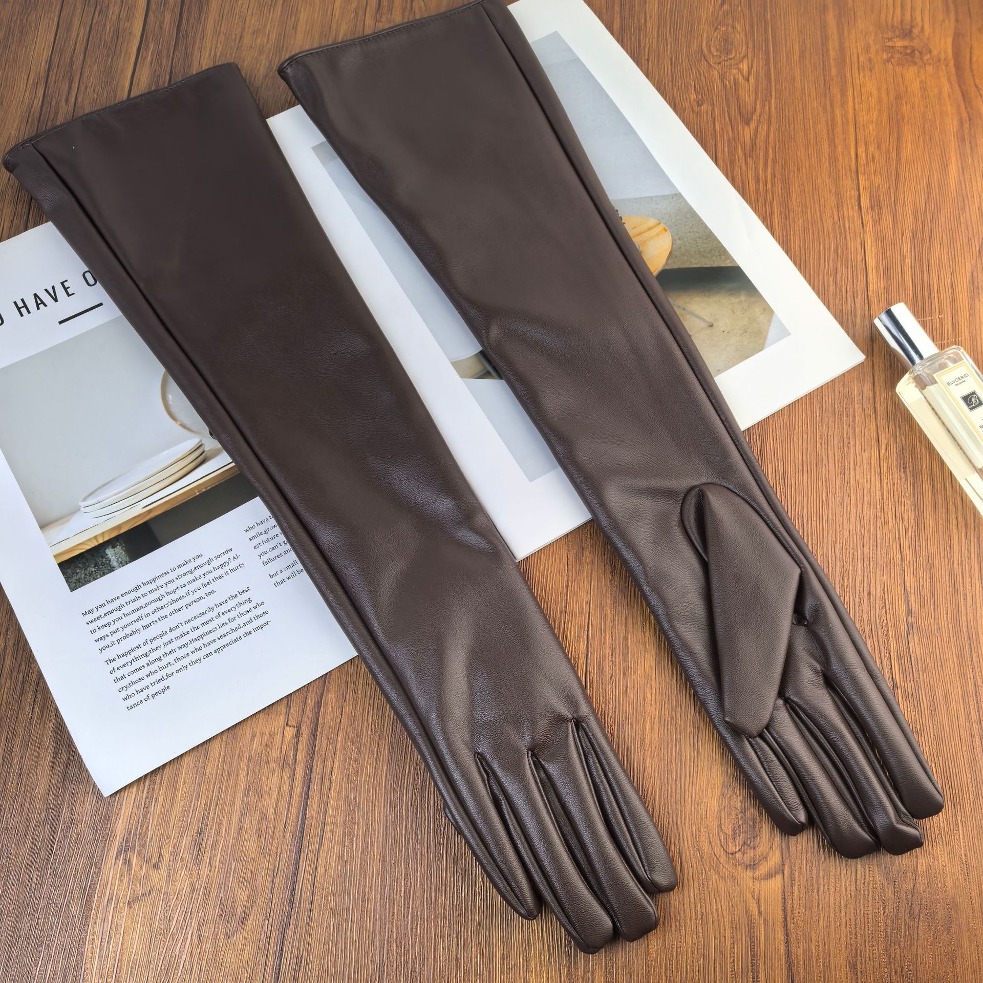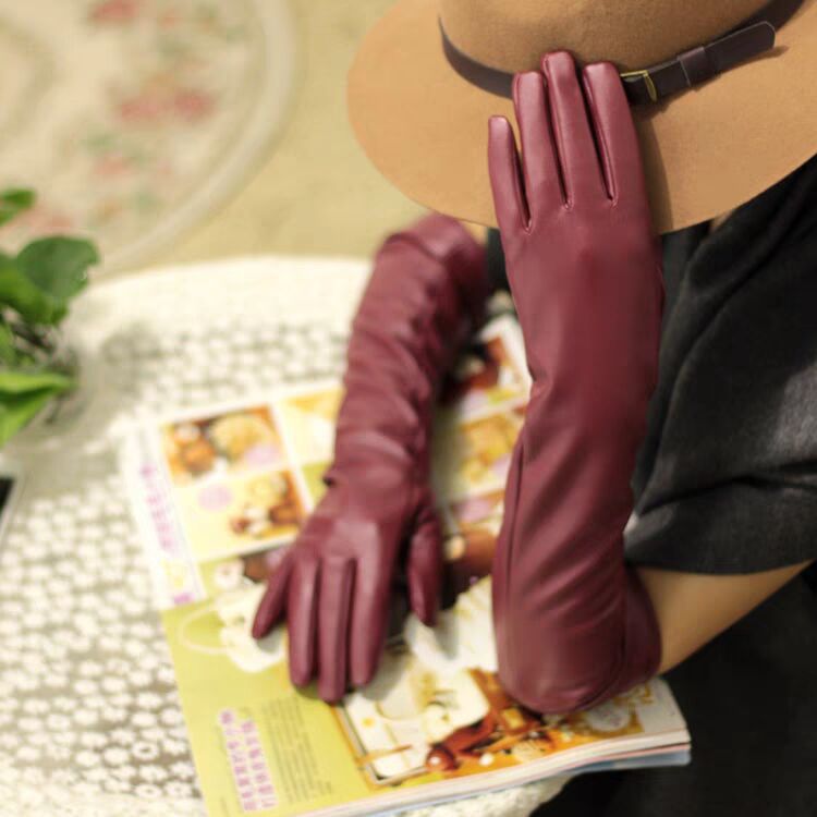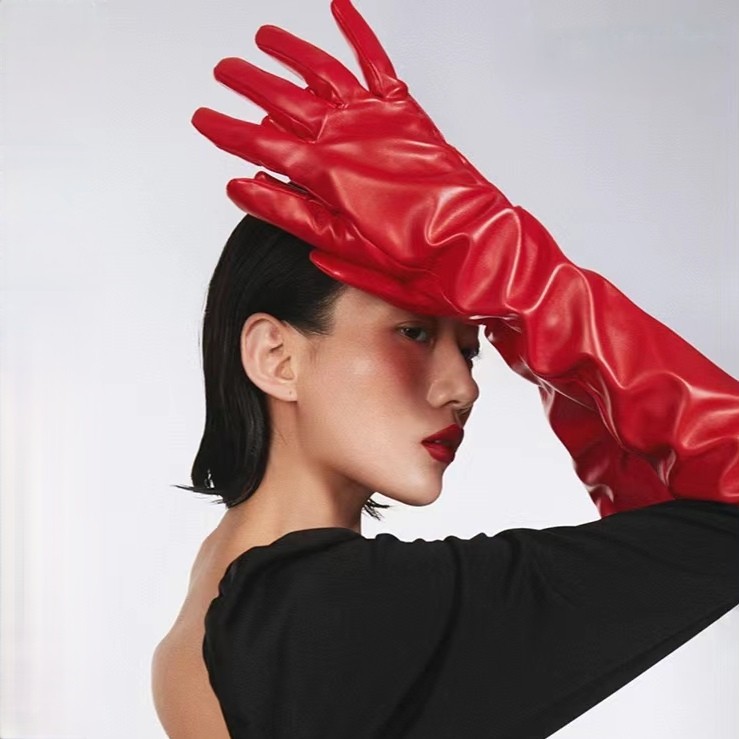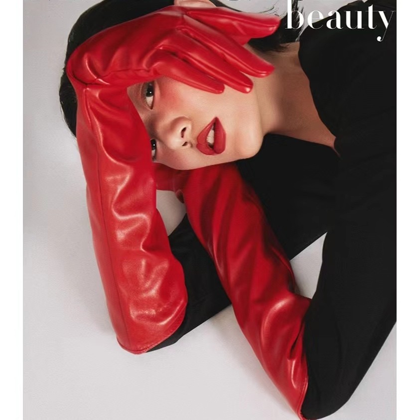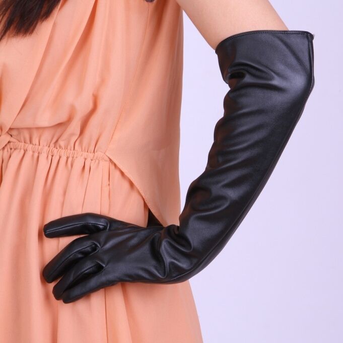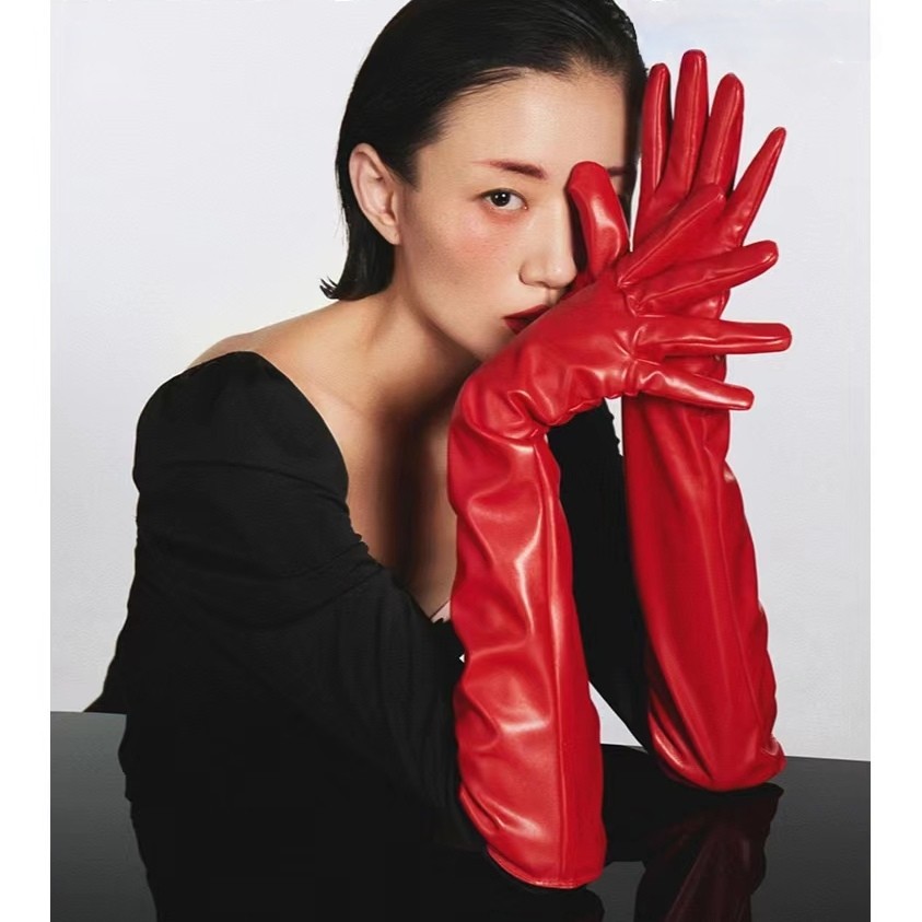 여성용 긴 PU 가죽 장갑 50cm 모방 가죽 타이트 긴 배럴 무대 성능 바 T-스테이지 쇼 COS스토어 가기