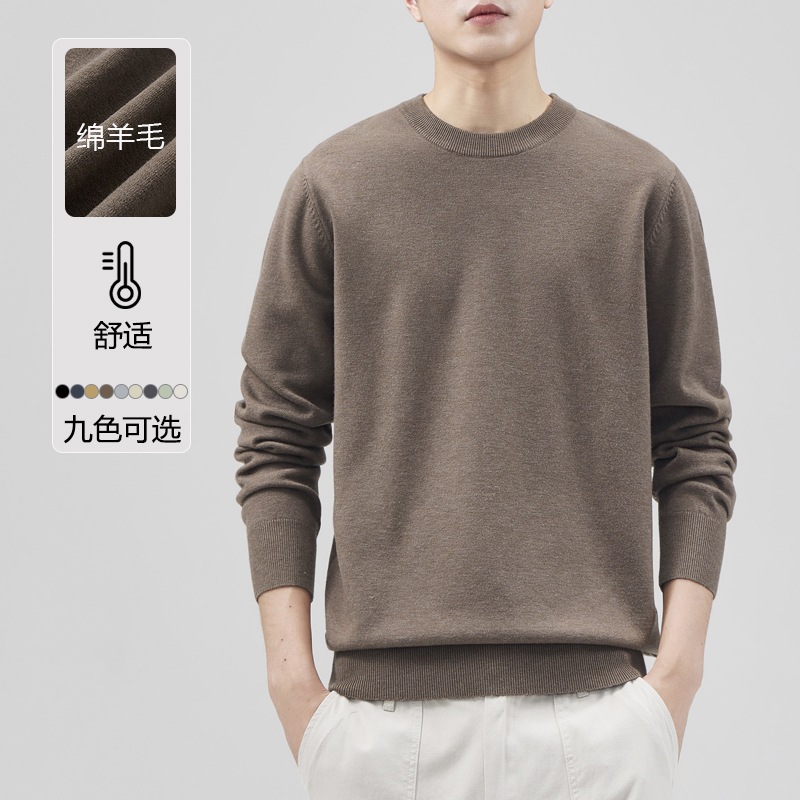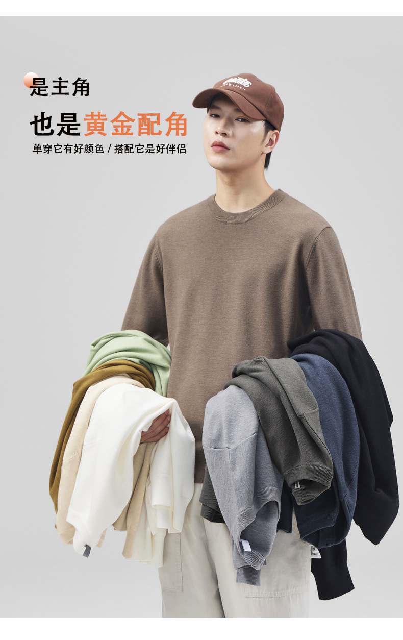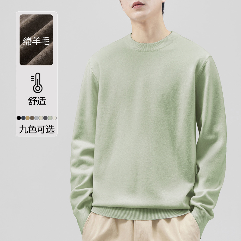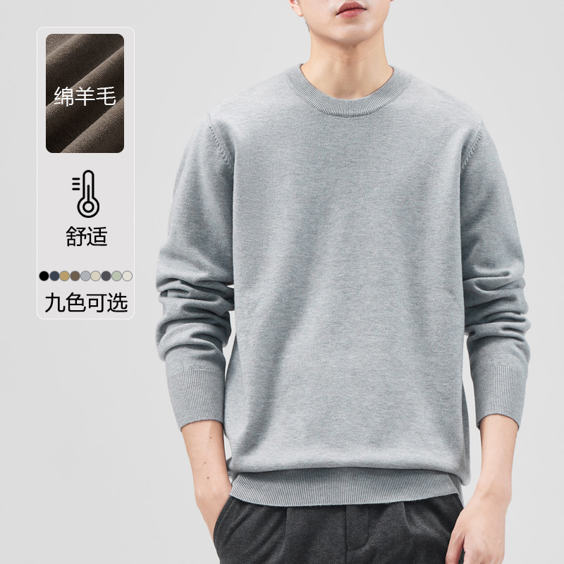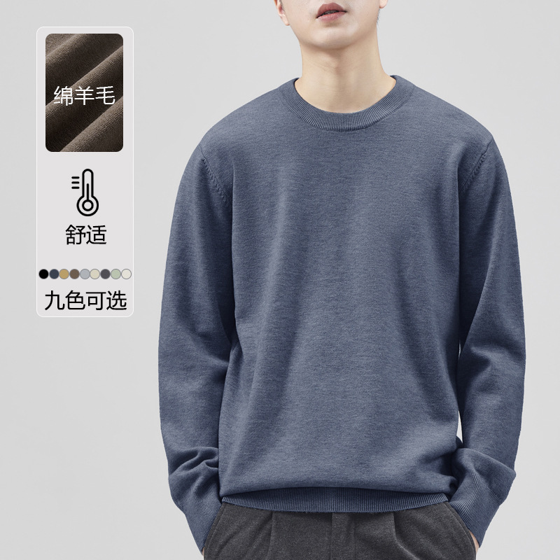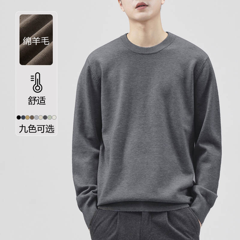 남성용 라운드 넥 양모 스웨터, 아메리칸 레트로 마이크로 와이드 베이스 트렌디 브랜드 일본 풀오버 스웨터 니트 텐셀 자체 발열스토어 가기