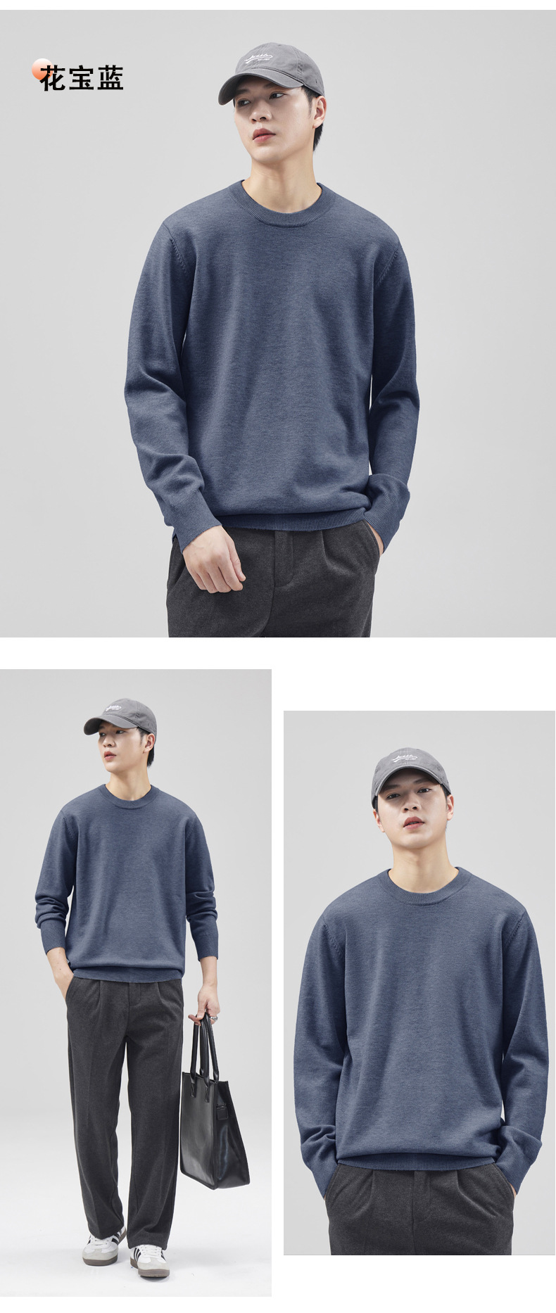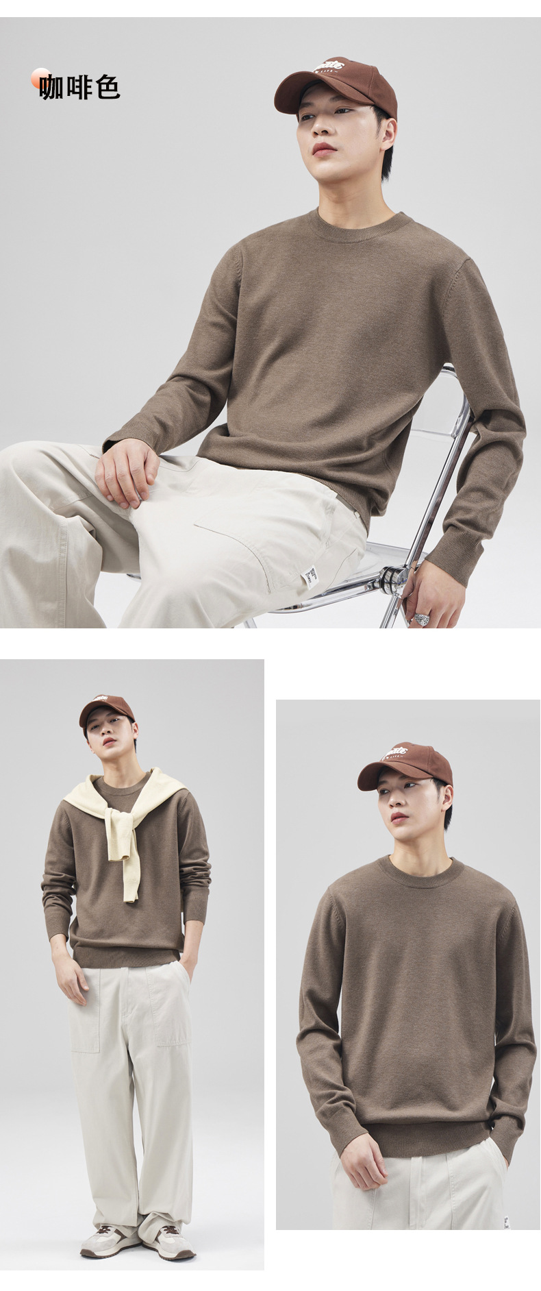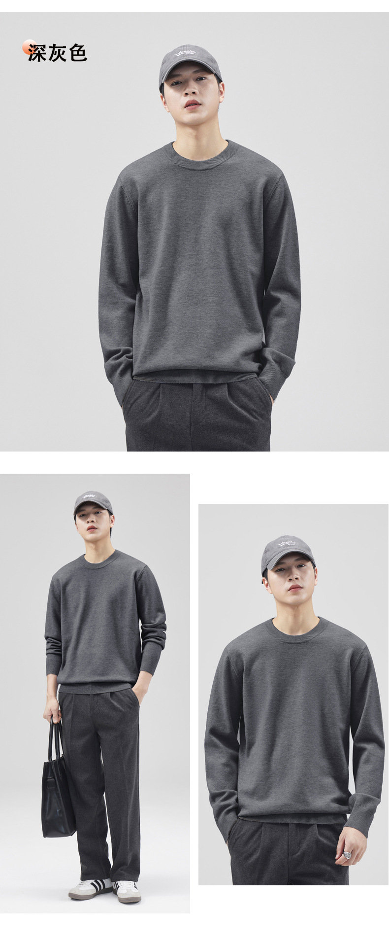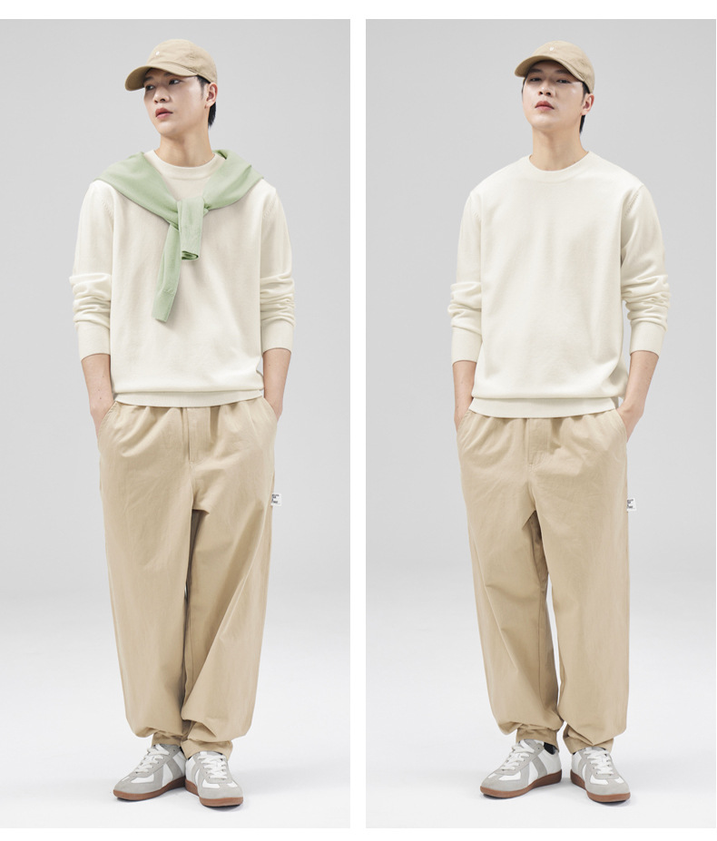 남성용 라운드 넥 양모 스웨터, 아메리칸 레트로 마이크로 와이드 베이스 트렌디 브랜드 일본 풀오버 스웨터 니트 텐셀 자체 발열스토어 가기
