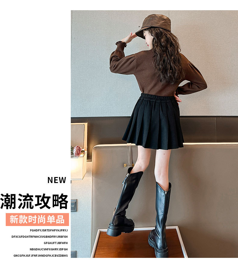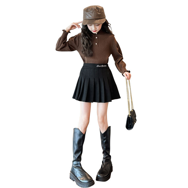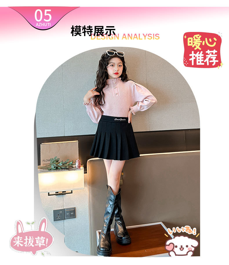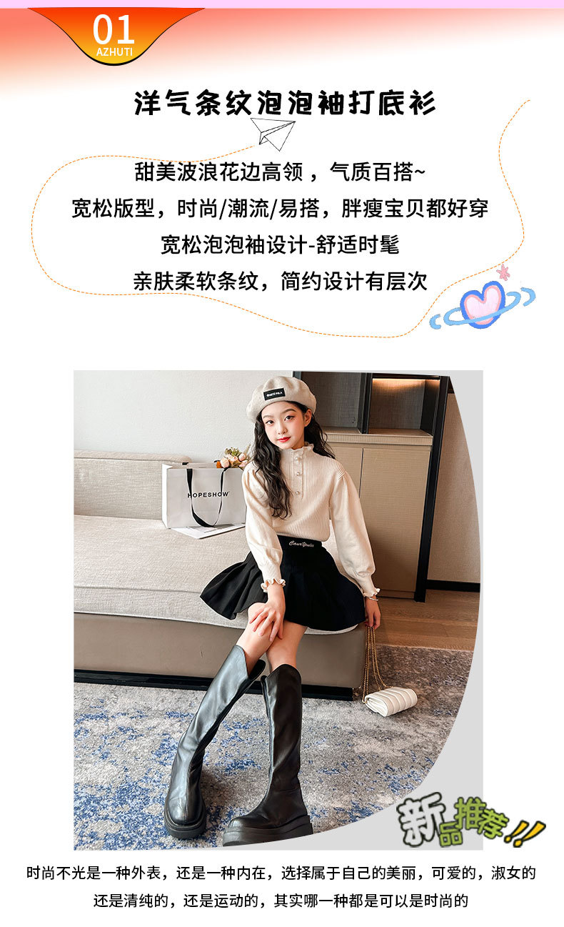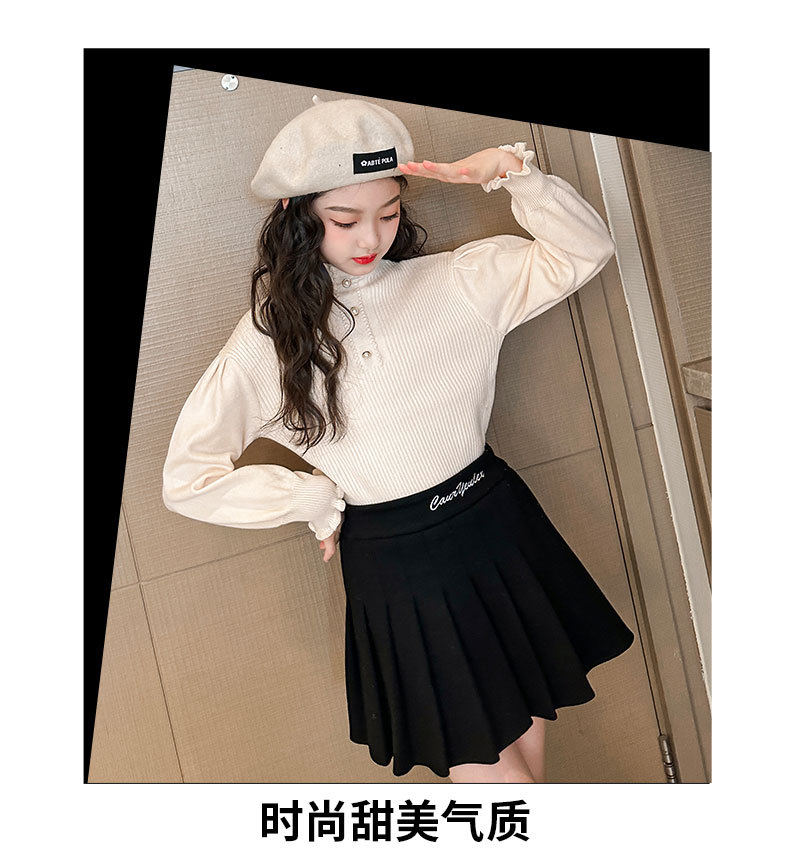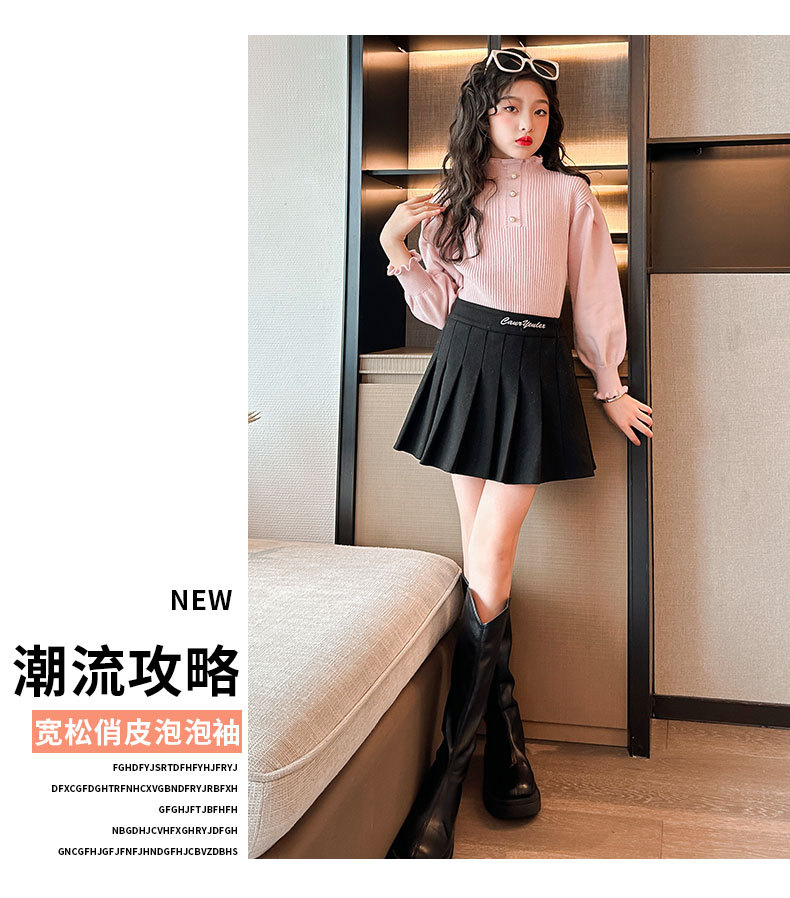 여성용 아동복 가을과 겨울 서양식 어린이 유행 새 스웨터 대형 어린이 퍼프 슬리브 레이스 달콤한 니트 베이스 셔츠