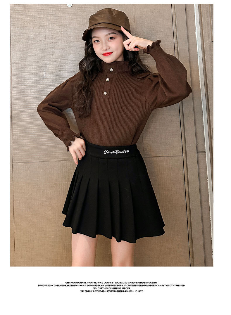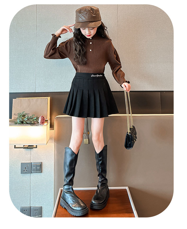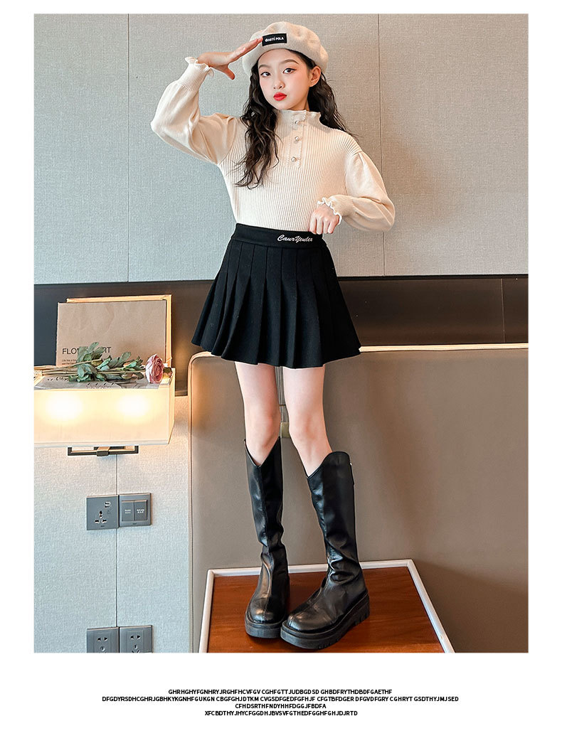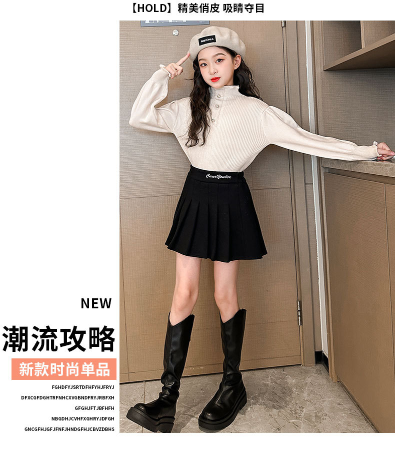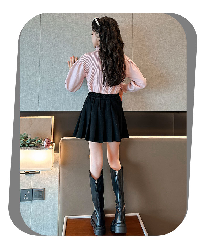 여성용 아동복 가을과 겨울 서양식 어린이 유행 새 스웨터 대형 어린이 퍼프 슬리브 레이스 달콤한 니트 베이스 셔츠