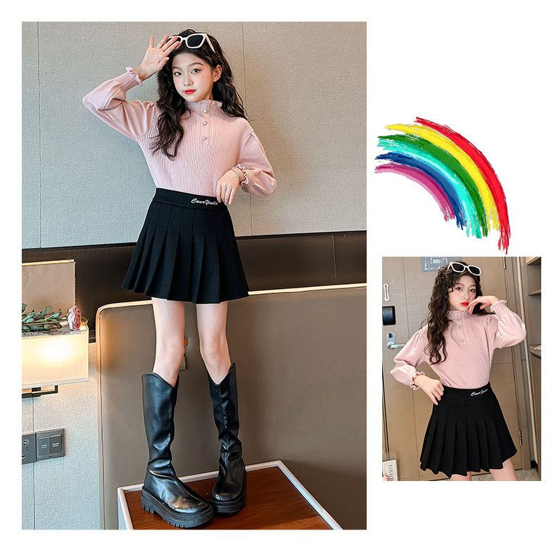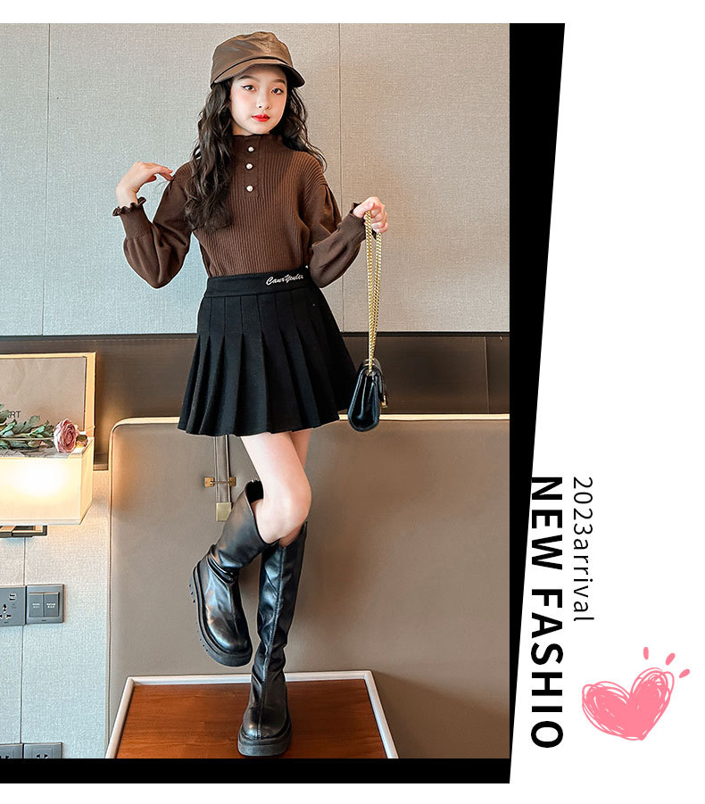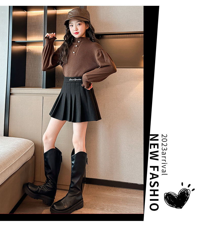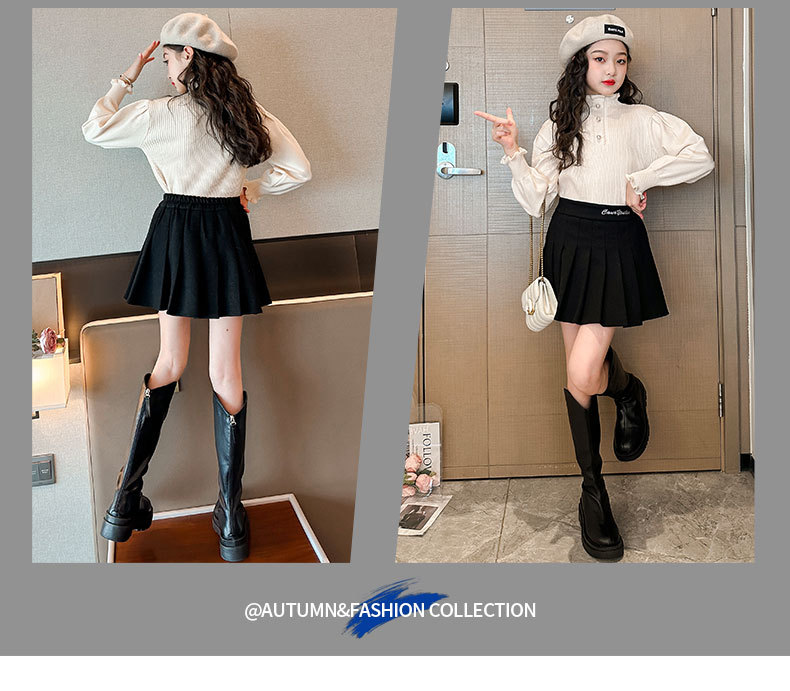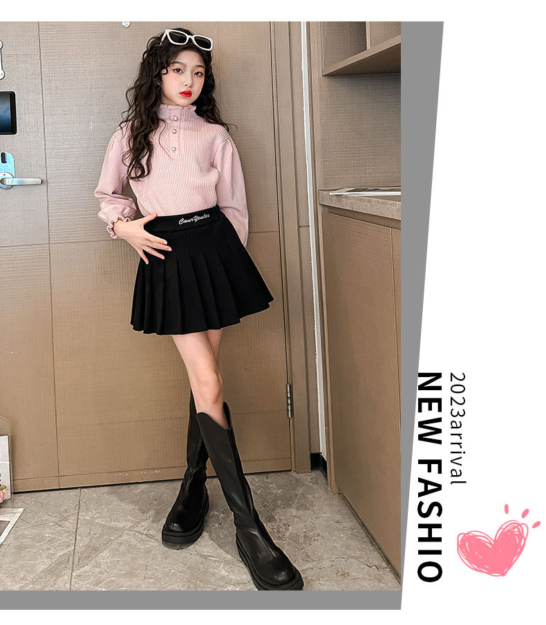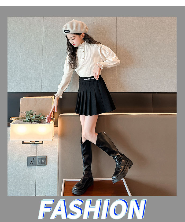 여성용 아동복 가을과 겨울 서양식 어린이 유행 새 스웨터 대형 어린이 퍼프 슬리브 레이스 달콤한 니트 베이스 셔츠