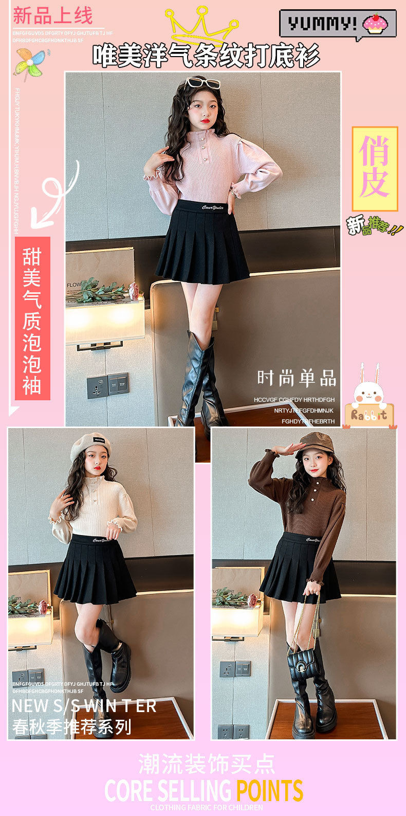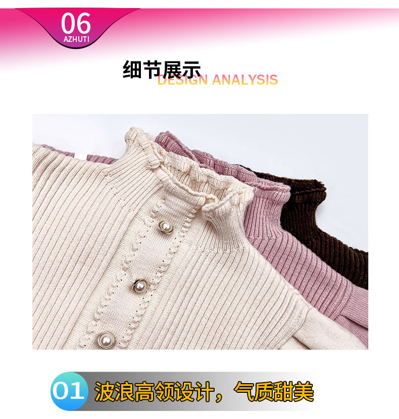여성용 아동복 가을과 겨울 서양식 어린이 유행 새 스웨터 대형 어린이 퍼프 슬리브 레이스 달콤한 니트 베이스 셔츠스토어 가기