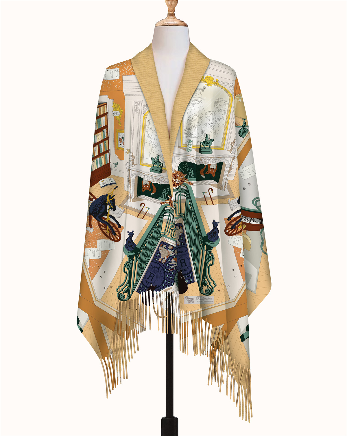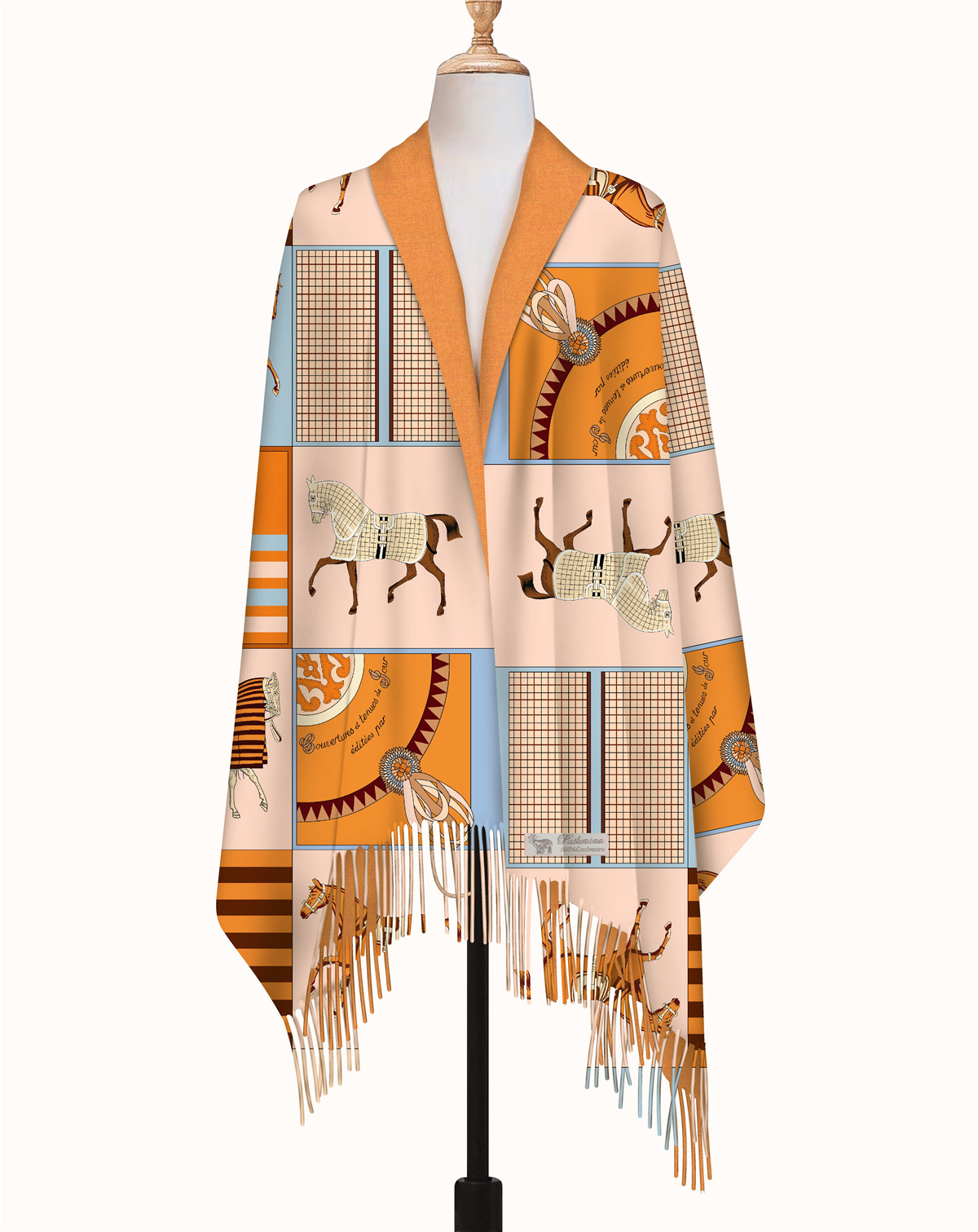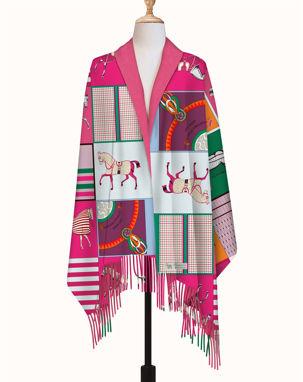 스카프 여성의 가을과 겨울 2024 새로운 캐시미어 술 양면 인쇄 250g 망토 고급 외부 목도리스토어 가기
