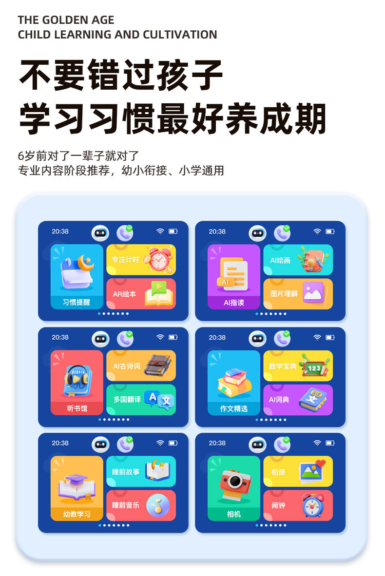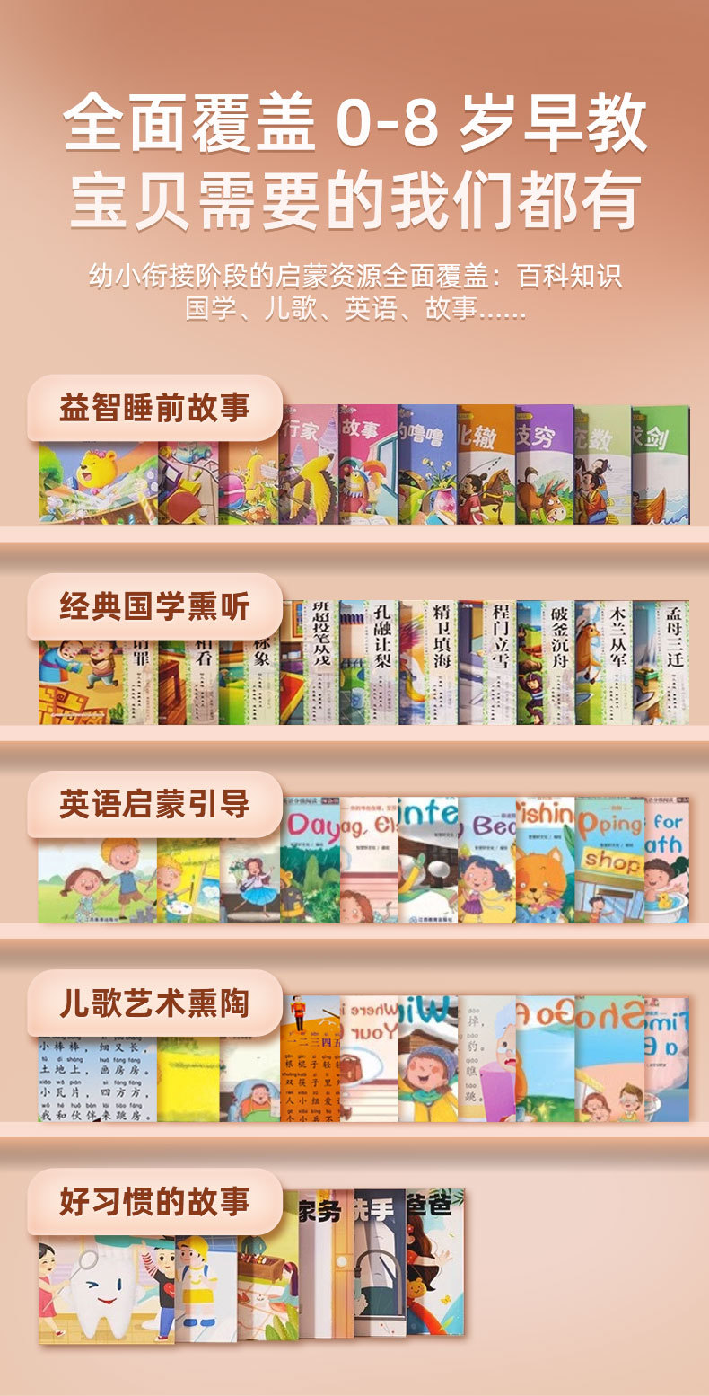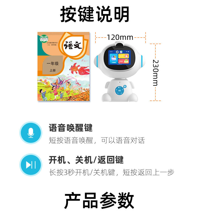 • 대형 모델 + 그림책 손가락 읽기 + 터치스크린 + 음성 통화 + AI 음성