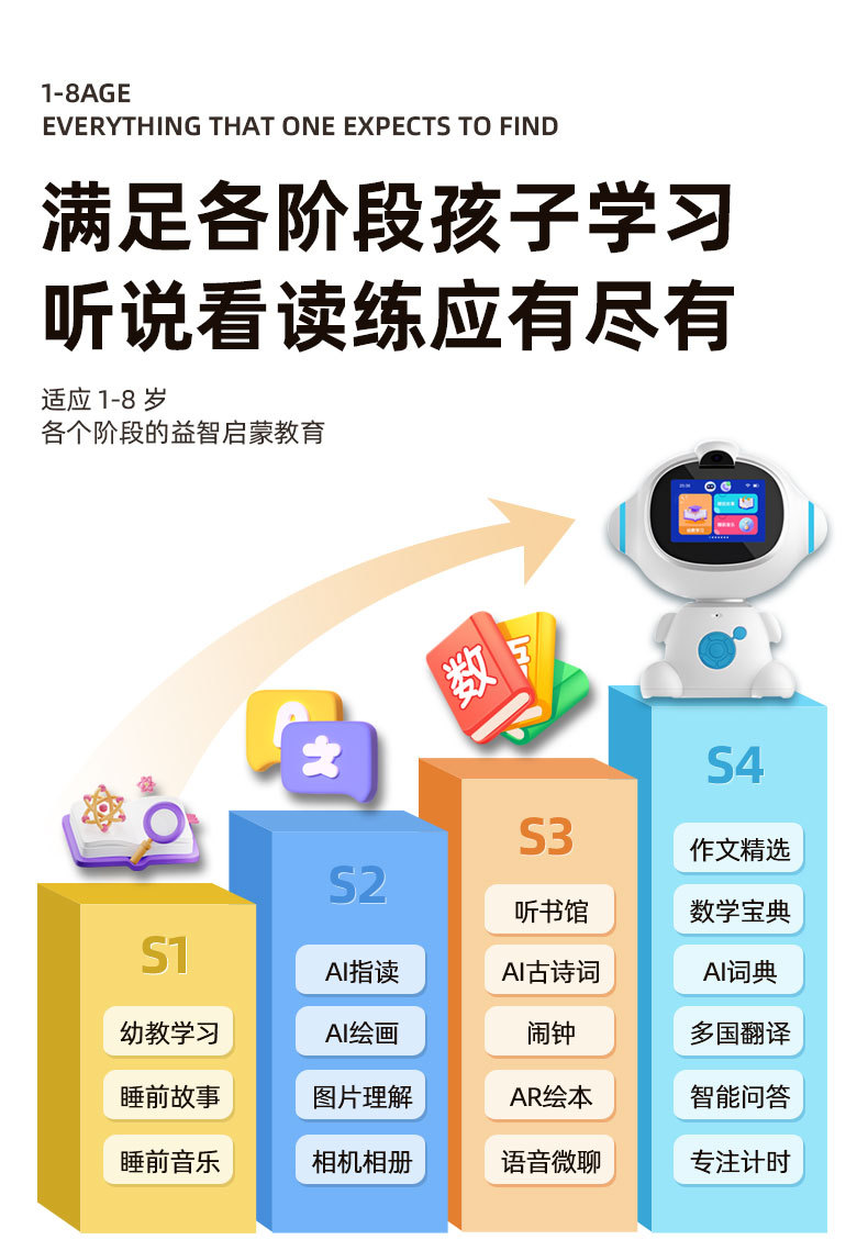 유아 교육 기기 3-6세 어린이용 화면 탑재 AI 음성 상호작용 학습 교육 로봇 지능형 음성스토어 가기