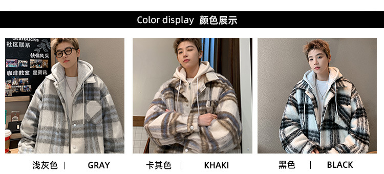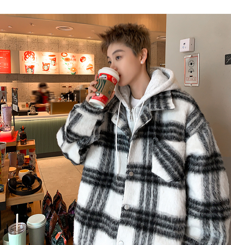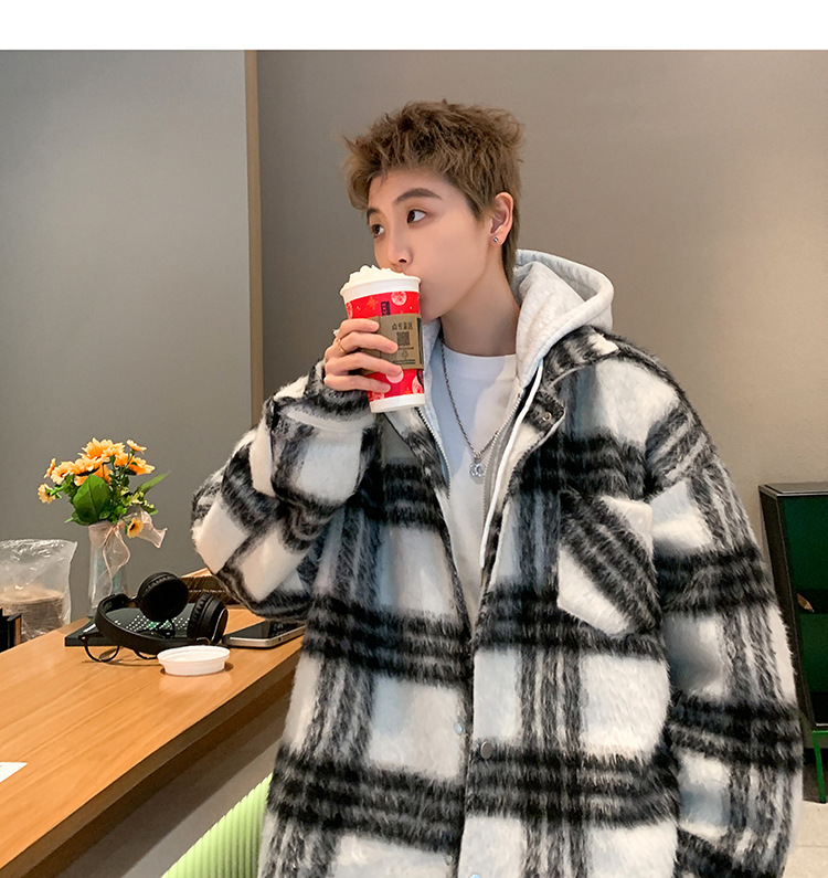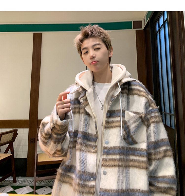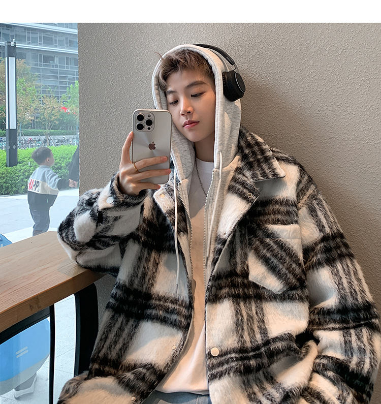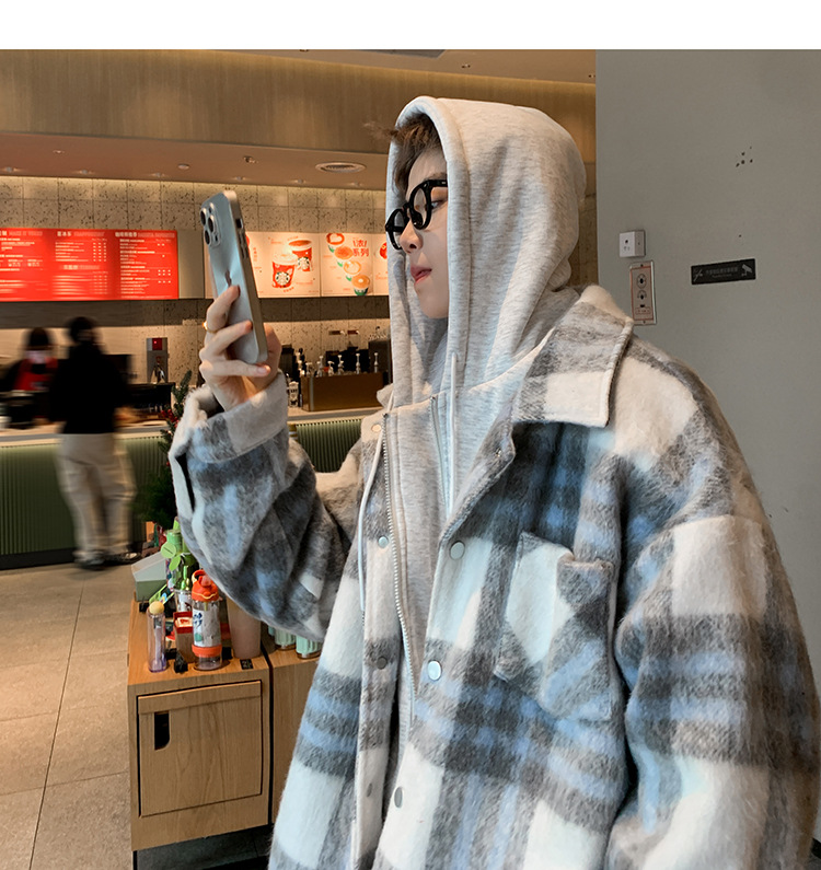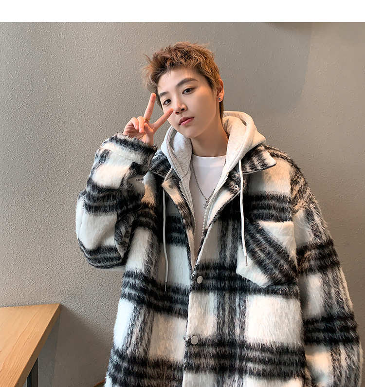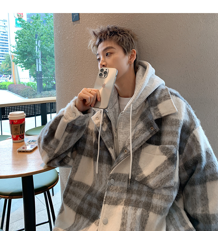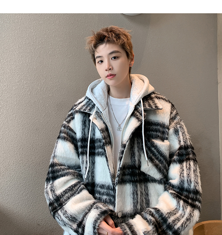 남자 가짜 투피스 플레이드 코튼 패딩 재킷 남자 2024 가을 겨울 새로운 미국 스타일 패션 브랜드 샤넬 스타일 후드 재킷 코트스토어 가기