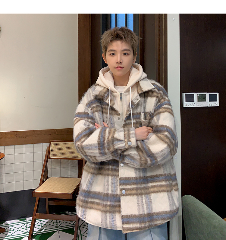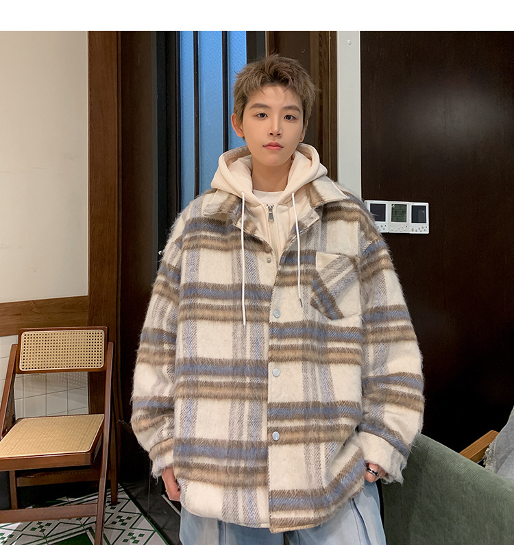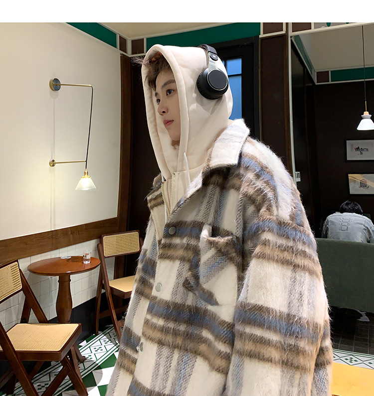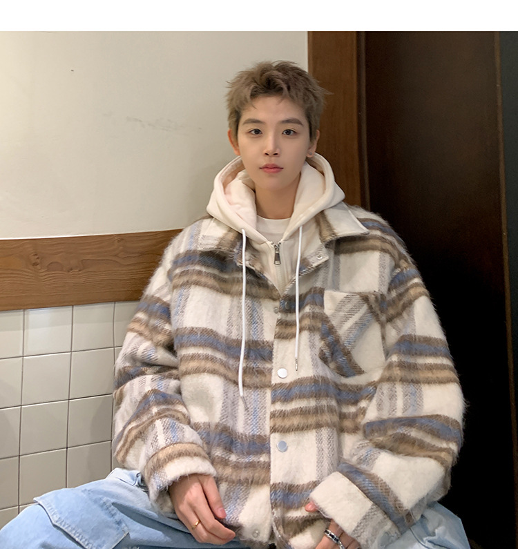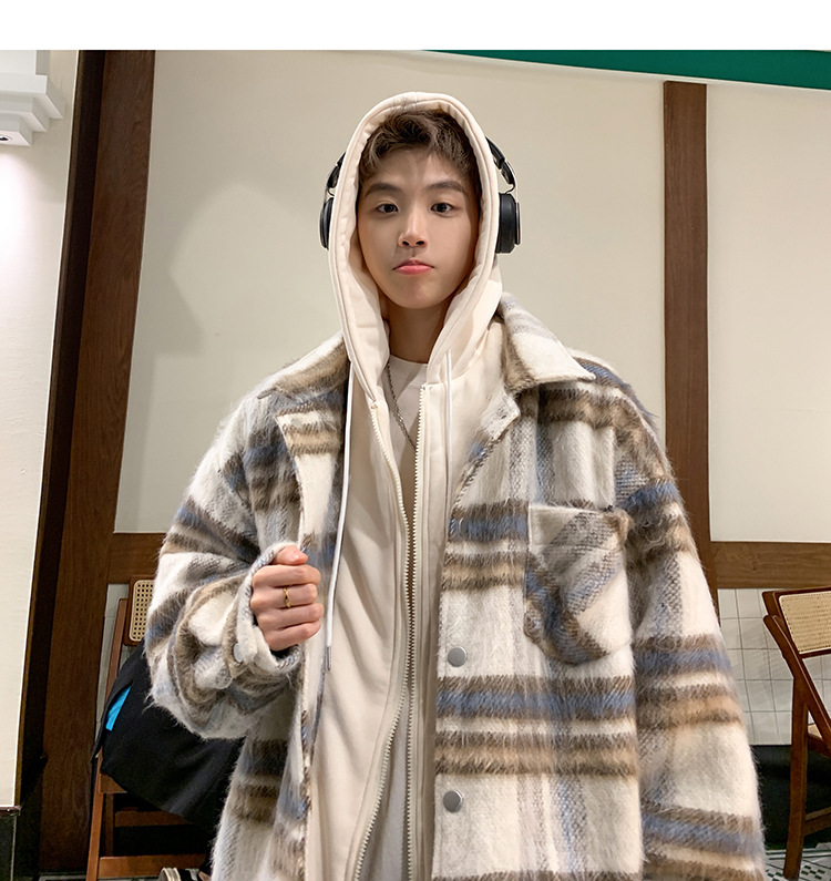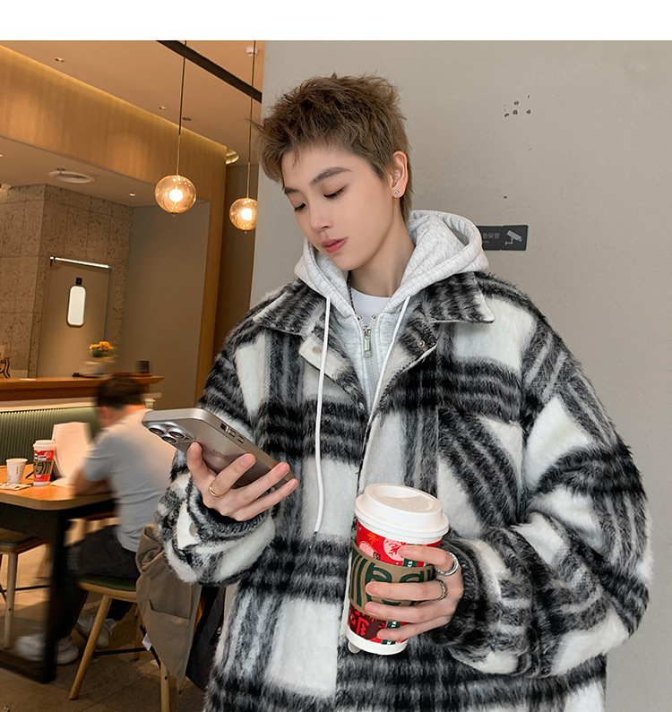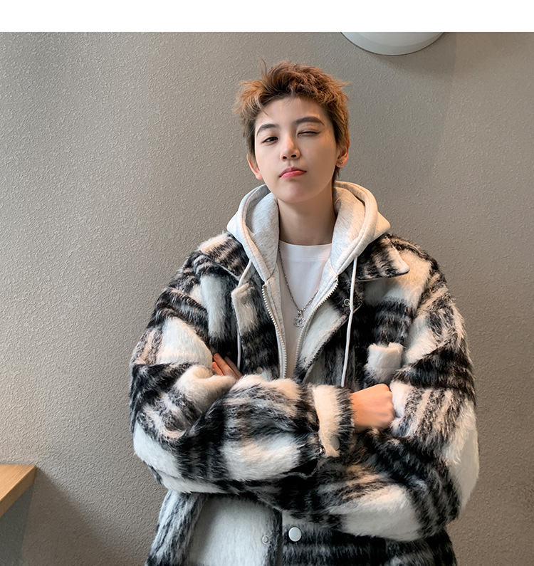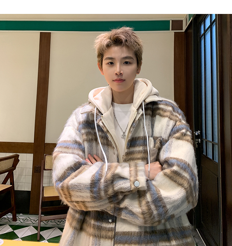남자 가짜 투피스 플레이드 코튼 패딩 재킷 남자 2024 가을 겨울 새로운 미국 스타일 패션 브랜드 샤넬 스타일 후드 재킷 코트스토어 가기
