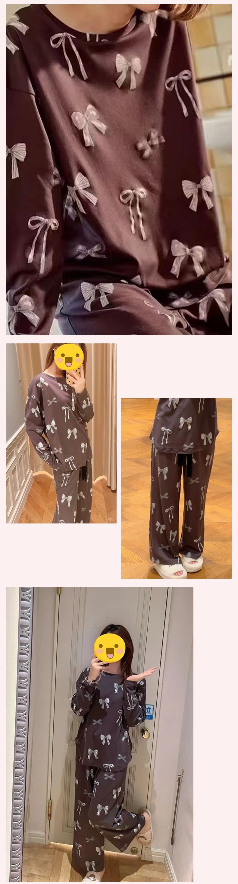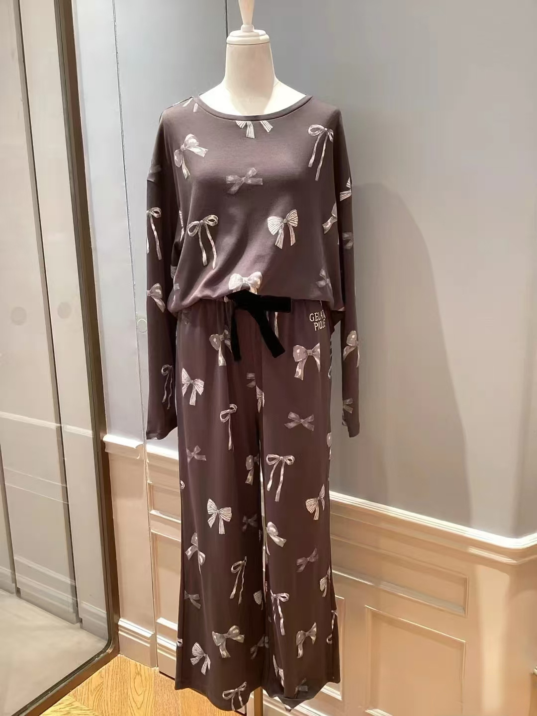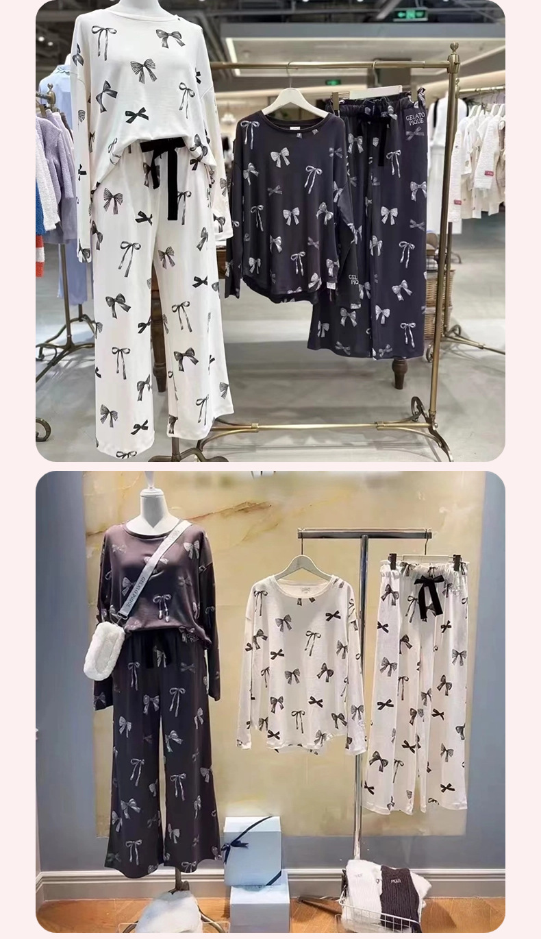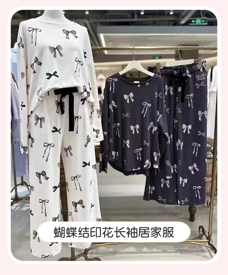 부드러운 겨울 새 아이스크림 코튼 프린트 부드러운 둥근 목 활 긴 소매 바지 파자마 여성용 홈 옷스토어 가기