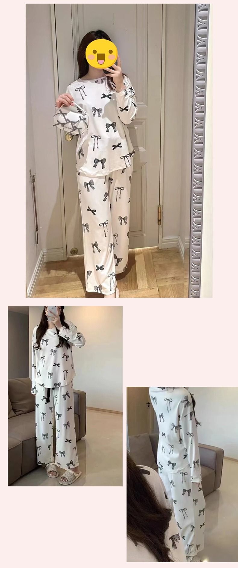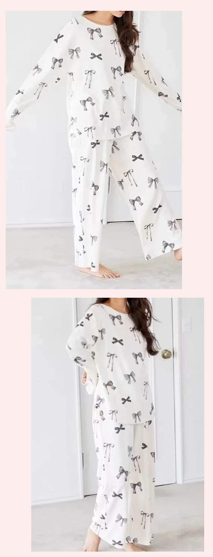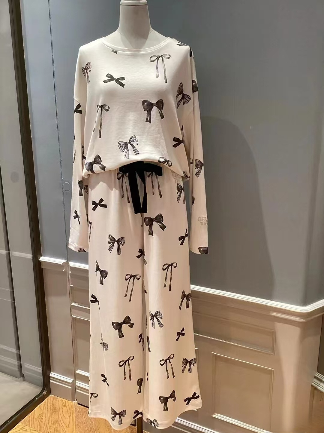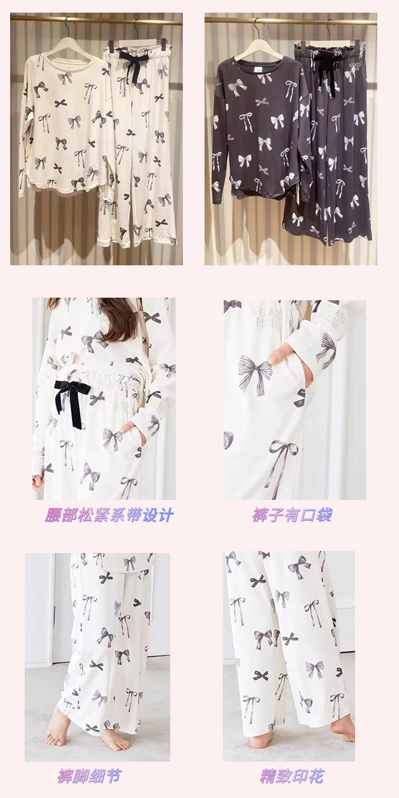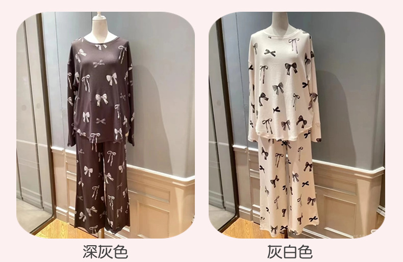 부드러운 겨울 새 아이스크림 코튼 프린트 부드러운 둥근 목 활 긴 소매 바지 파자마 여성용 홈 옷