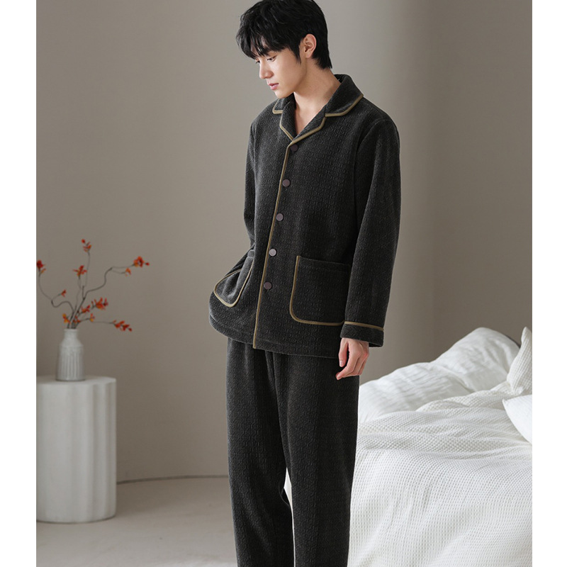겨울 새로운 Chenille Jacquard 더블 레이어 복합 벨벳 커플 잠옷 옷깃 카디건 두꺼운 따뜻한 집 옷