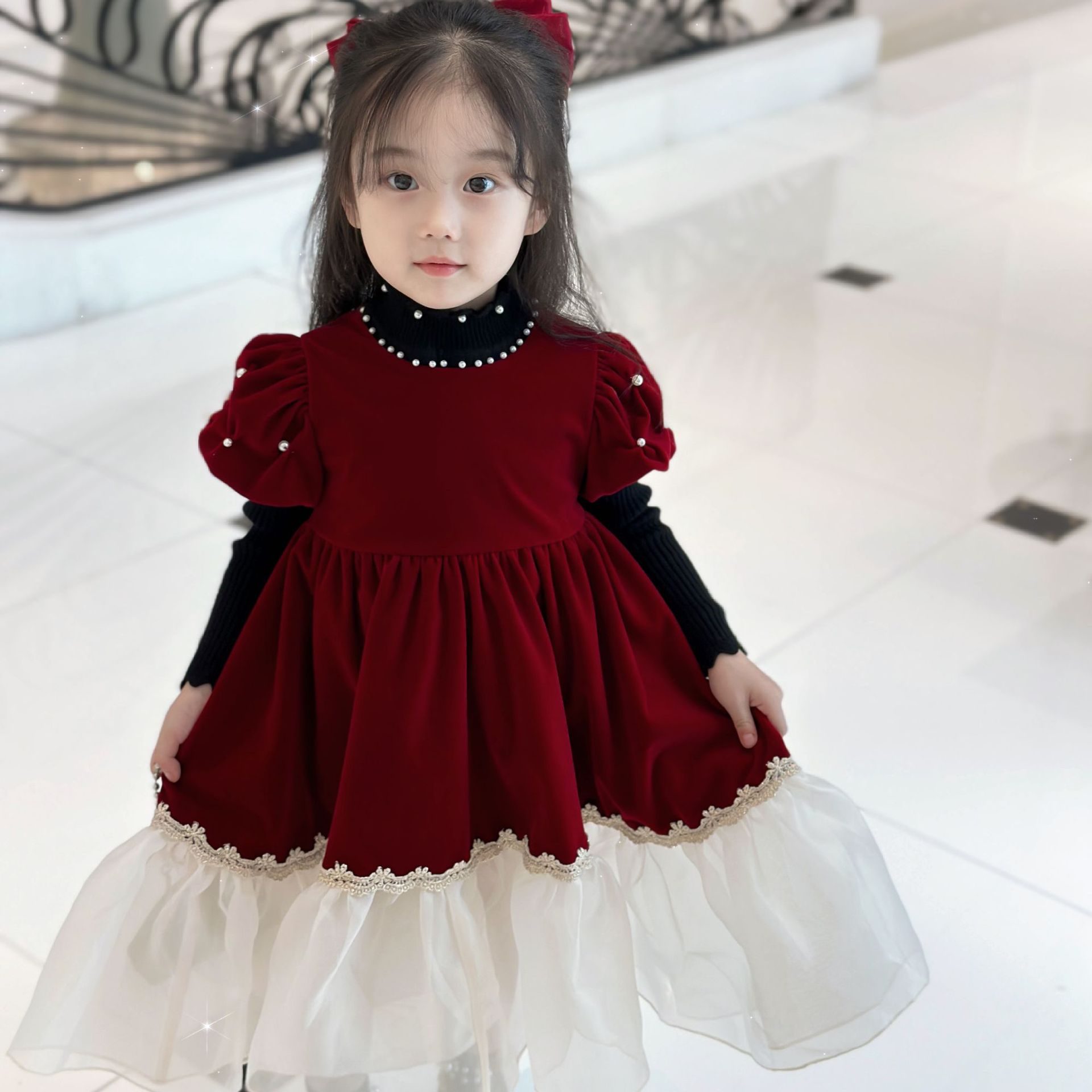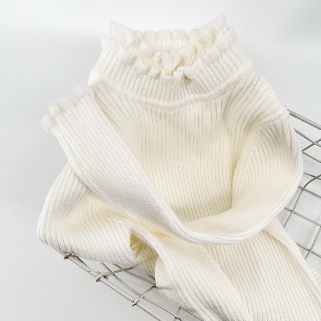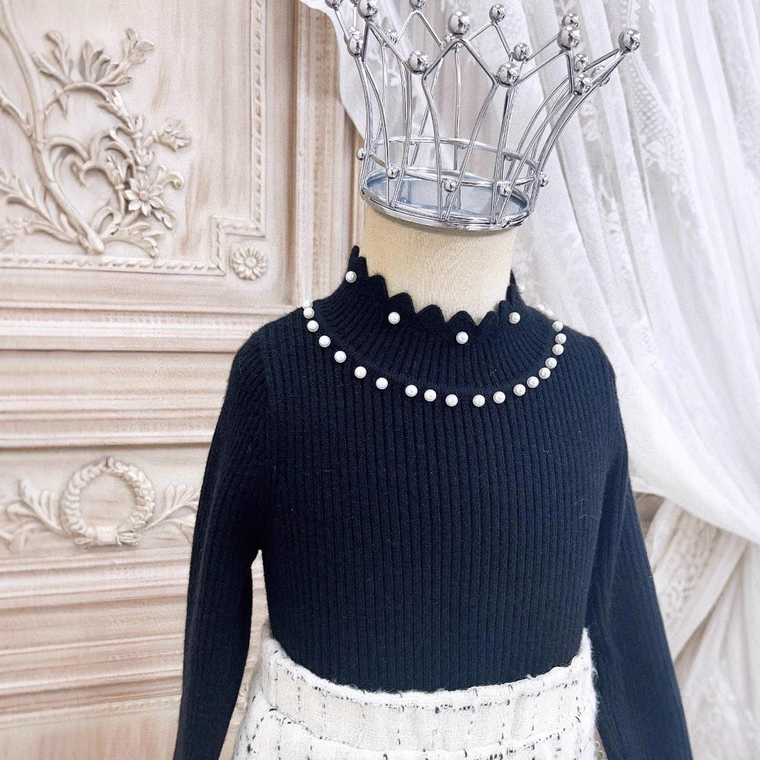 厂家女童百搭长袖打底毛衣针织衫秋冬新款花边珍珠领羊绒混纺奶杏色打底衫