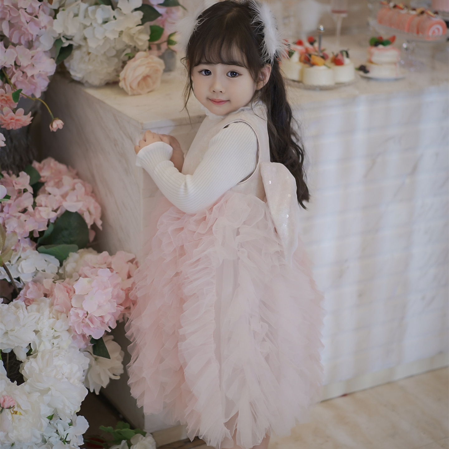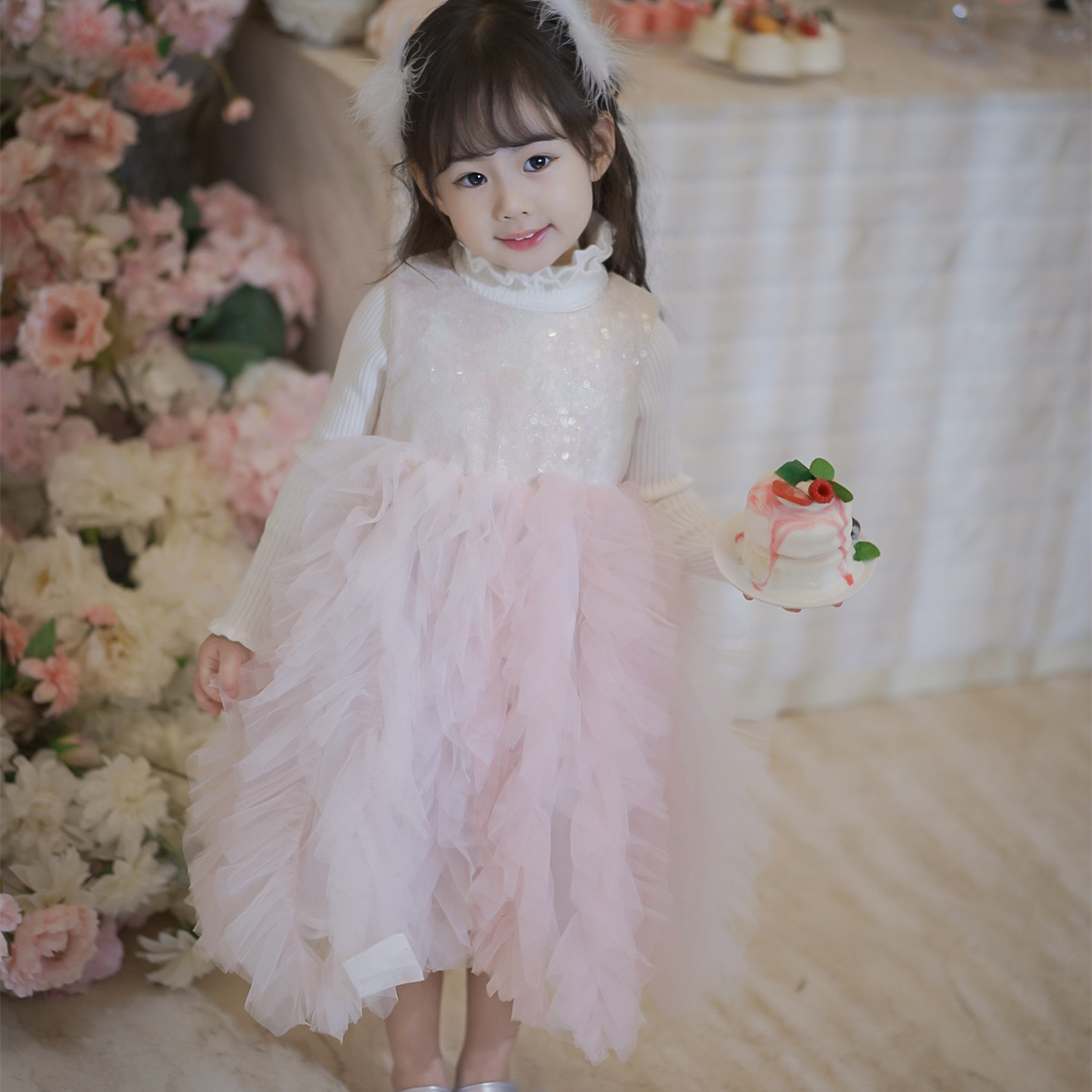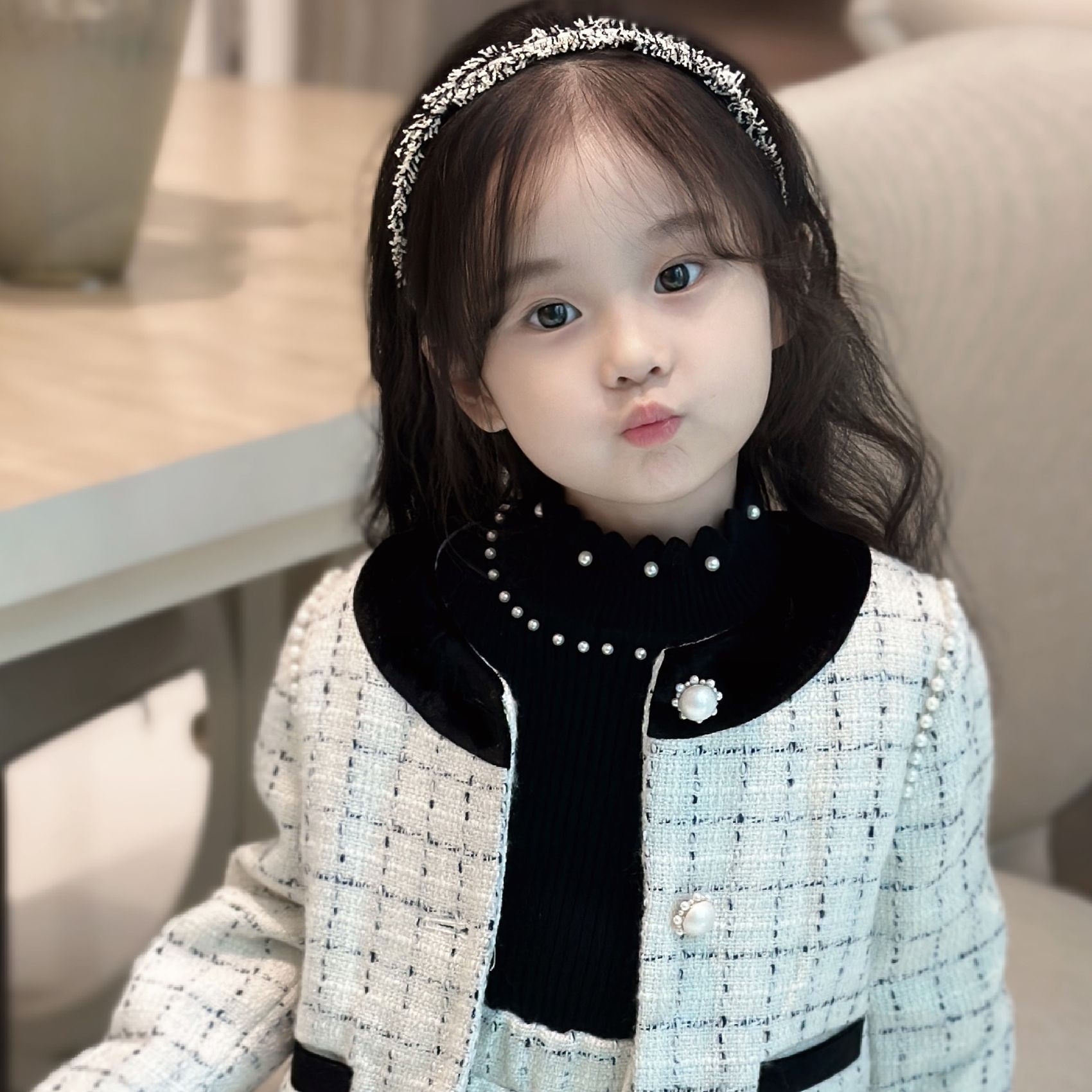 厂家女童百搭长袖打底毛衣针织衫秋冬新款花边珍珠领羊绒混纺奶杏色打底衫