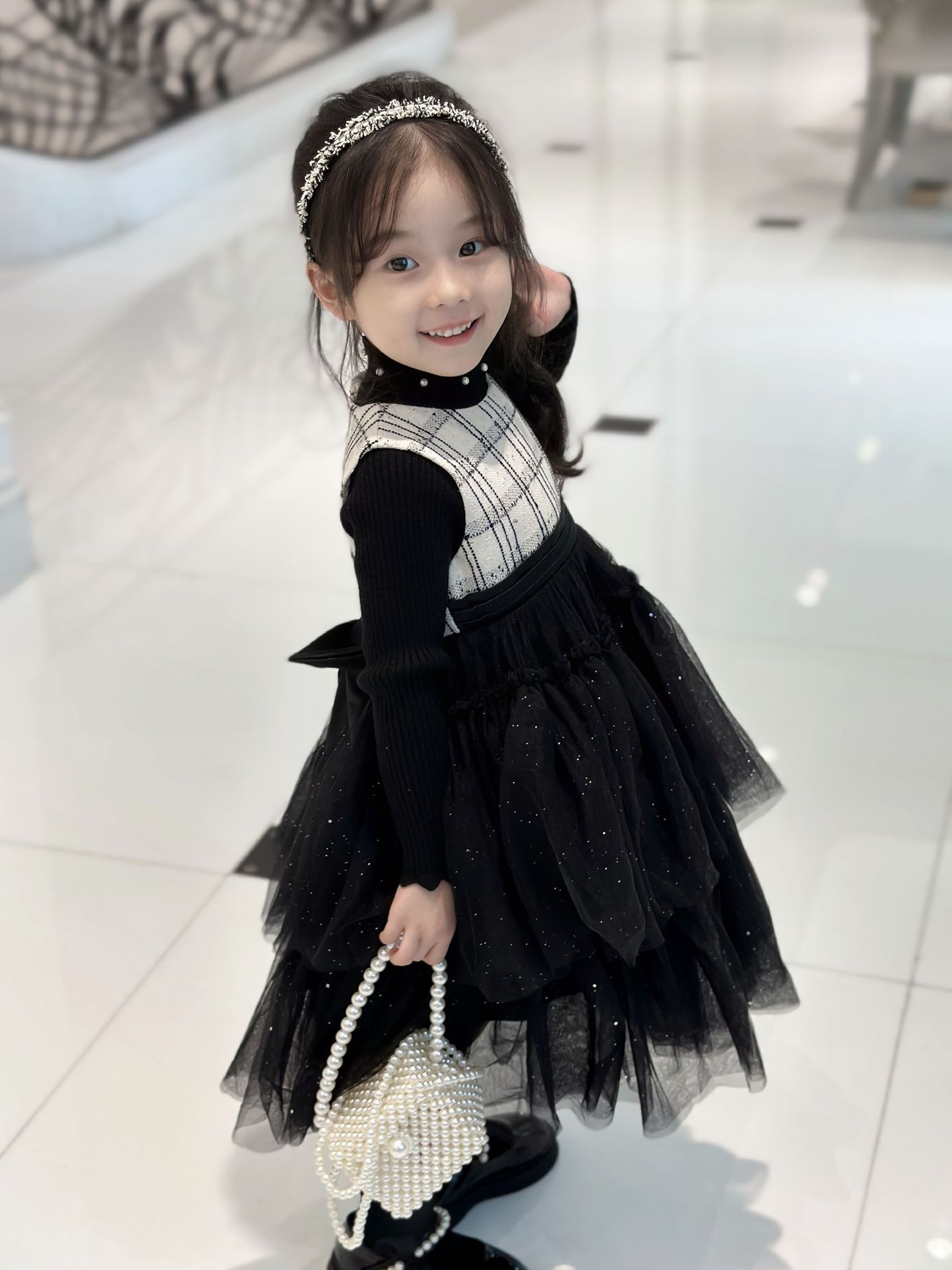 [Clearance No Return] Girls' Backing Sweater Knitted Shirt Black and White Backing Shirt스토어 가기