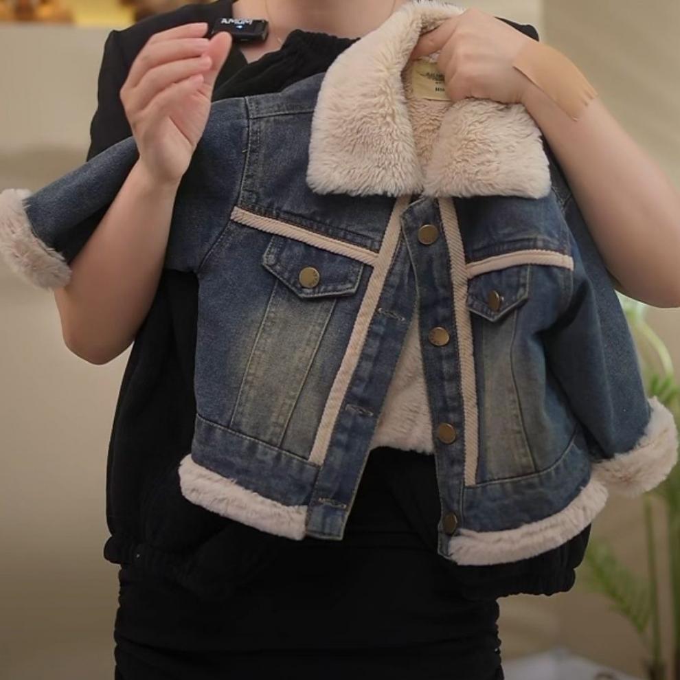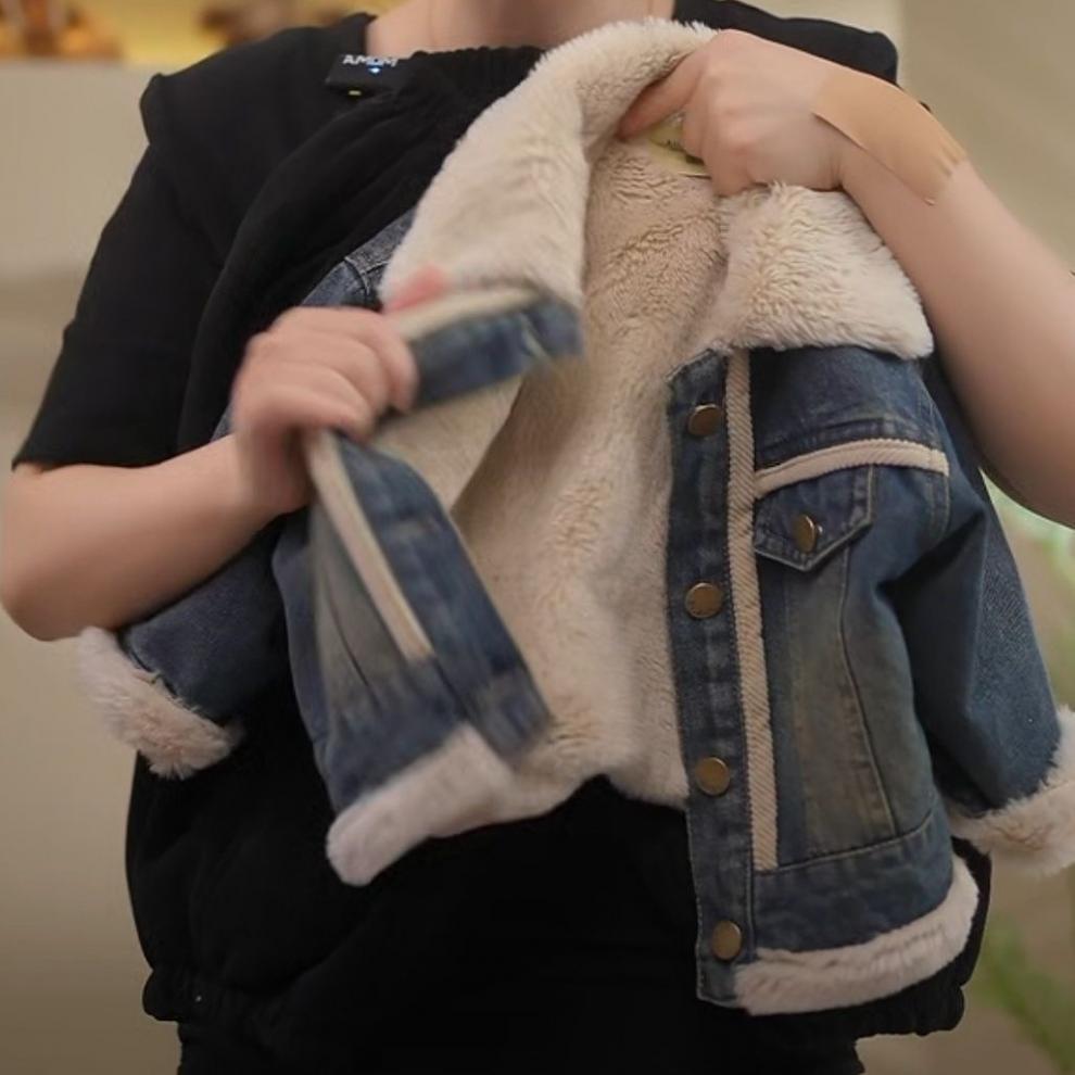 소년 코트 가을과 겨울 소년과 소녀 아기 어린이 소년의 데님 외복을위한 두꺼운 옷을 기모스토어 가기