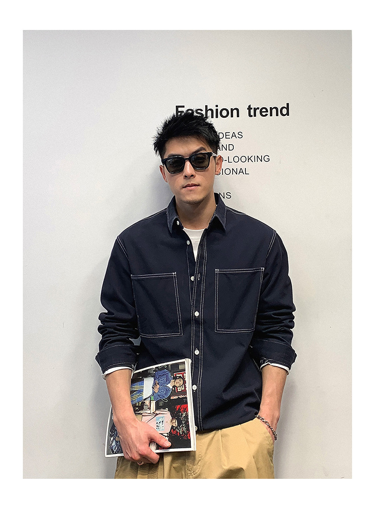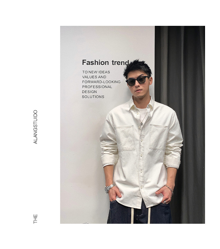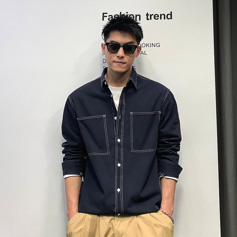 2023 봄 긴팔 셔츠 남자 일본 스타일 레트로 캐주얼 셔츠 고급 유행 브랜드 트렌디 셔츠 재킷스토어 가기