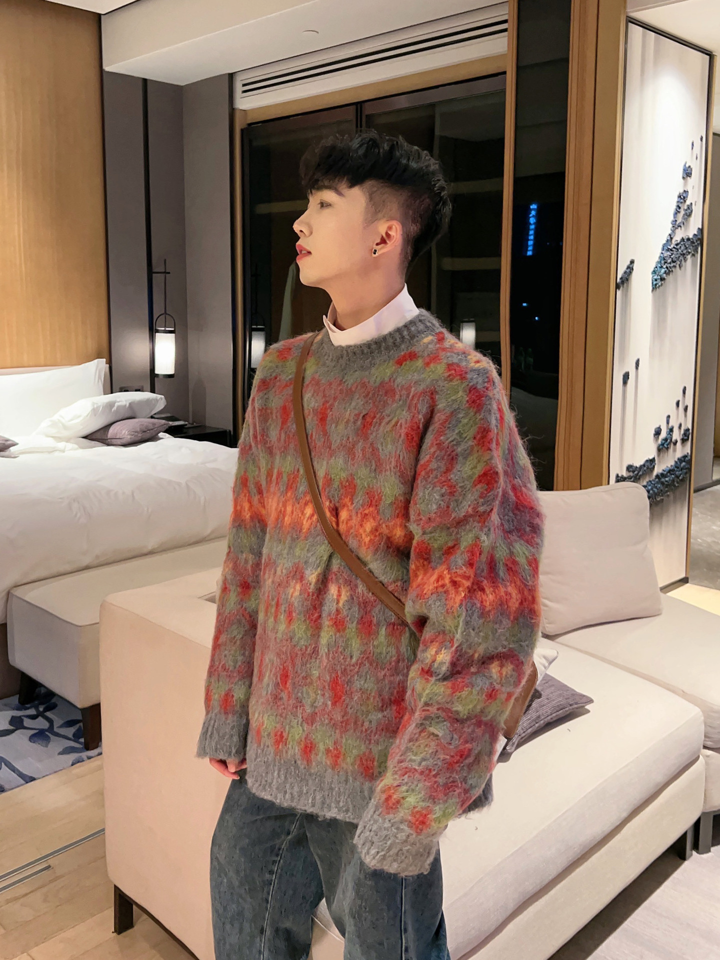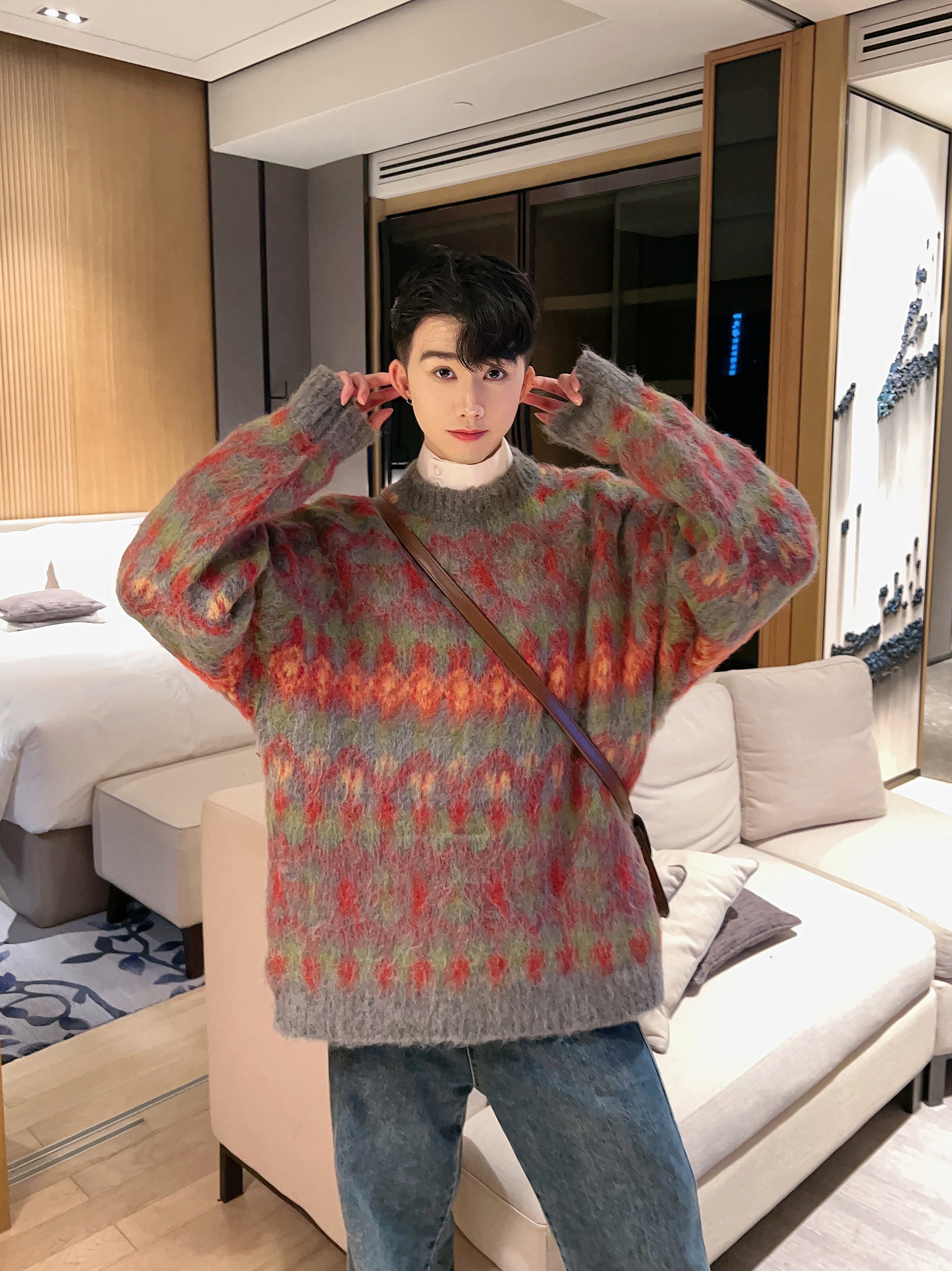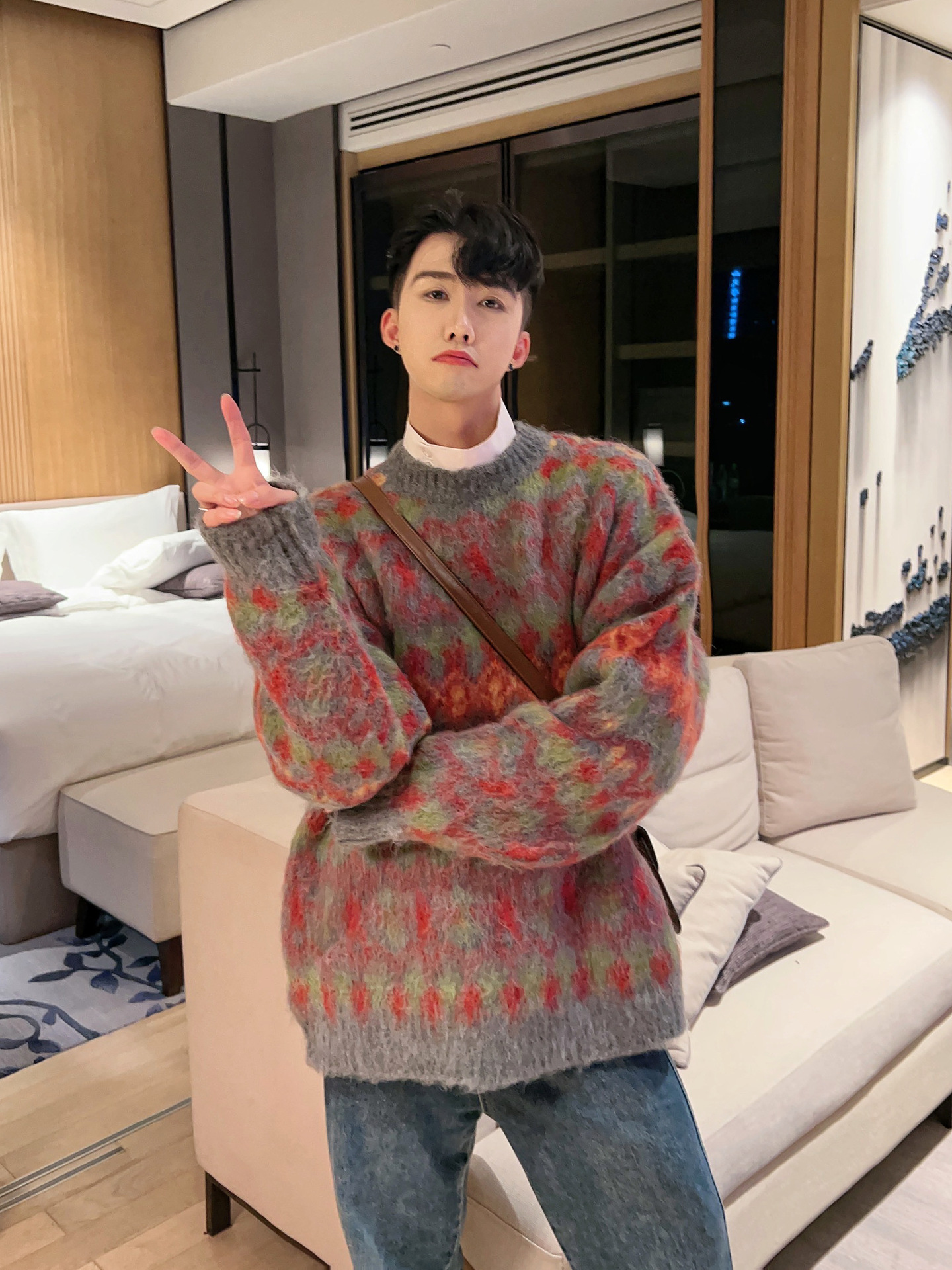 크리스마스 Ins 다채로운 니트 스웨터 남자의 겨울 새로운 게으른 스타일 틈새 느슨한 질감 풀오버 트렌디 스웨터스토어 가기