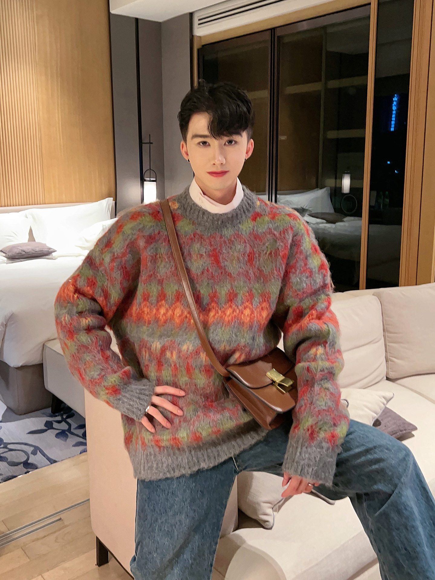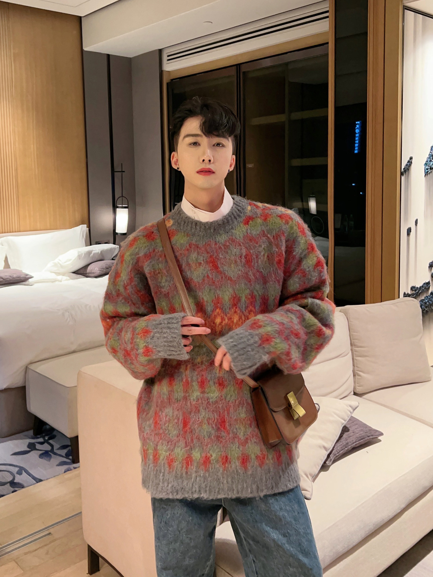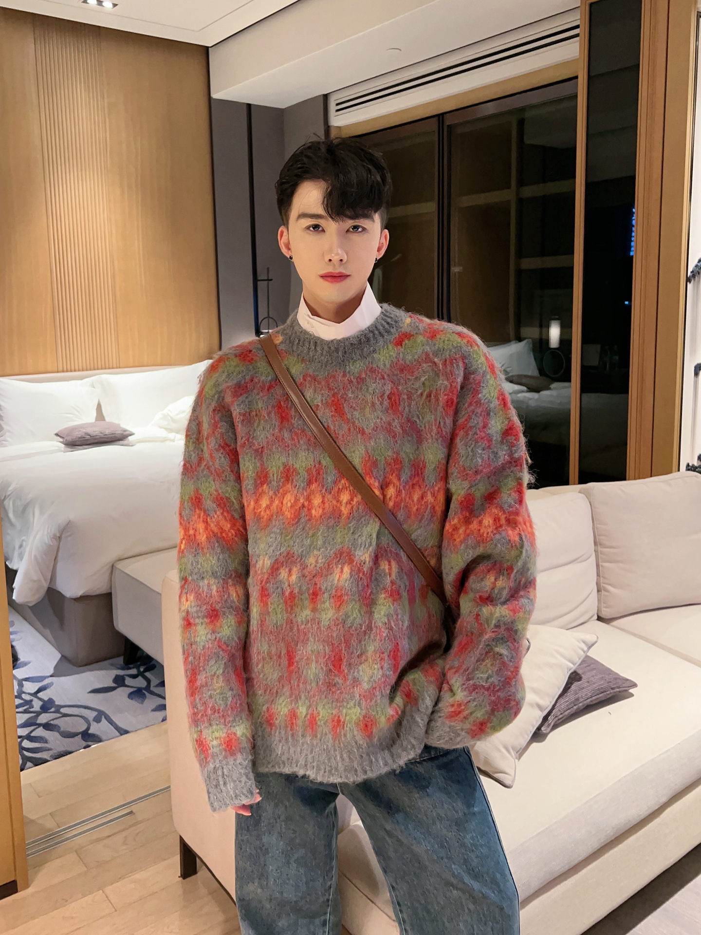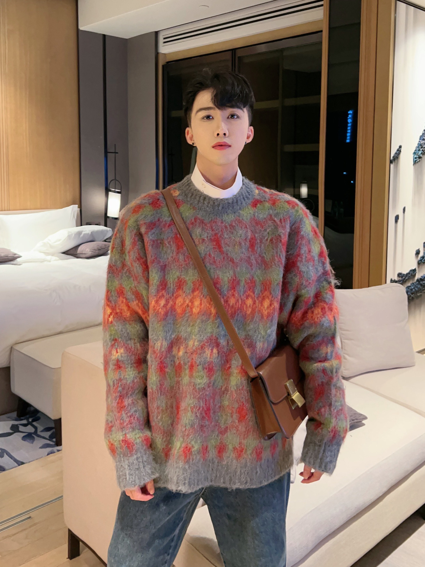 크리스마스 Ins 다채로운 니트 스웨터 남자의 겨울 새로운 게으른 스타일 틈새 느슨한 질감 풀오버 트렌디 스웨터