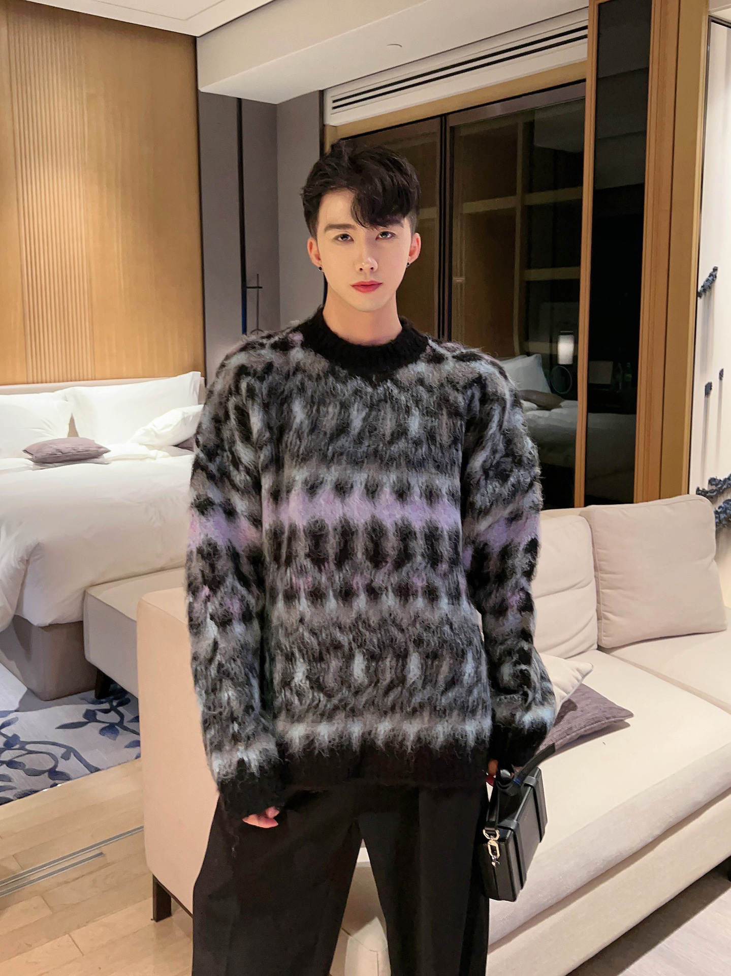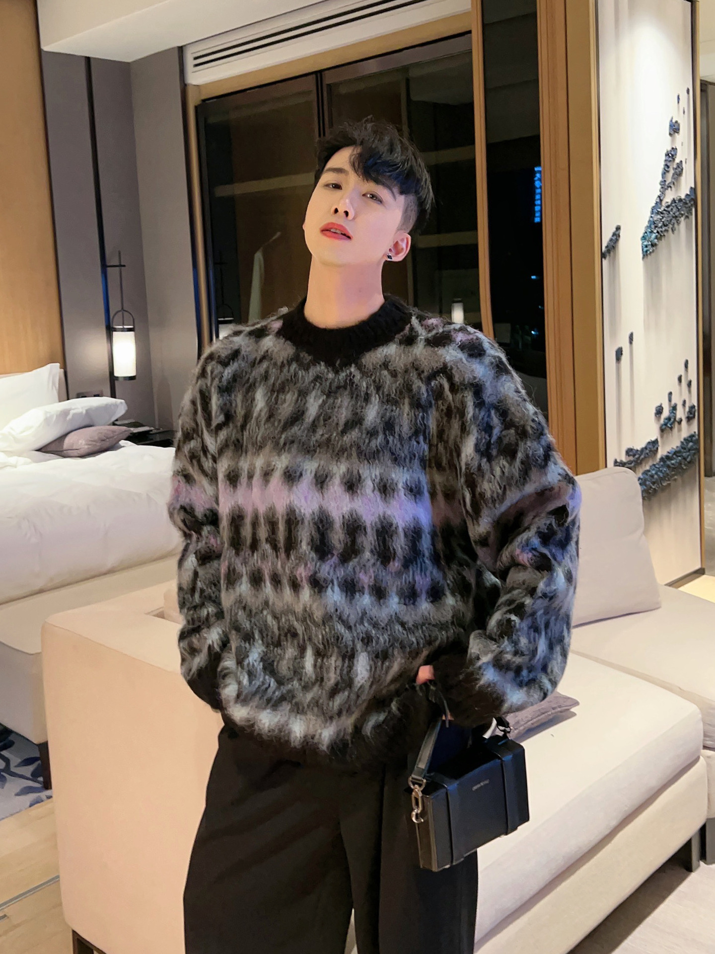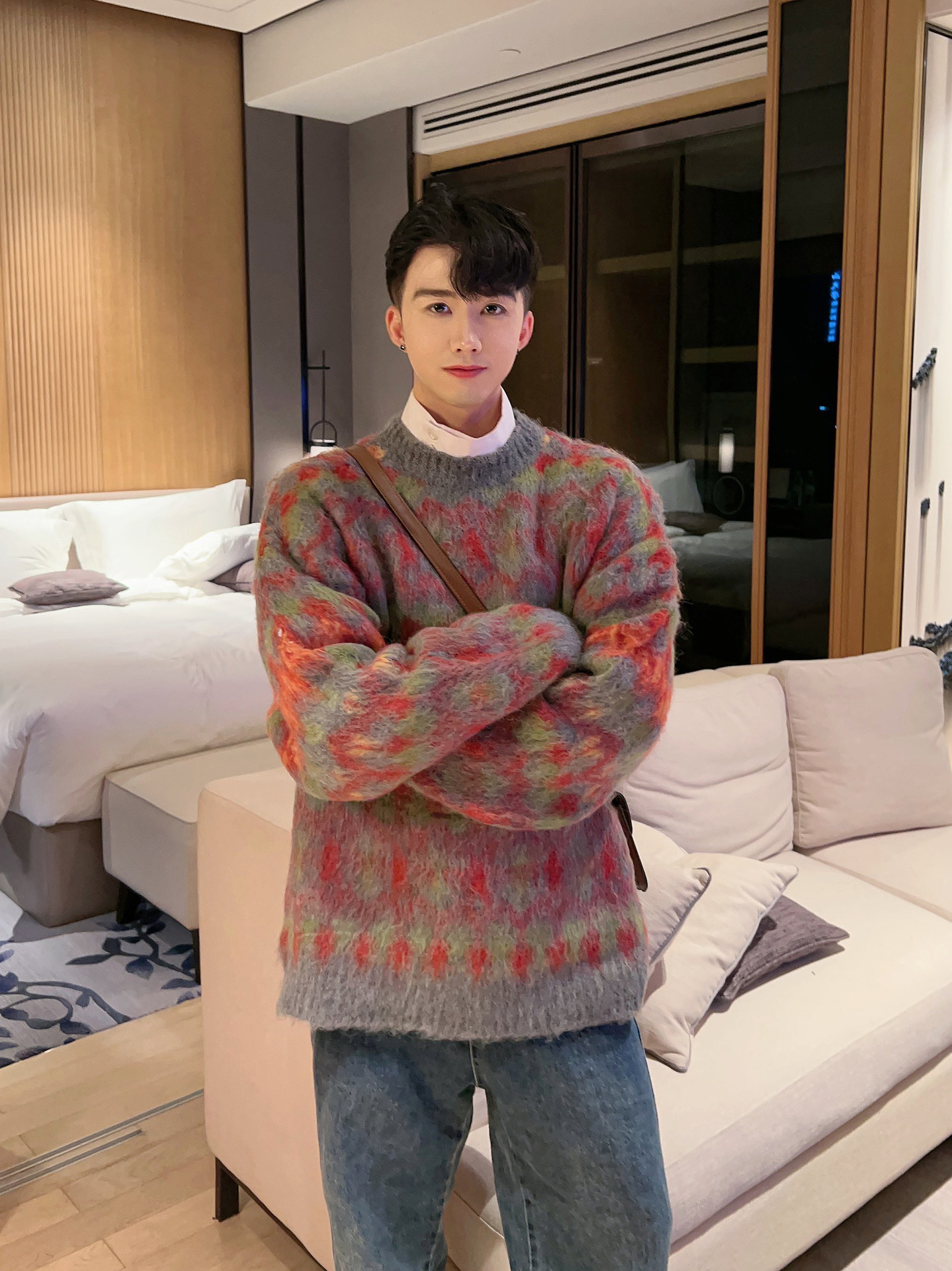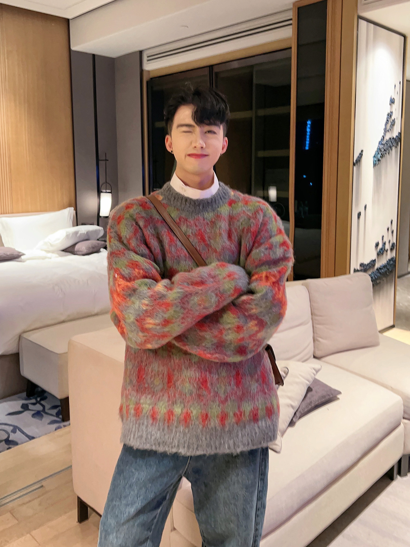 크리스마스 Ins 다채로운 니트 스웨터 남자의 겨울 새로운 게으른 스타일 틈새 느슨한 질감 풀오버 트렌디 스웨터