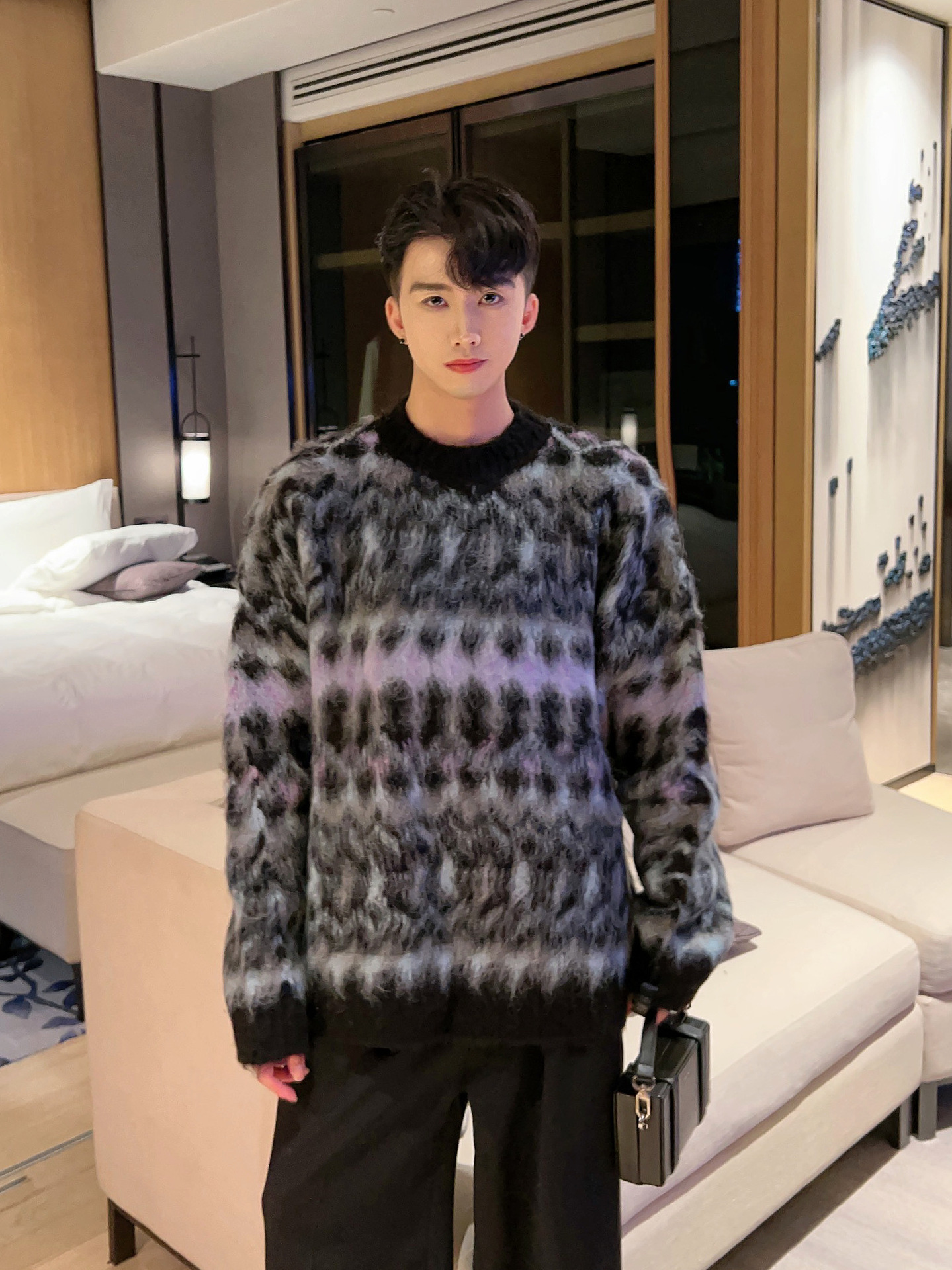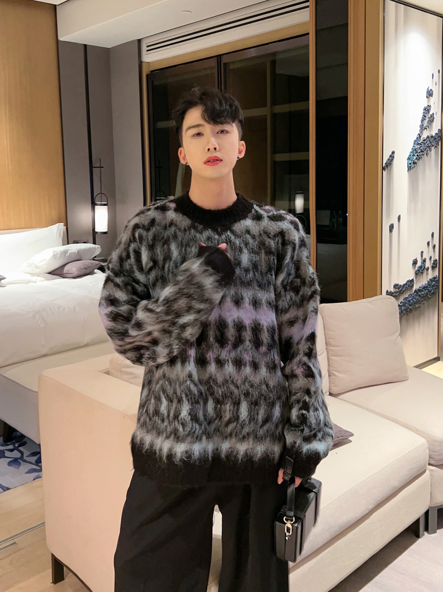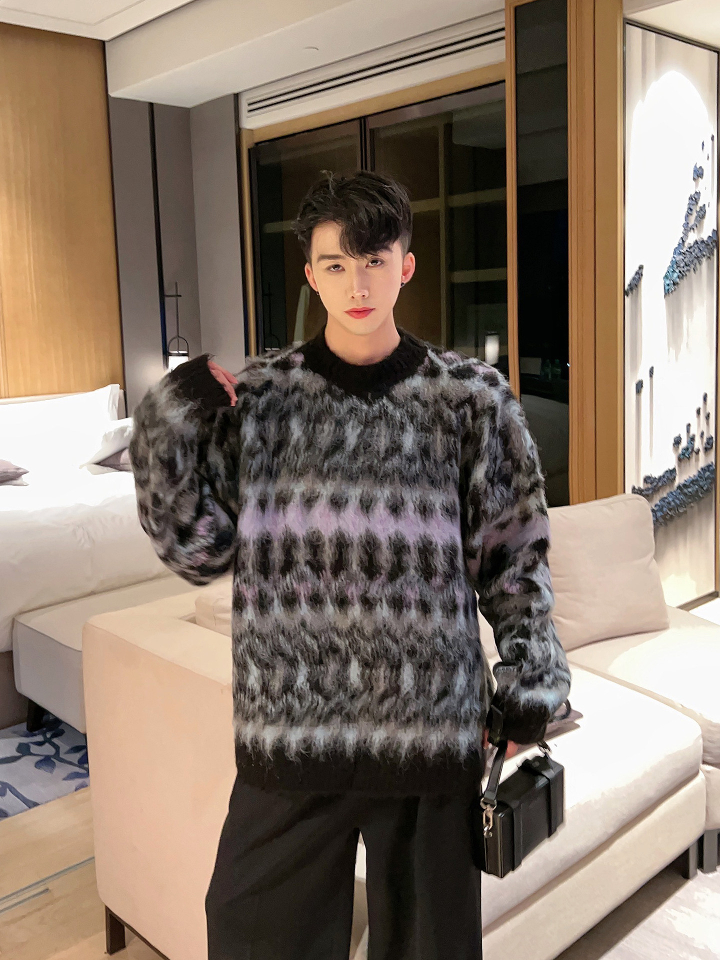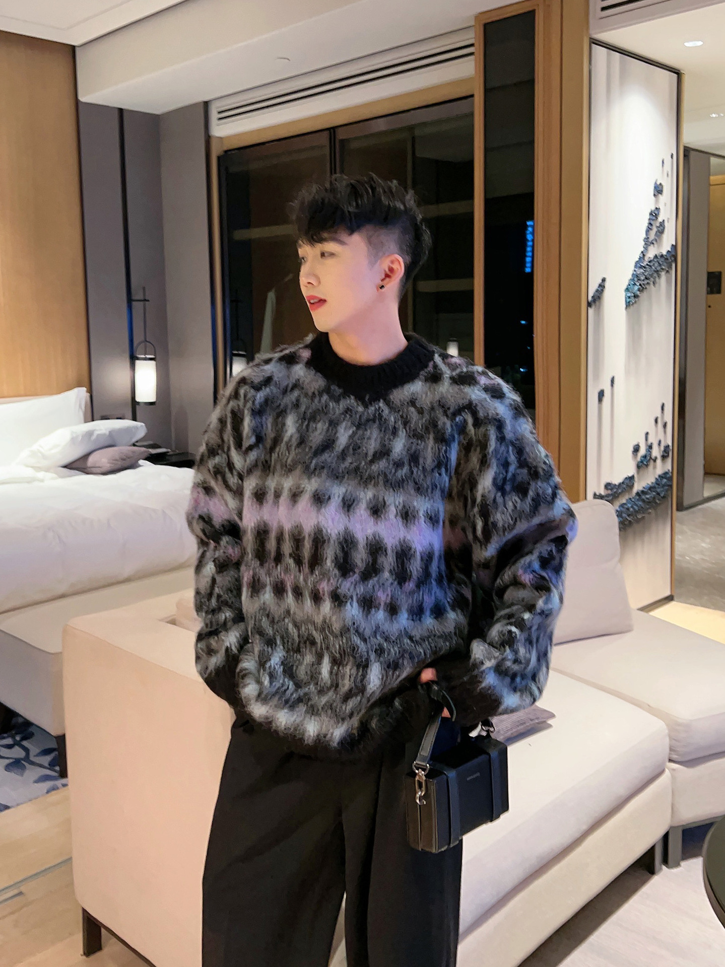 크리스마스 Ins 다채로운 니트 스웨터 남자의 겨울 새로운 게으른 스타일 틈새 느슨한 질감 풀오버 트렌디 스웨터