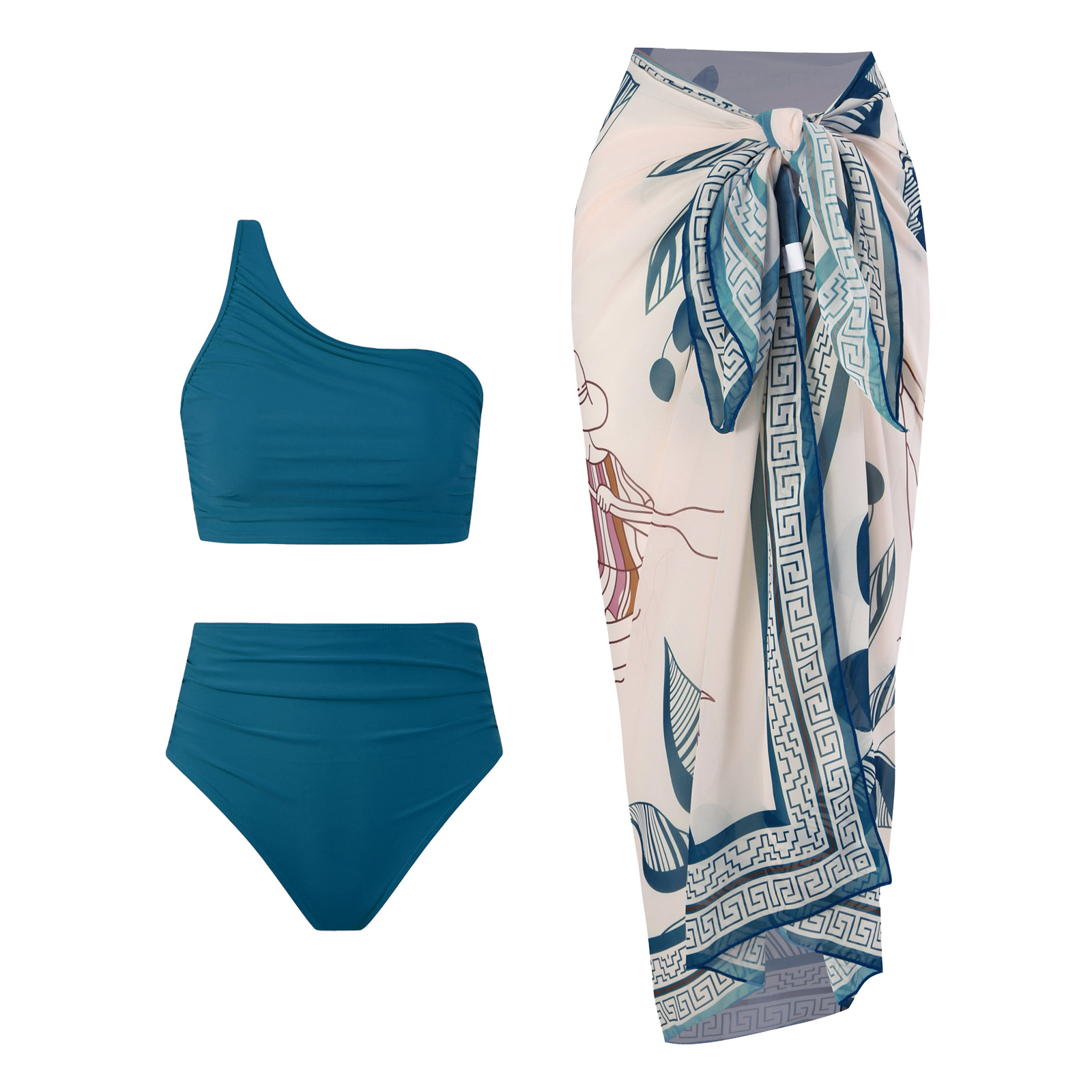 2024新款外贸聚拢比基尼性感高腰bikini分体泳衣套装批发雪纺长裙