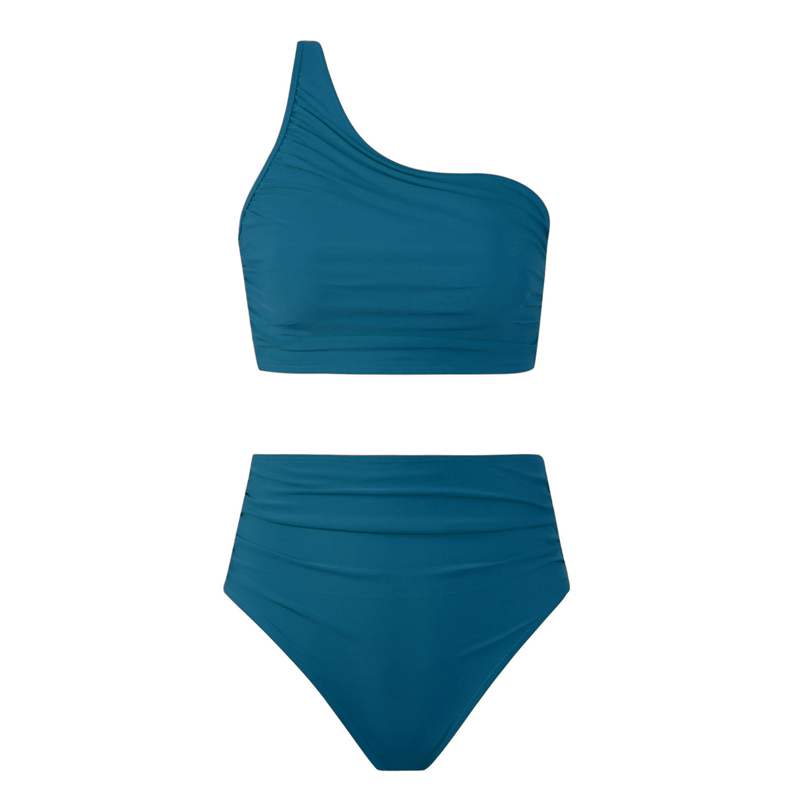 2025 유럽과 미국의 새로운 하이 웨이스트 솔리드 컬러 비키니 수영복 여성 아마존 핫 폭발 스플릿 수영복 비키니