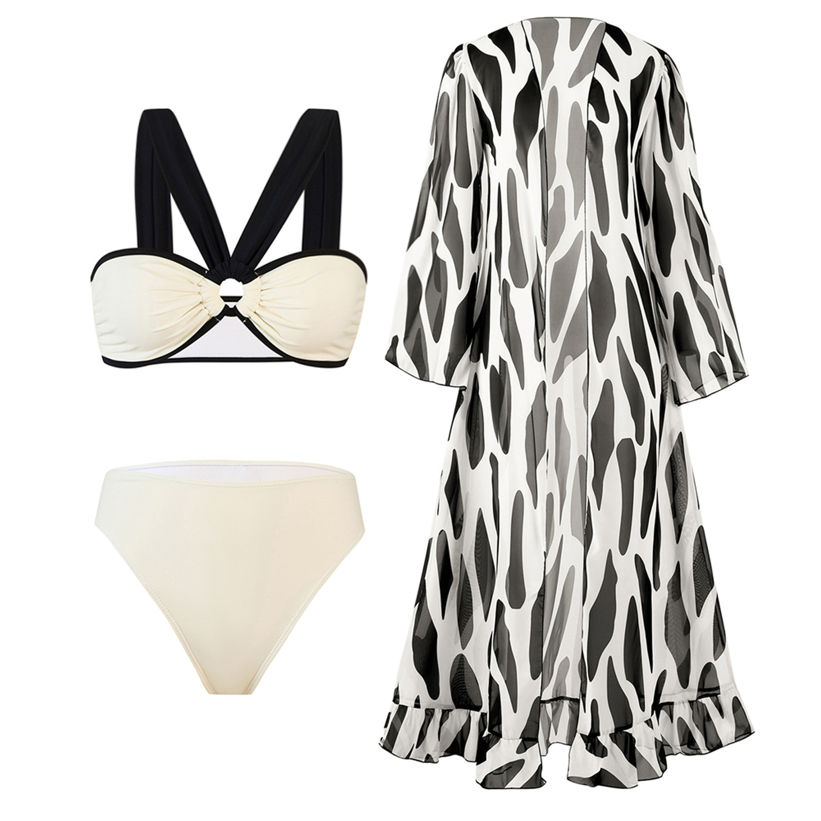 2025欧美新款分体泳衣女三件套比基尼时尚泳装套装爆款现货BIKINI