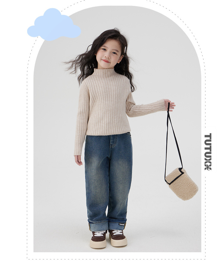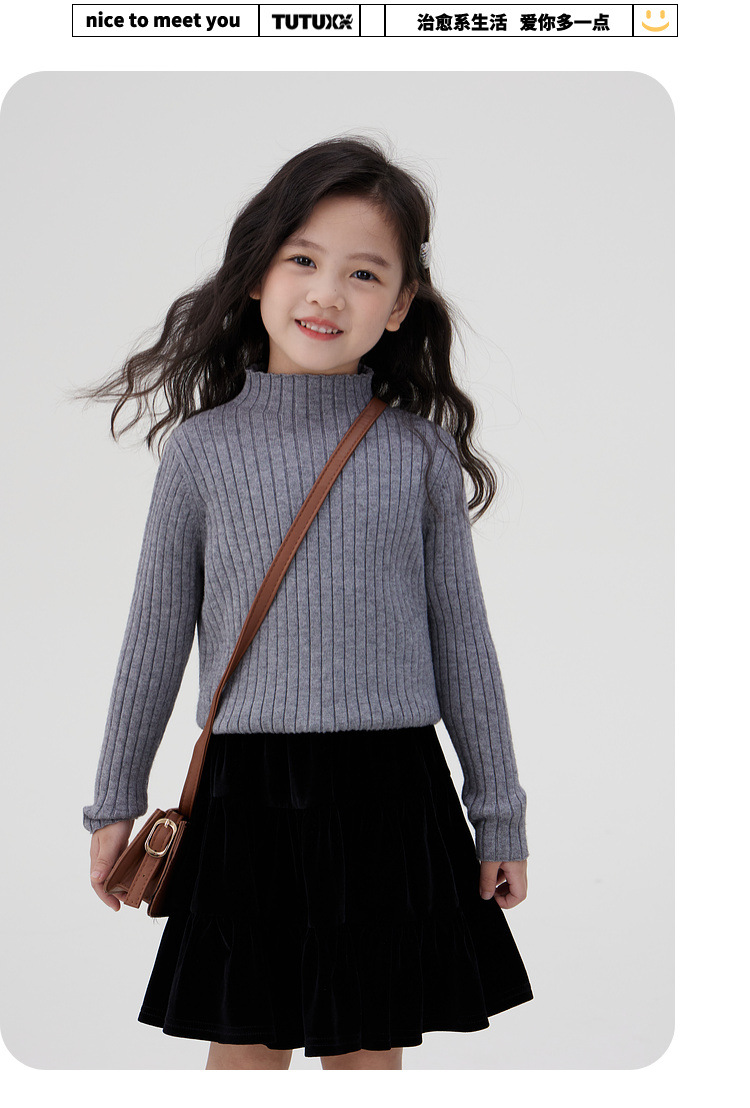 투투 아기 코끼리 소녀 스웨터 가을, 겨울 의류 2024 새로운 아동 의류 니트 Bottoming 셔츠 아동 따뜻한 긴팔 탑