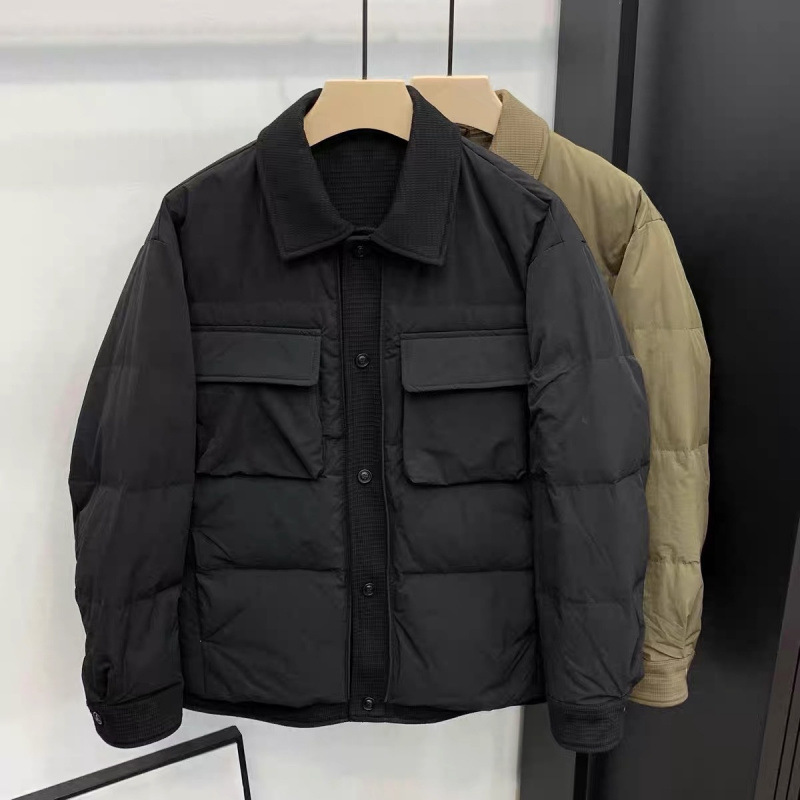 가볍고 얇은 다운 재킷 남자의 겨울 2024 새로운 스티칭 옷깃 툴링 두꺼운 겨울 코트 남성 코트 조수 기타스토어 가기