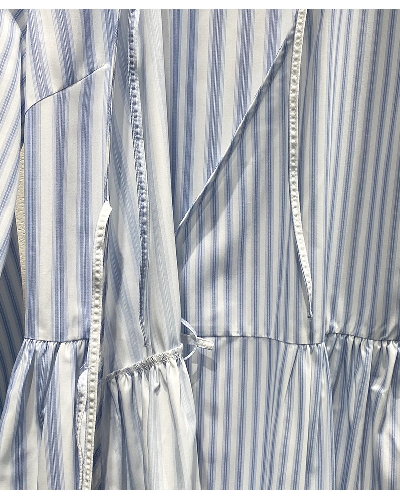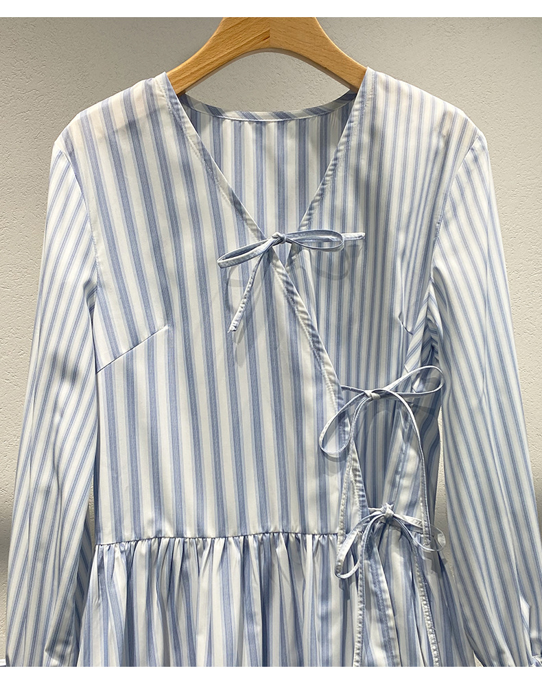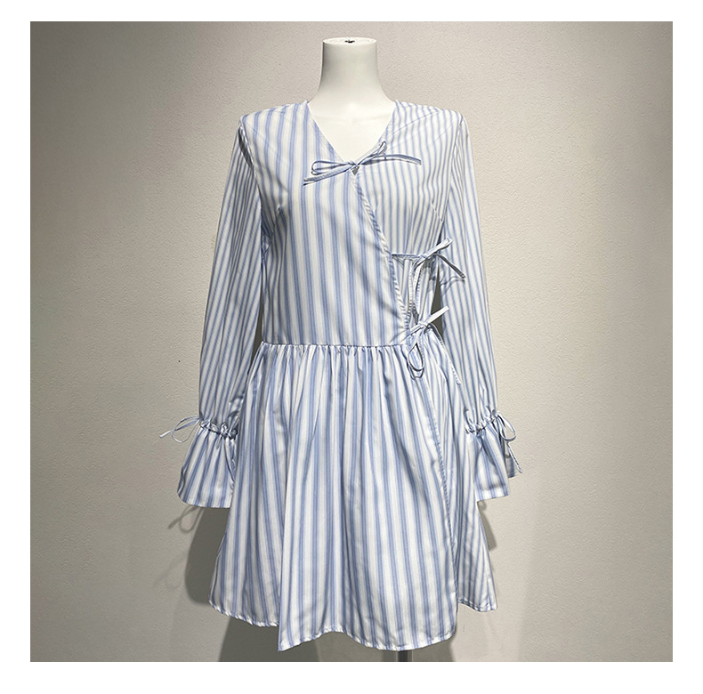 Xiaozhong 2024 가을 새로운 단색 줄무늬 레이스 업 느슨한 긴 소매 원피스 여성스토어 가기