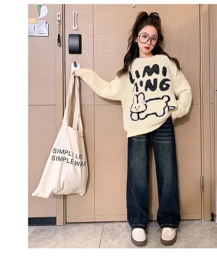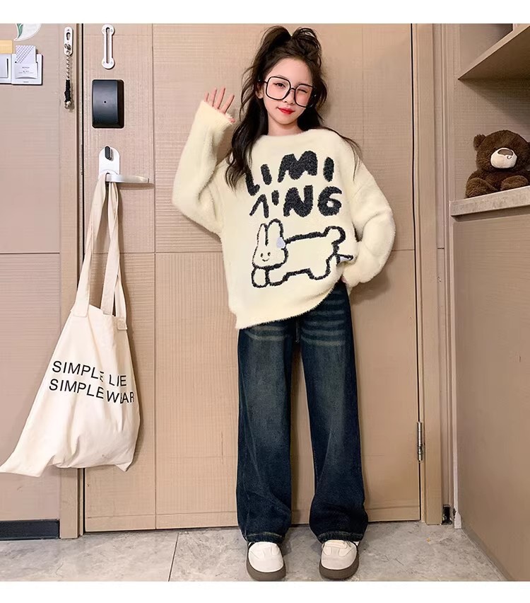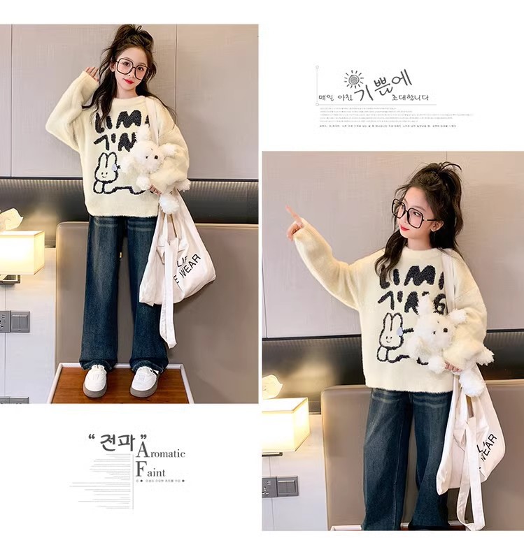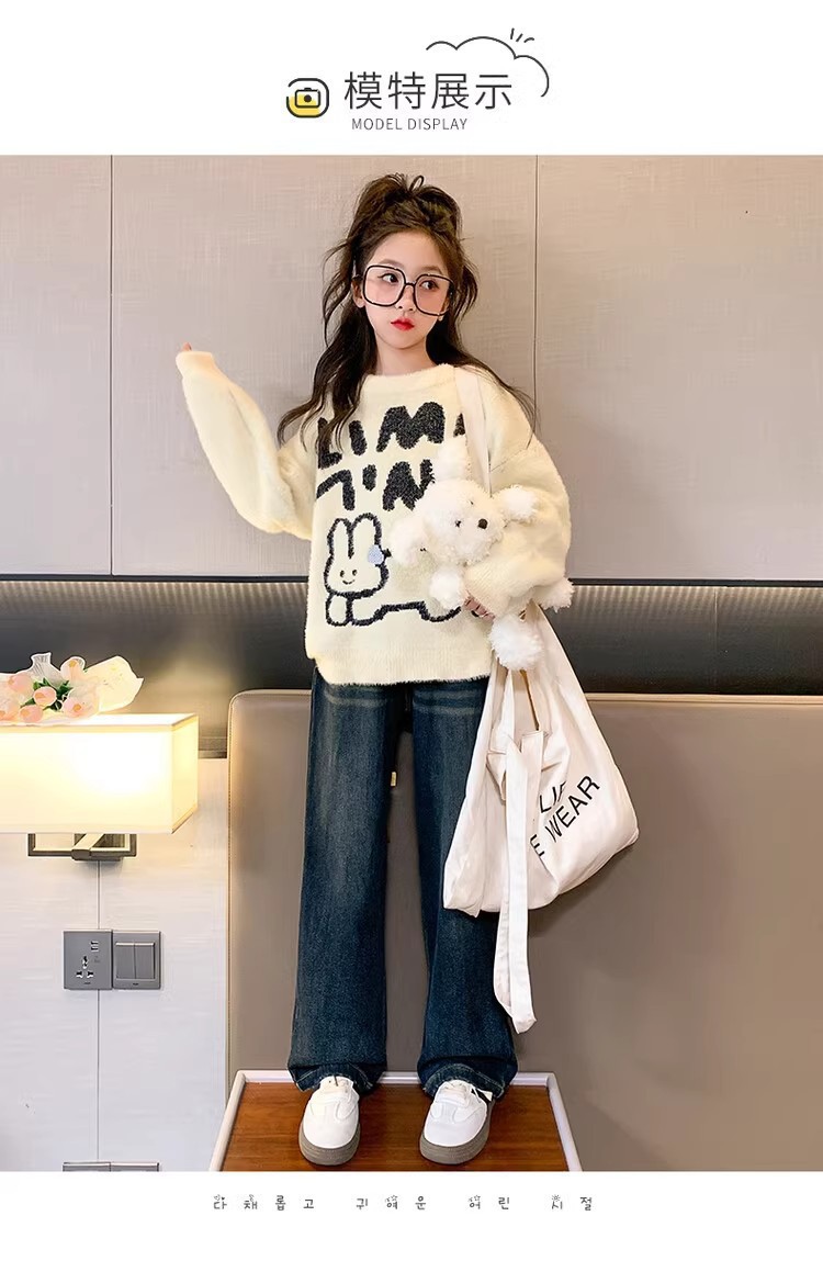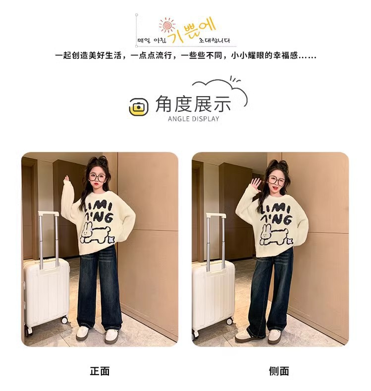 여자 기모 스웨터 2024 가을/겨울 새로운 어린이 겨울베이스 셔츠 큰 아동복 소녀 겨울 두꺼운 탑스토어 가기
