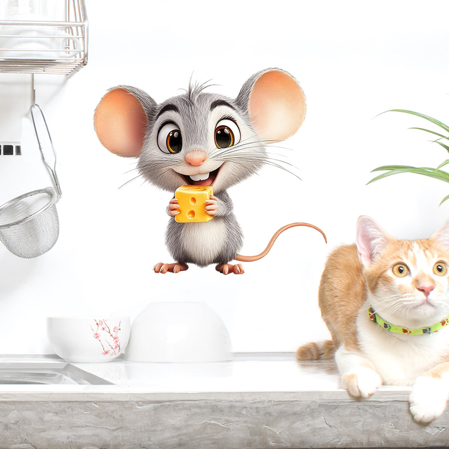 만화 귀여운 치즈 마우스 자체 접착 벽 스티커 주방 냉장고 스티커 레스토랑 룸 장식 스티커 ZN3180C