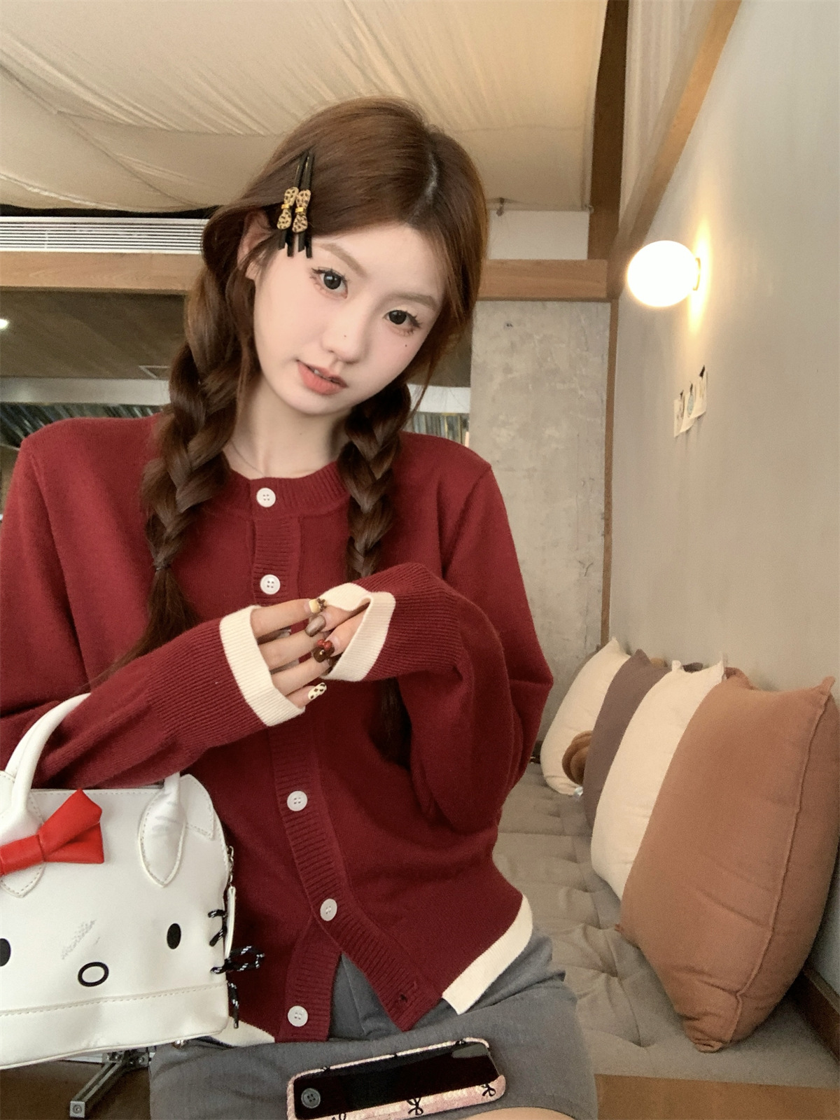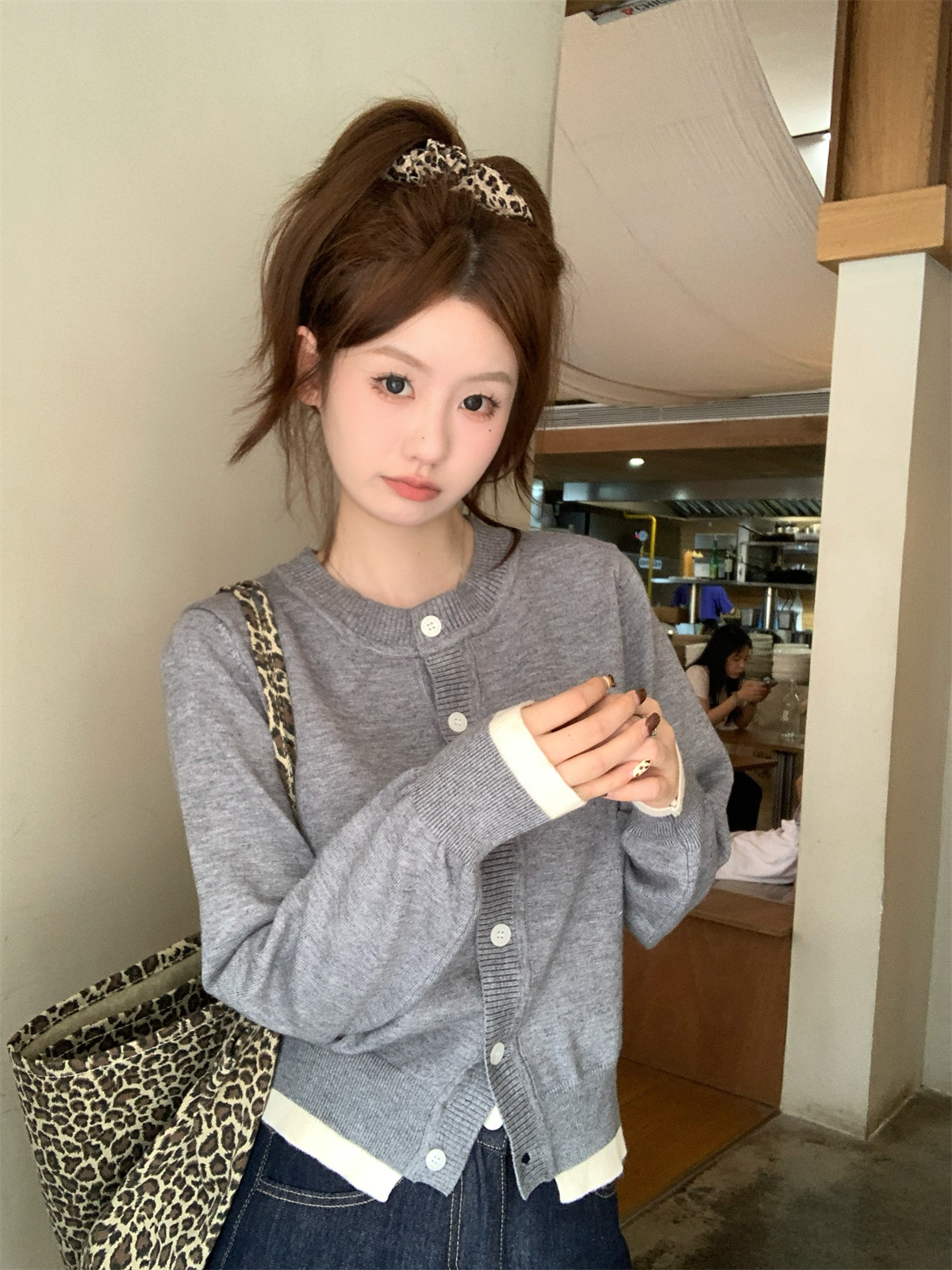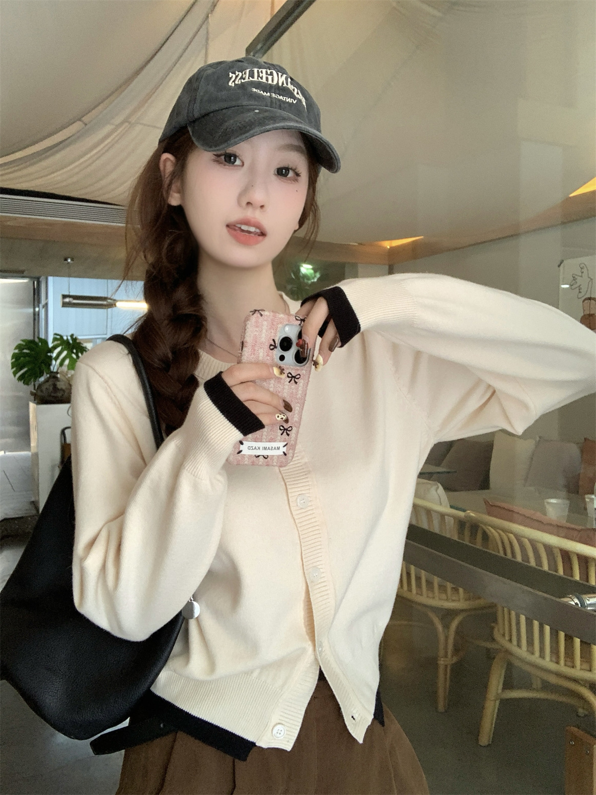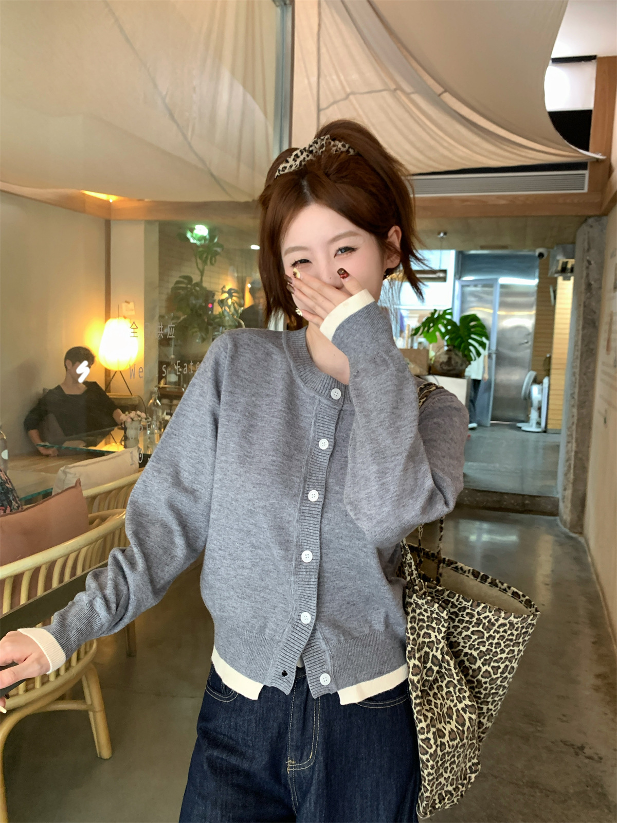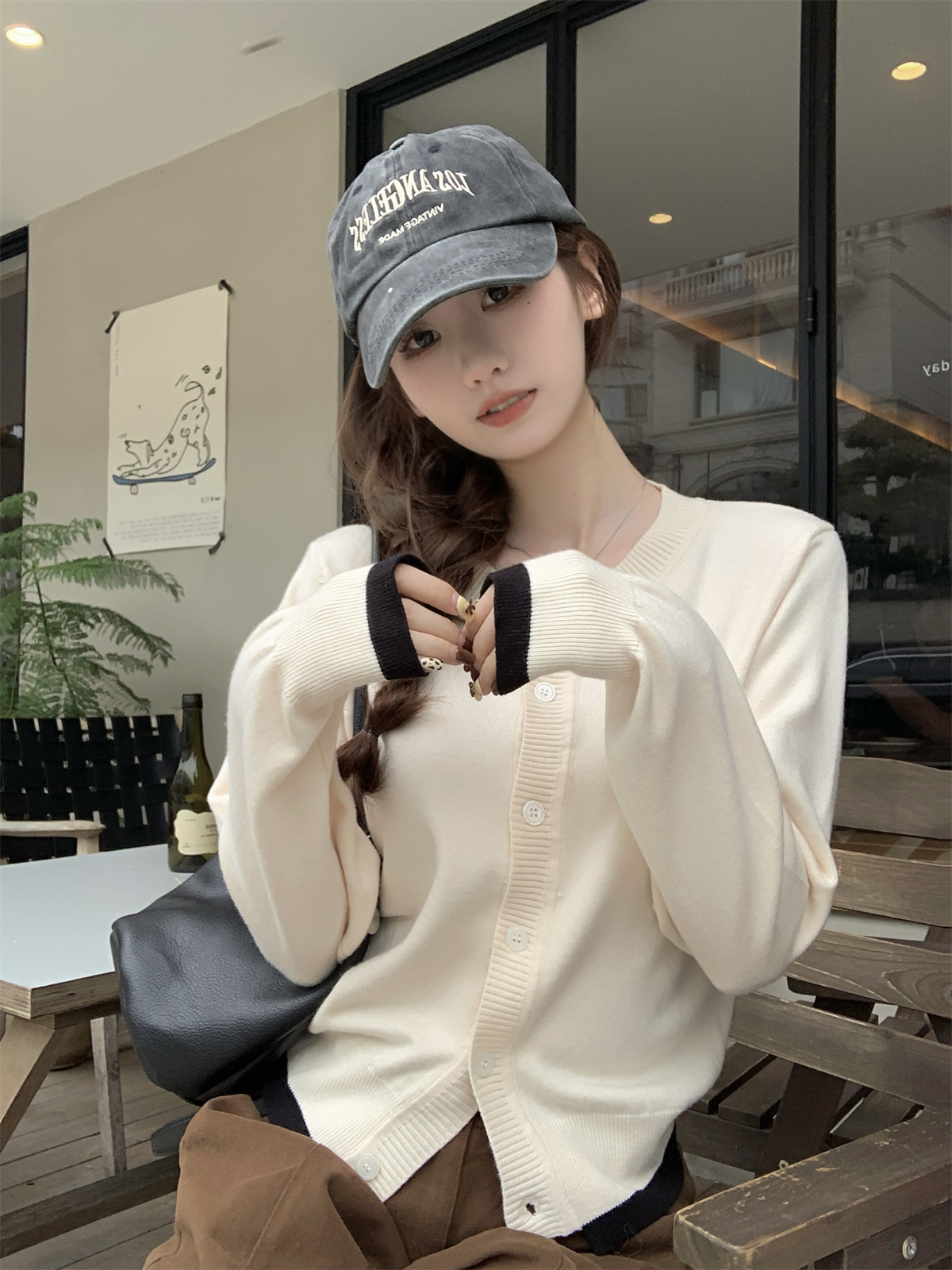 가을과 겨울 한국의 기질 디자인 컬러 싱글 브레스트 스웨터 카디건 여성 스웨터 긴팔 코트 재킷 도매스토어 가기