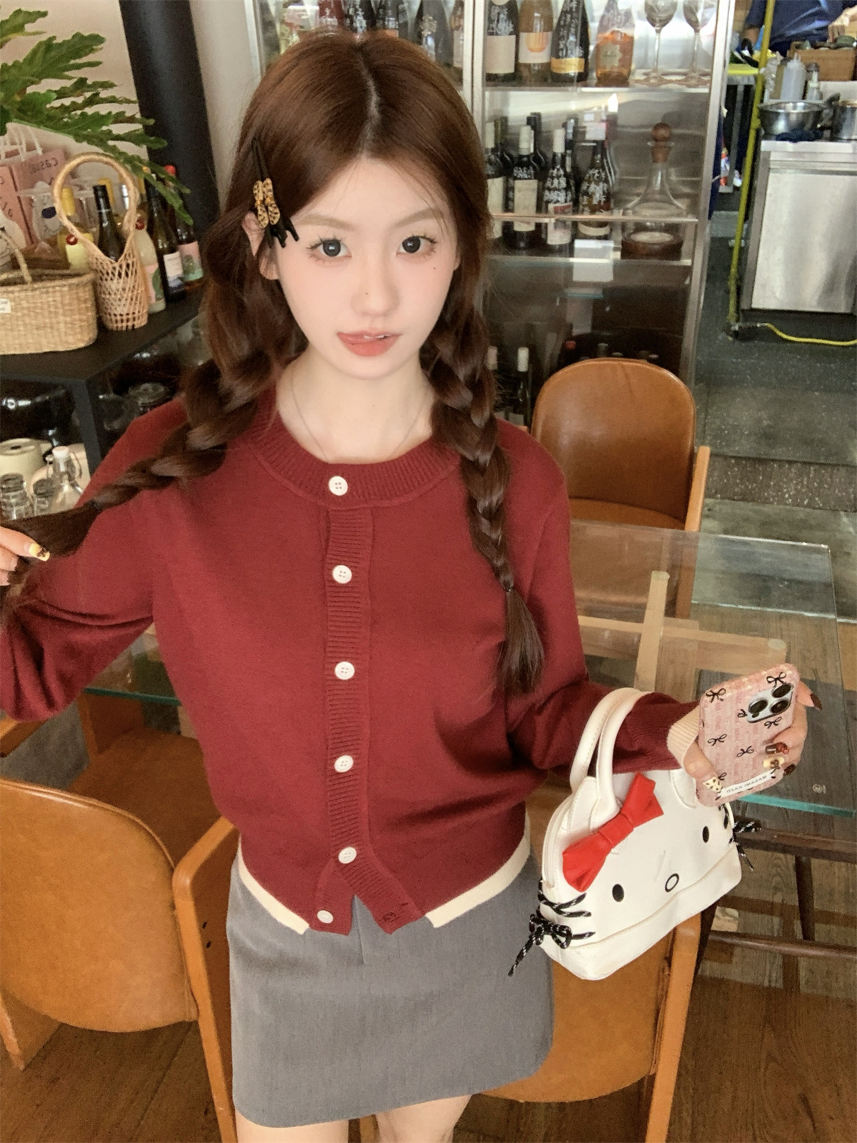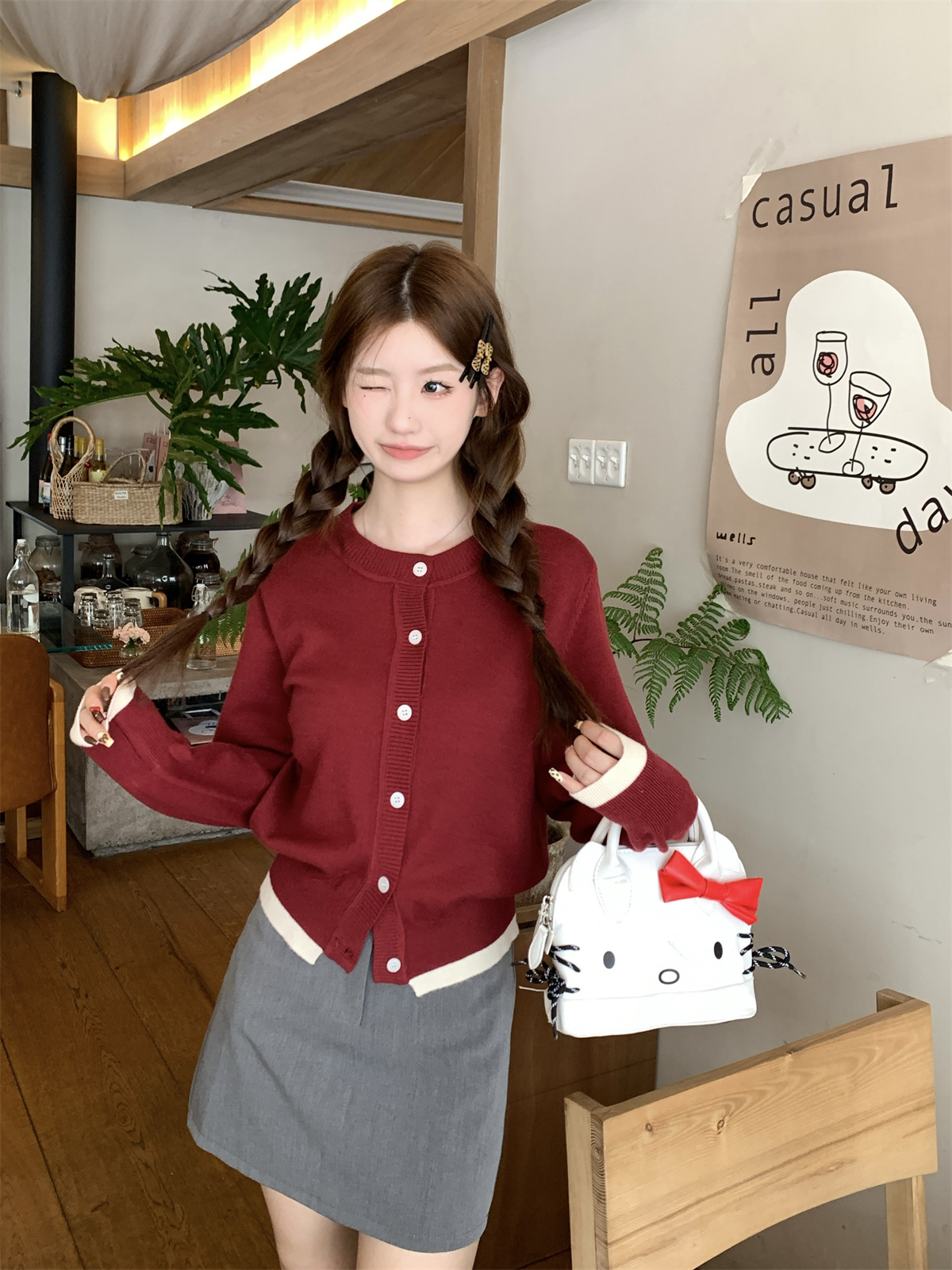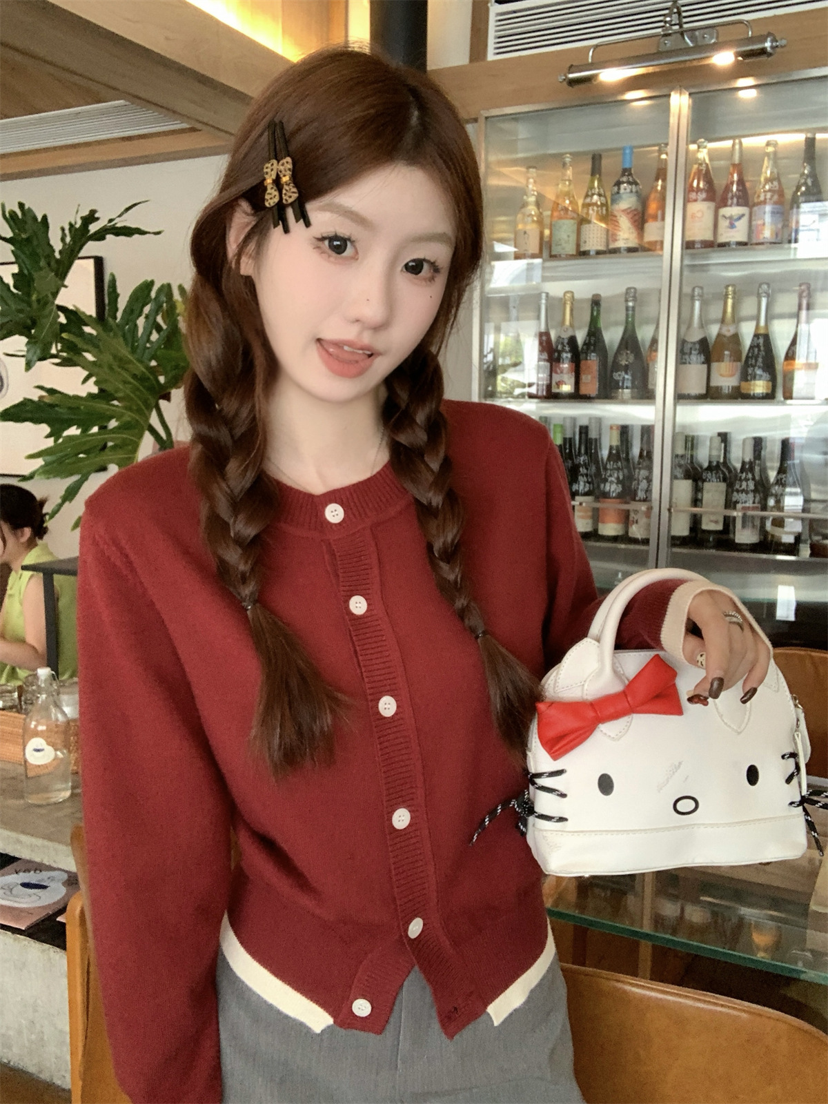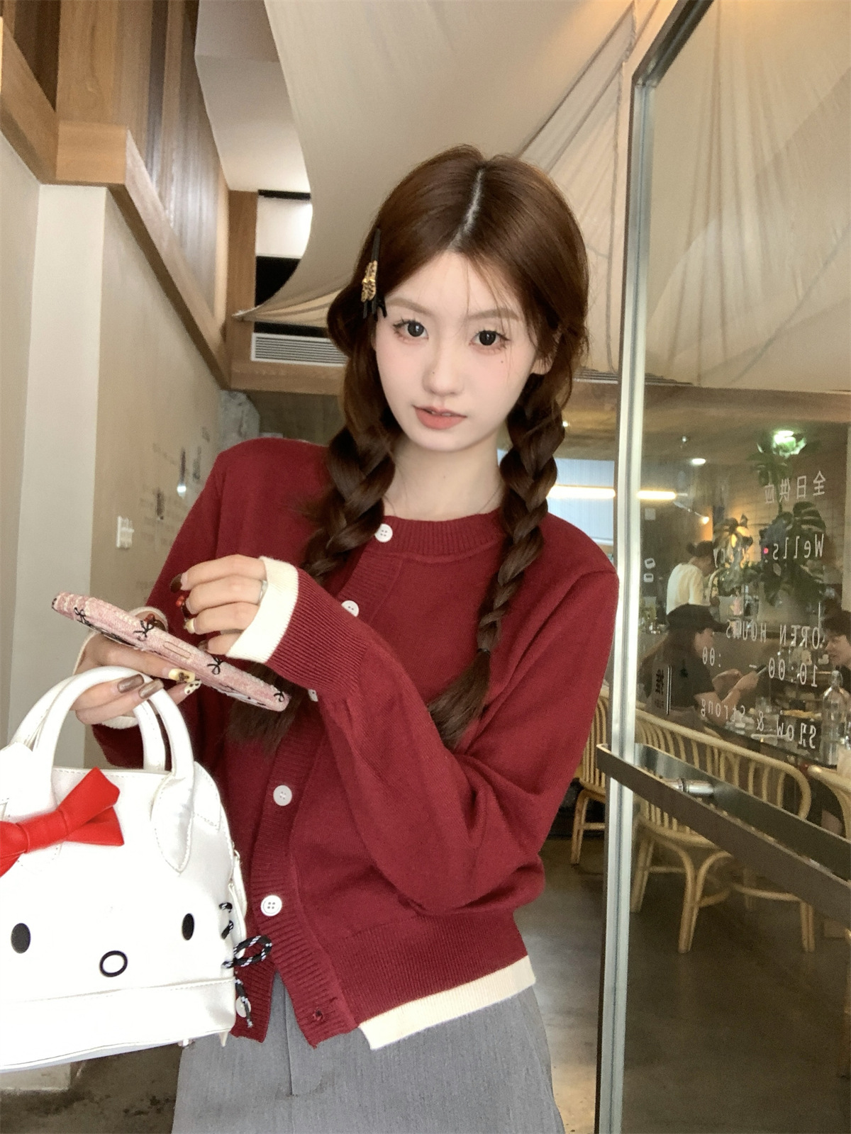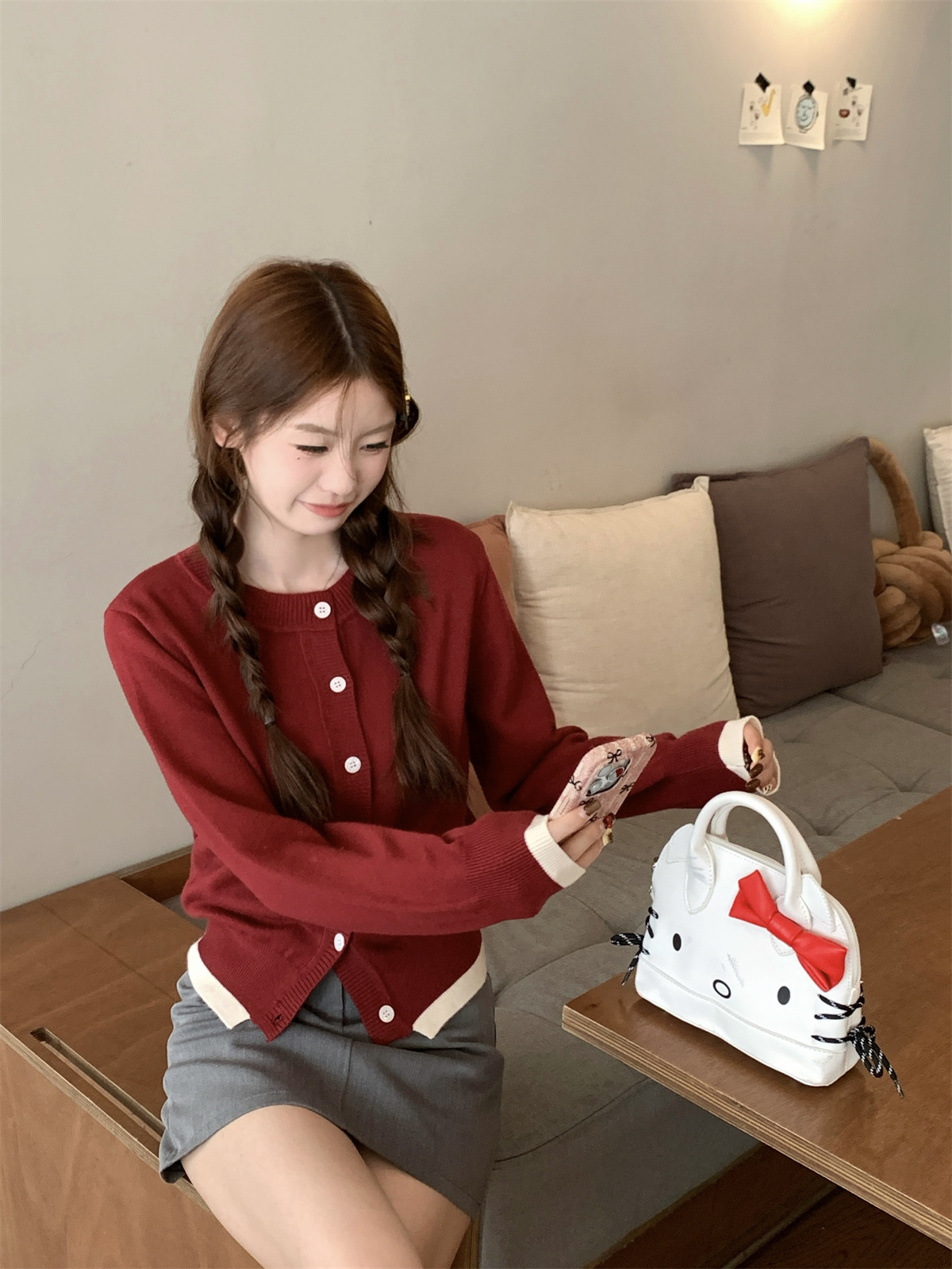 가을과 겨울 한국의 기질 디자인 컬러 싱글 브레스트 스웨터 카디건 여성 스웨터 긴팔 코트 재킷 도매스토어 가기
