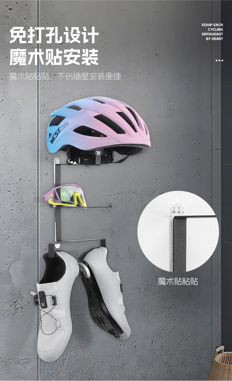서쪽 라이더 자전거 장비 저장 랙 승마 벽 교수형 디스플레이 랙 교수형 랙 헬멧 장비 디스플레이 랙스토어 가기