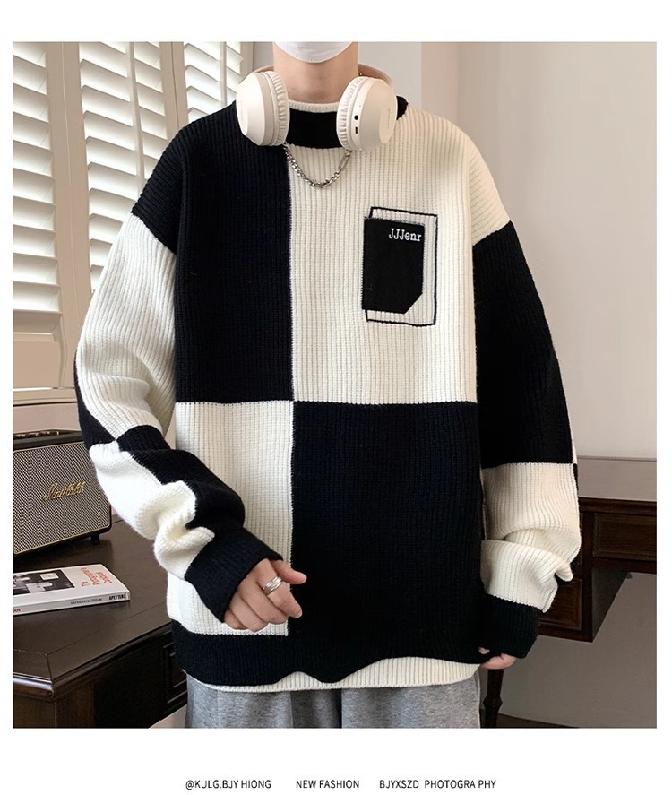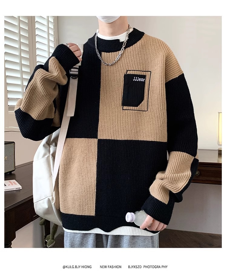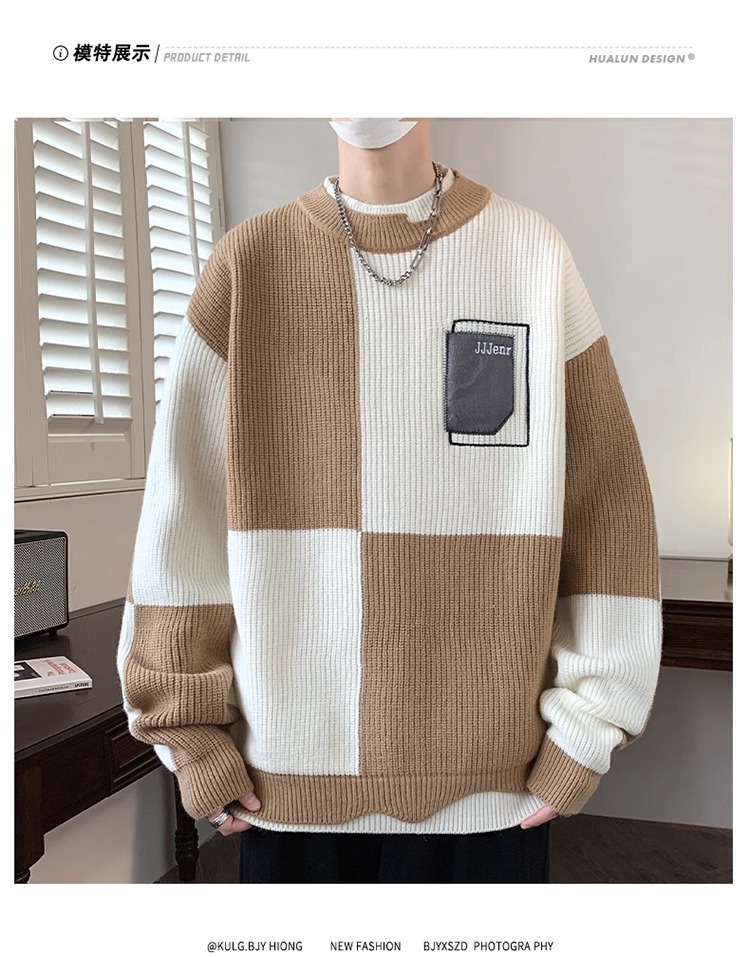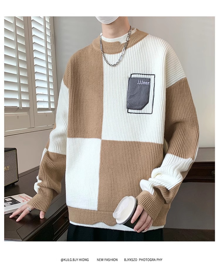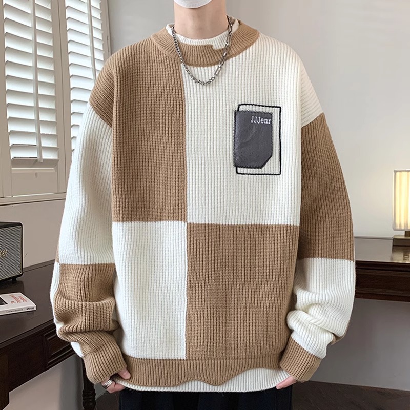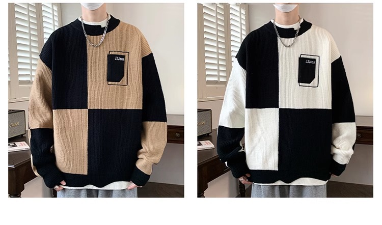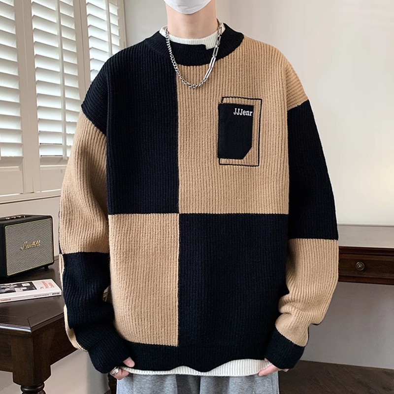NASA 가짜 투피스 스웨터 남성 가을과 겨울 2024 기모 따뜻한 스웨터 조수 브랜드 대비 컬러 디자인 스웨터스토어 가기