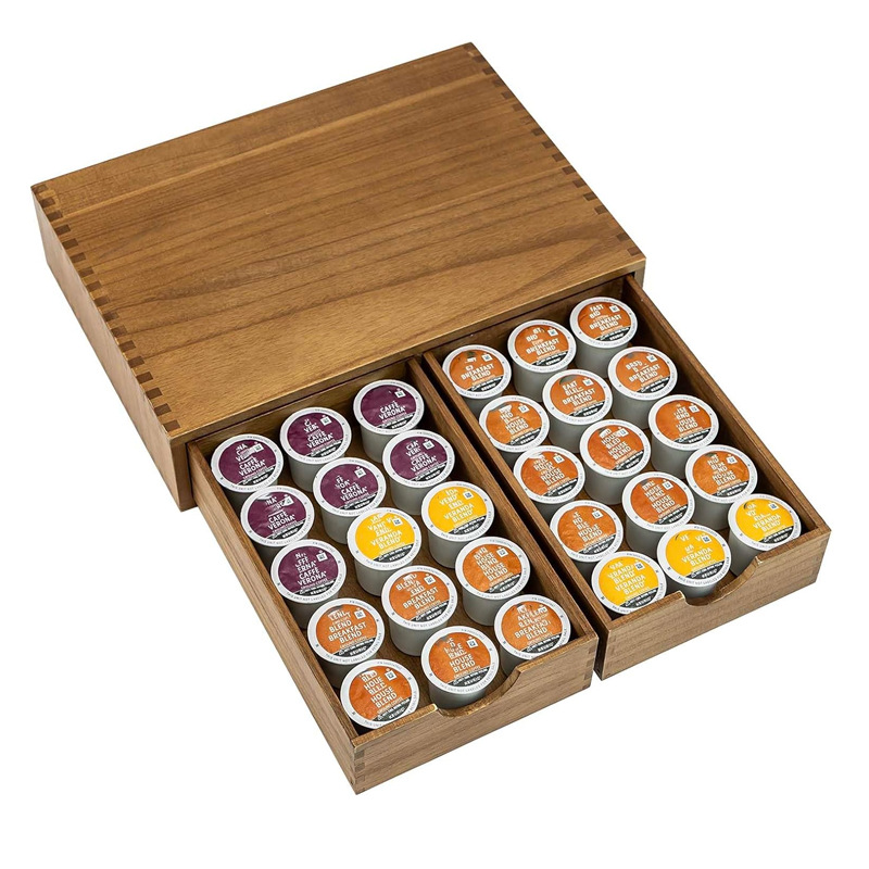 원목 커피 캡슐 서랍형 수납함, 커피 머신 받침대, 가정용 칸막이 티백 수납함스토어 가기