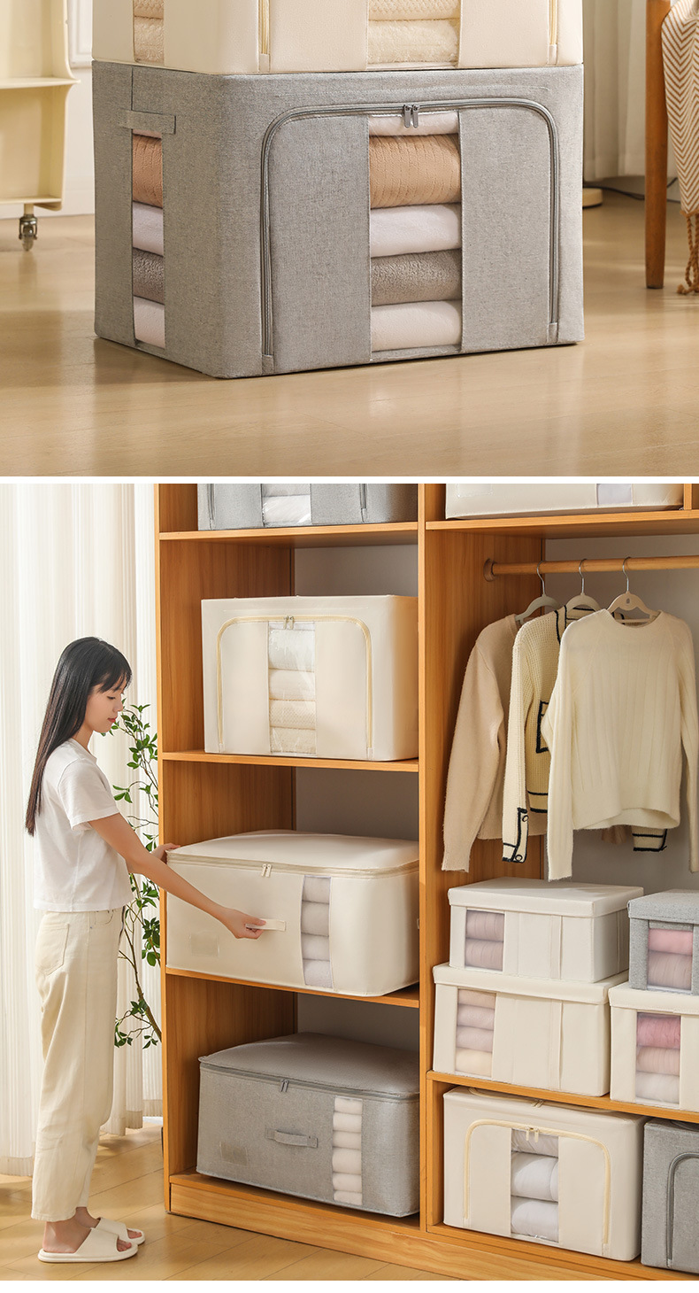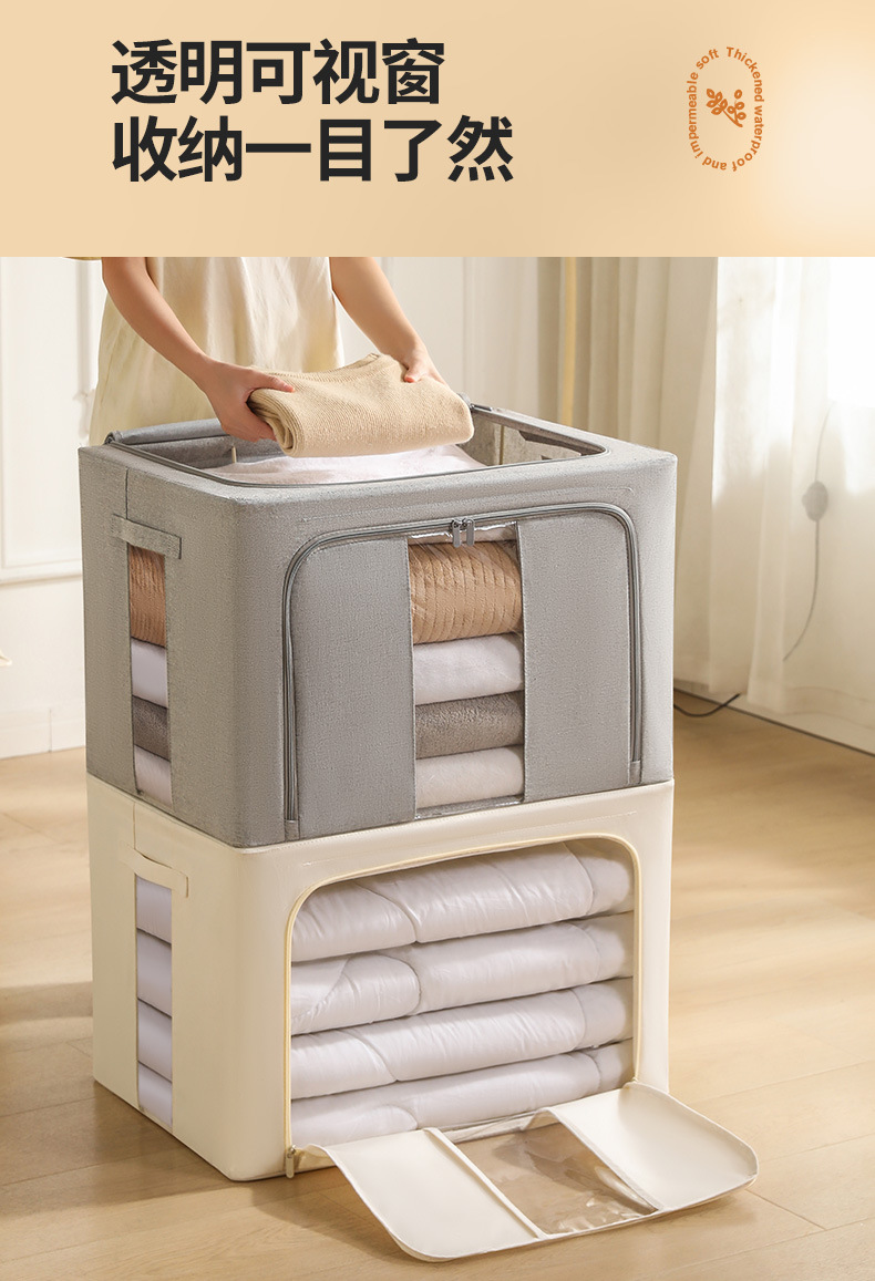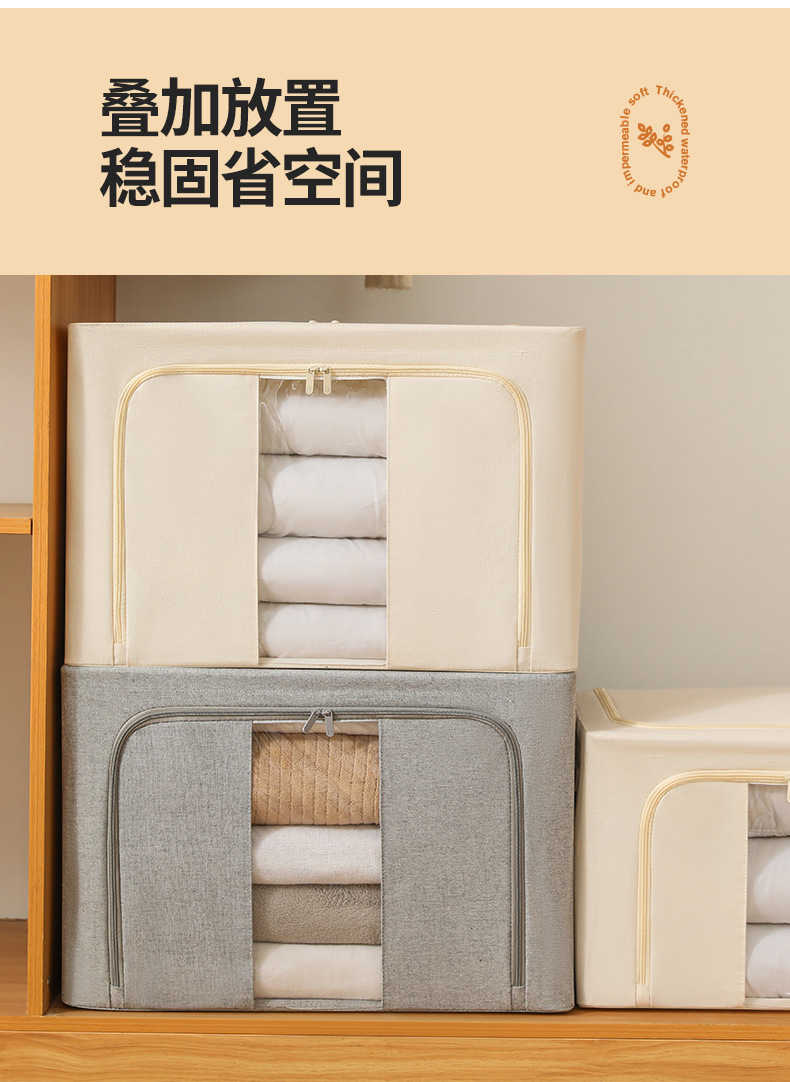 작은 점 고급 면화 및 린넨 저장 상자 대형 세척 가능한 가정용 옷 퀼트 마무리 접이식 강철 프레임 보관 상자