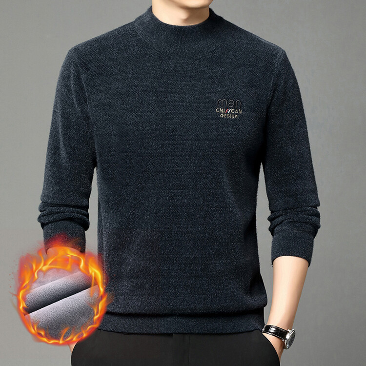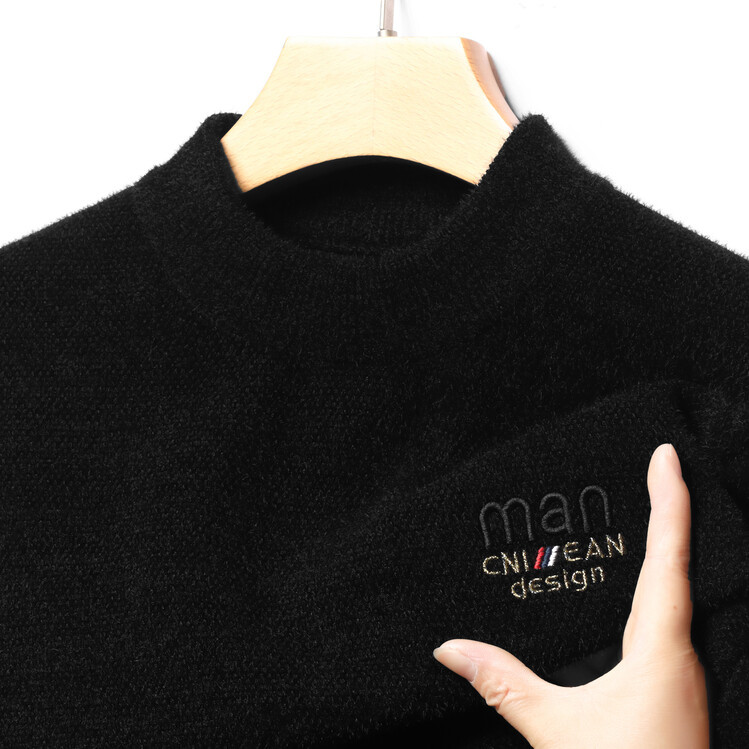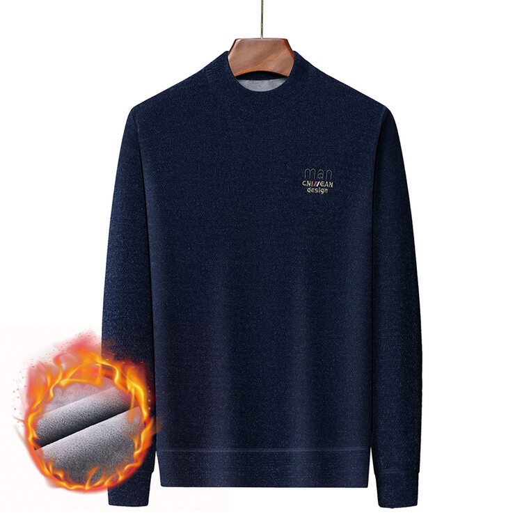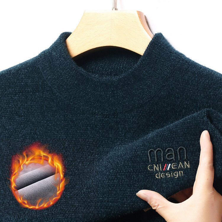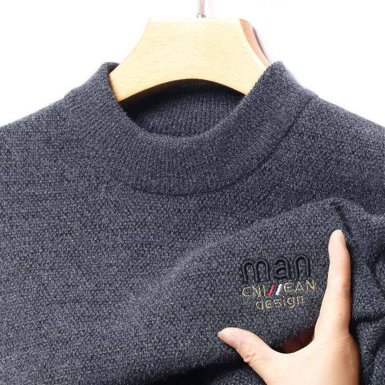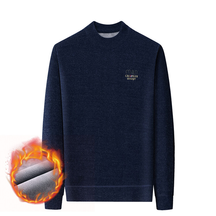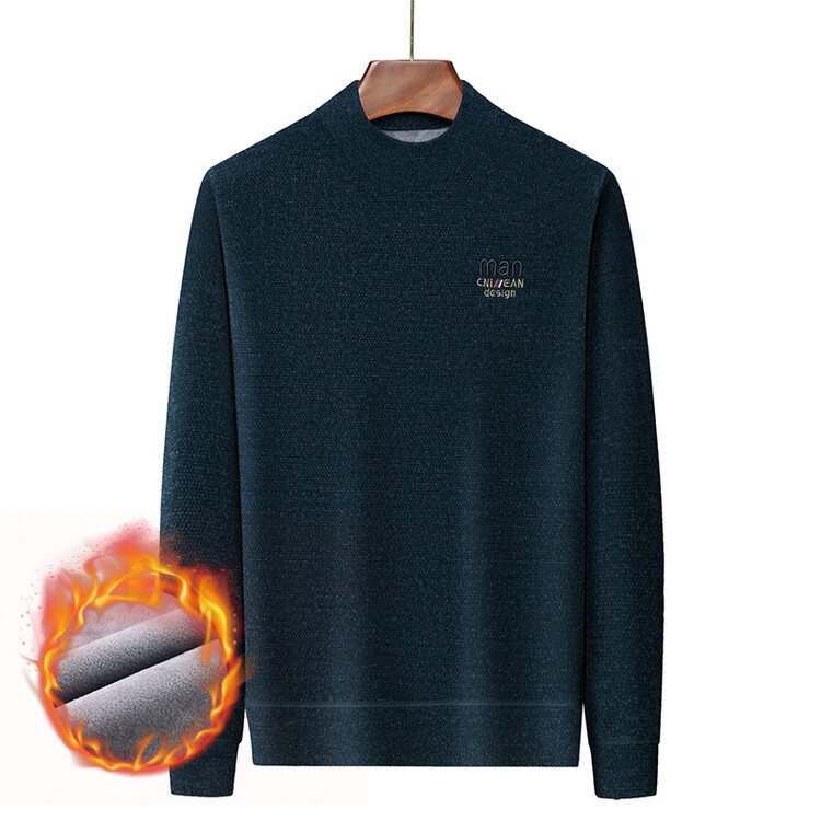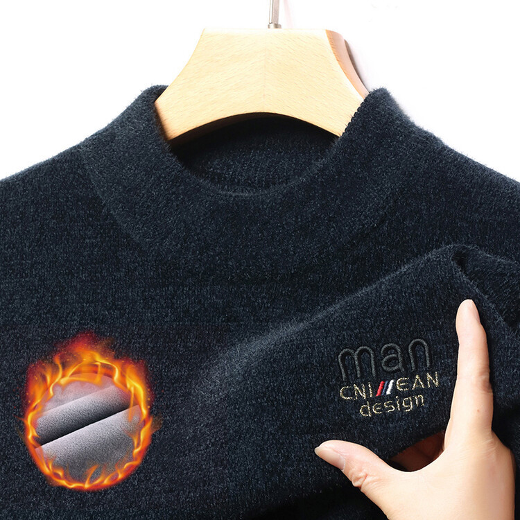 2024 겨울 새로운 남성 젊은 및 중년 크루 넥 페렛 벨벳 패션 캐주얼 스웨터 따뜻한 스웨터