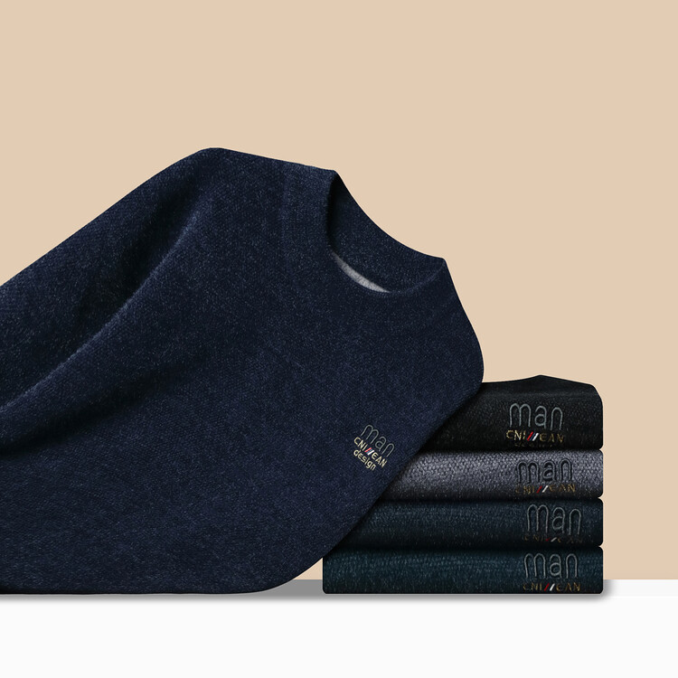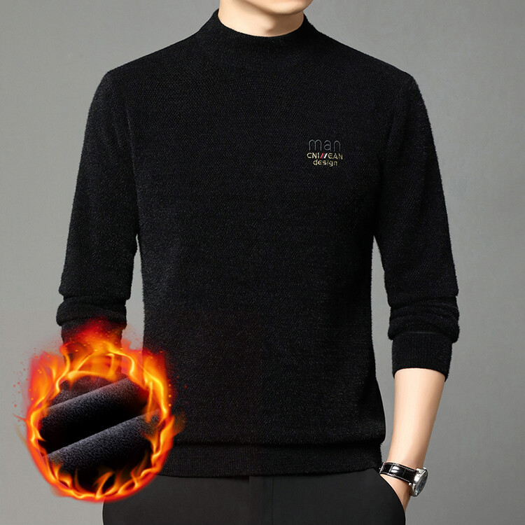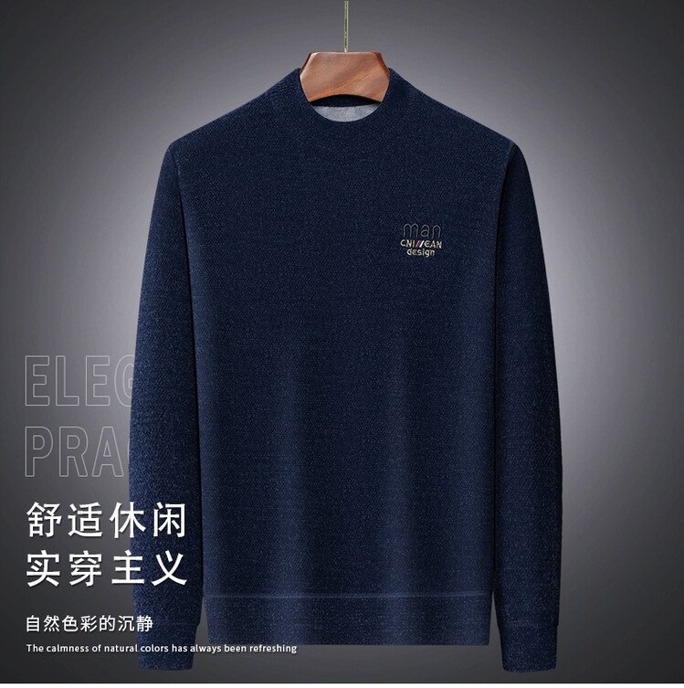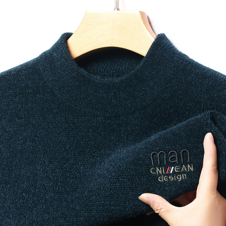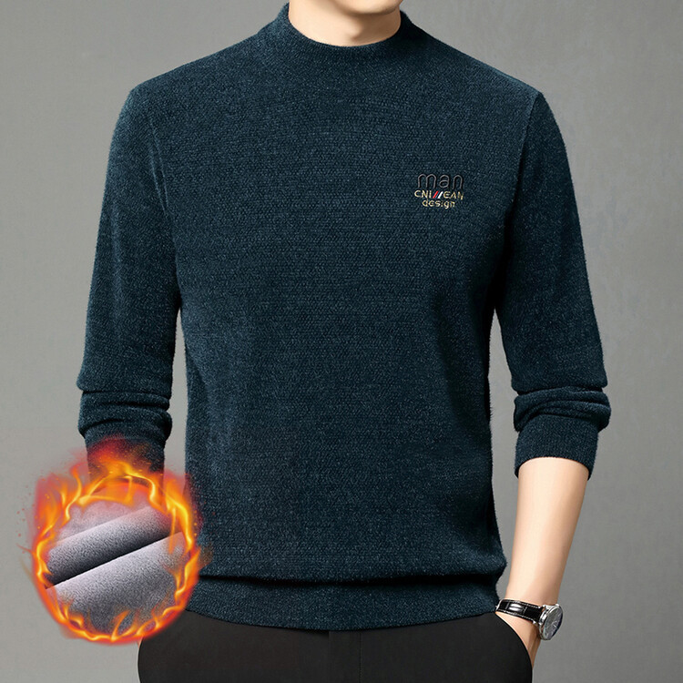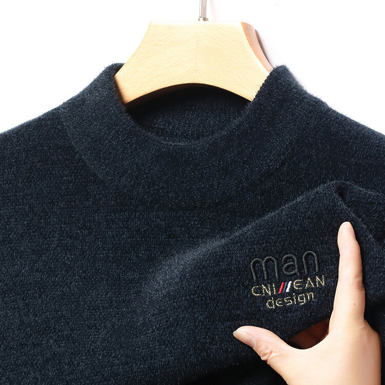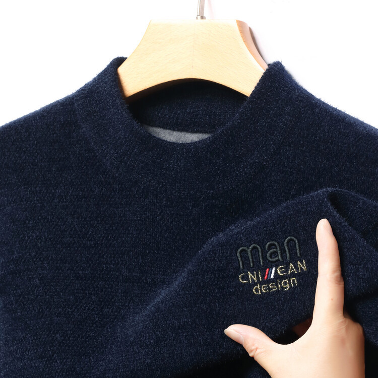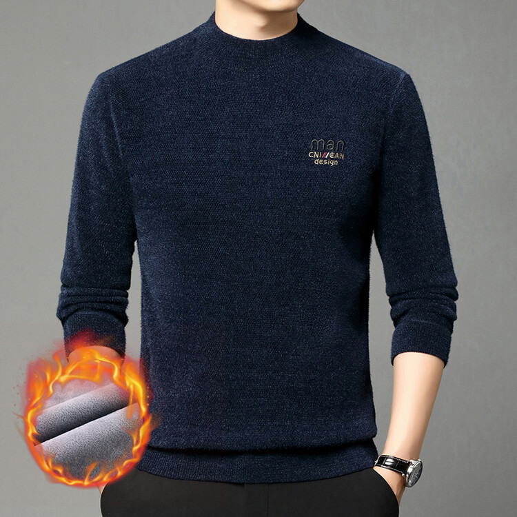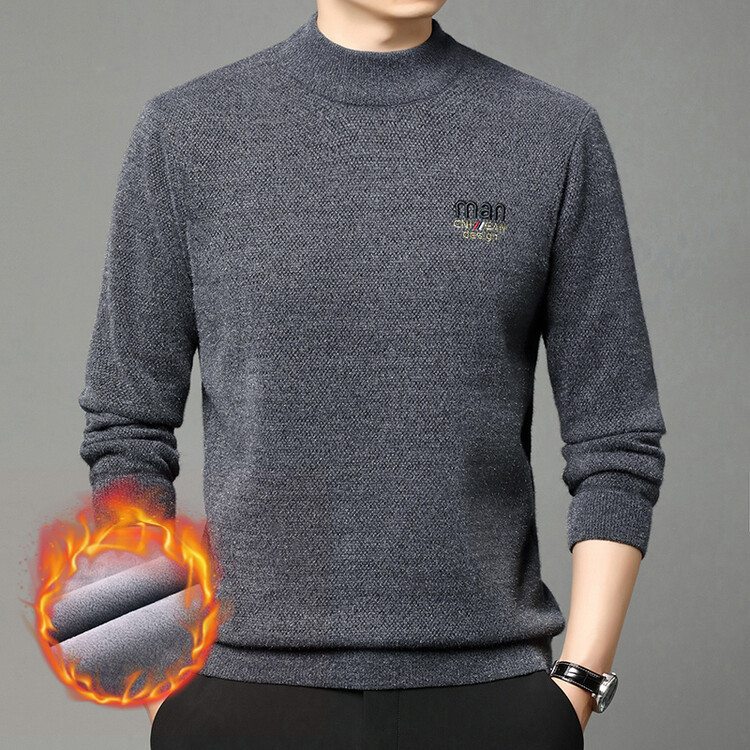2024 겨울 새로운 남성 젊은 및 중년 크루 넥 페렛 벨벳 패션 캐주얼 스웨터 따뜻한 스웨터