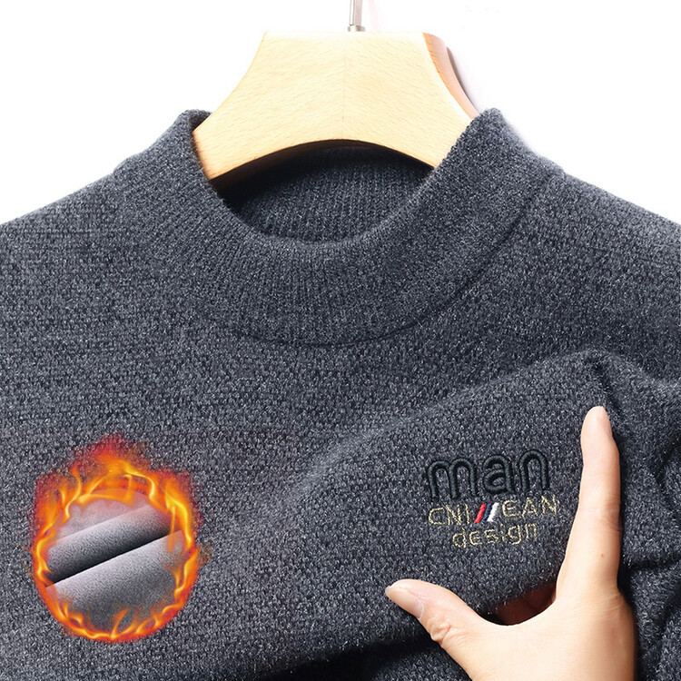 2024 겨울 새로운 남성 젊은 및 중년 크루 넥 페렛 벨벳 패션 캐주얼 스웨터 따뜻한 스웨터스토어 가기
