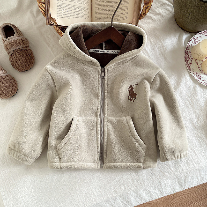 가을과 겨울 남학생과 아이들의 재킷 바지 라이스 화이트 기모 후드 지퍼 스웨터 따뜻한 세트 착용스토어 가기