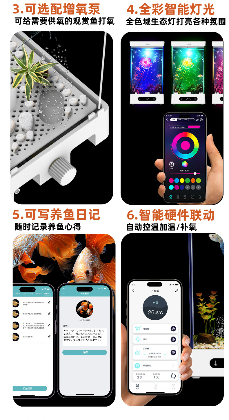 블루투스 버전 betta 물고기 특수 탱크 작은 물고기 탱크 생태 자체 순환 책상 창조적 인 조경 난방 조명스토어 가기