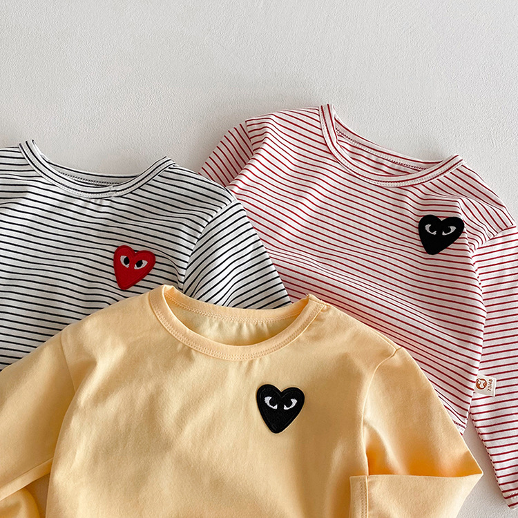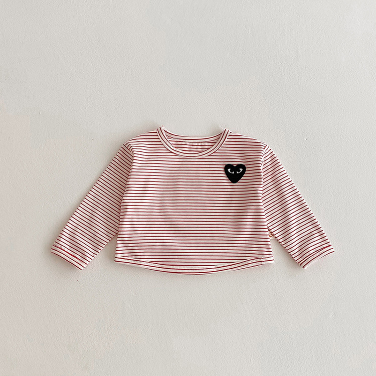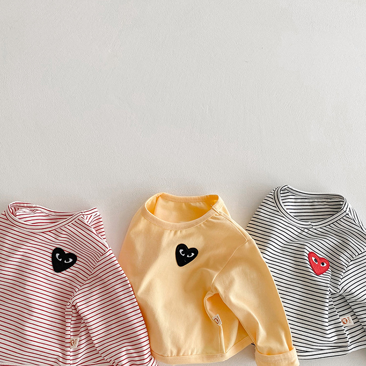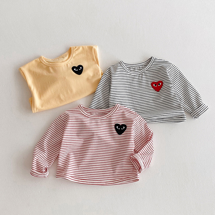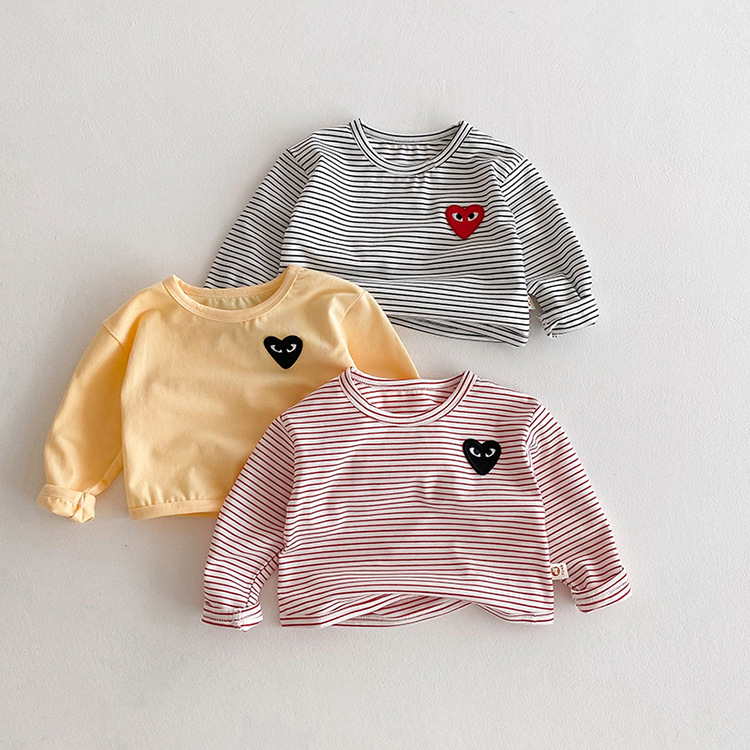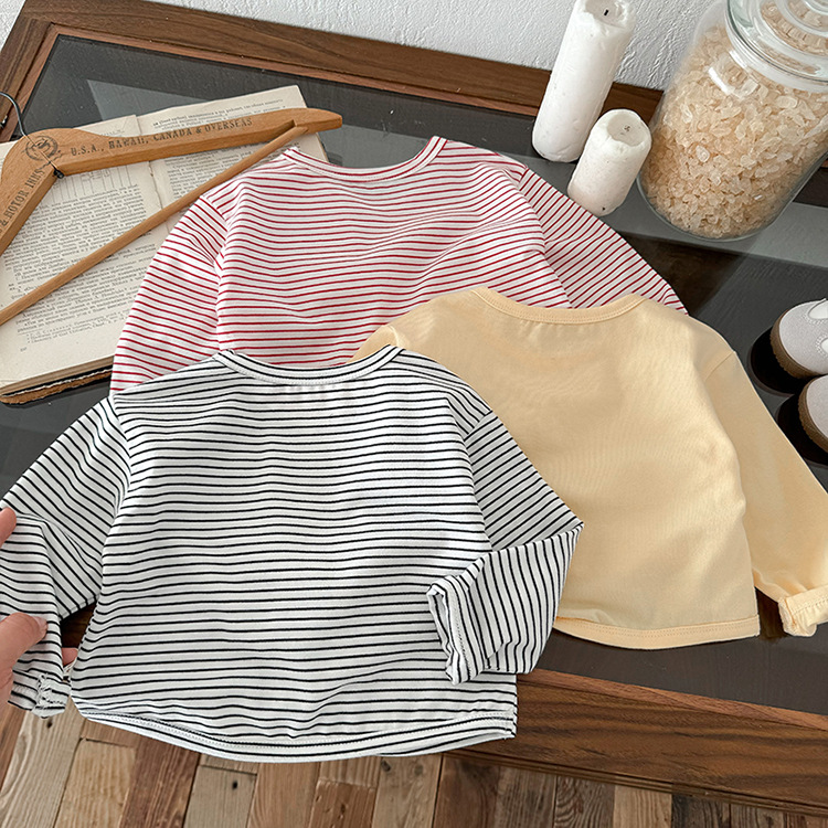 아동베이스 셔츠 봄과 가을 새 아기 긴 소매 최고 줄무늬 셔츠 남녀 아기 캐주얼 올 매치 티셔츠